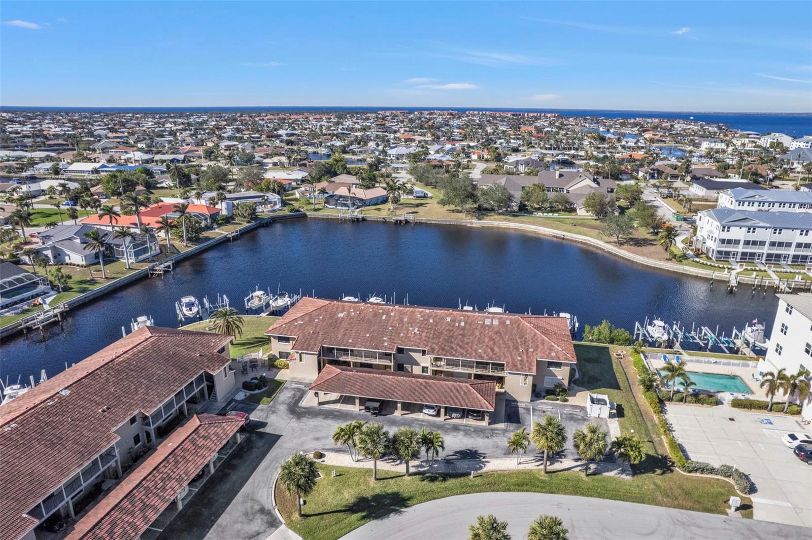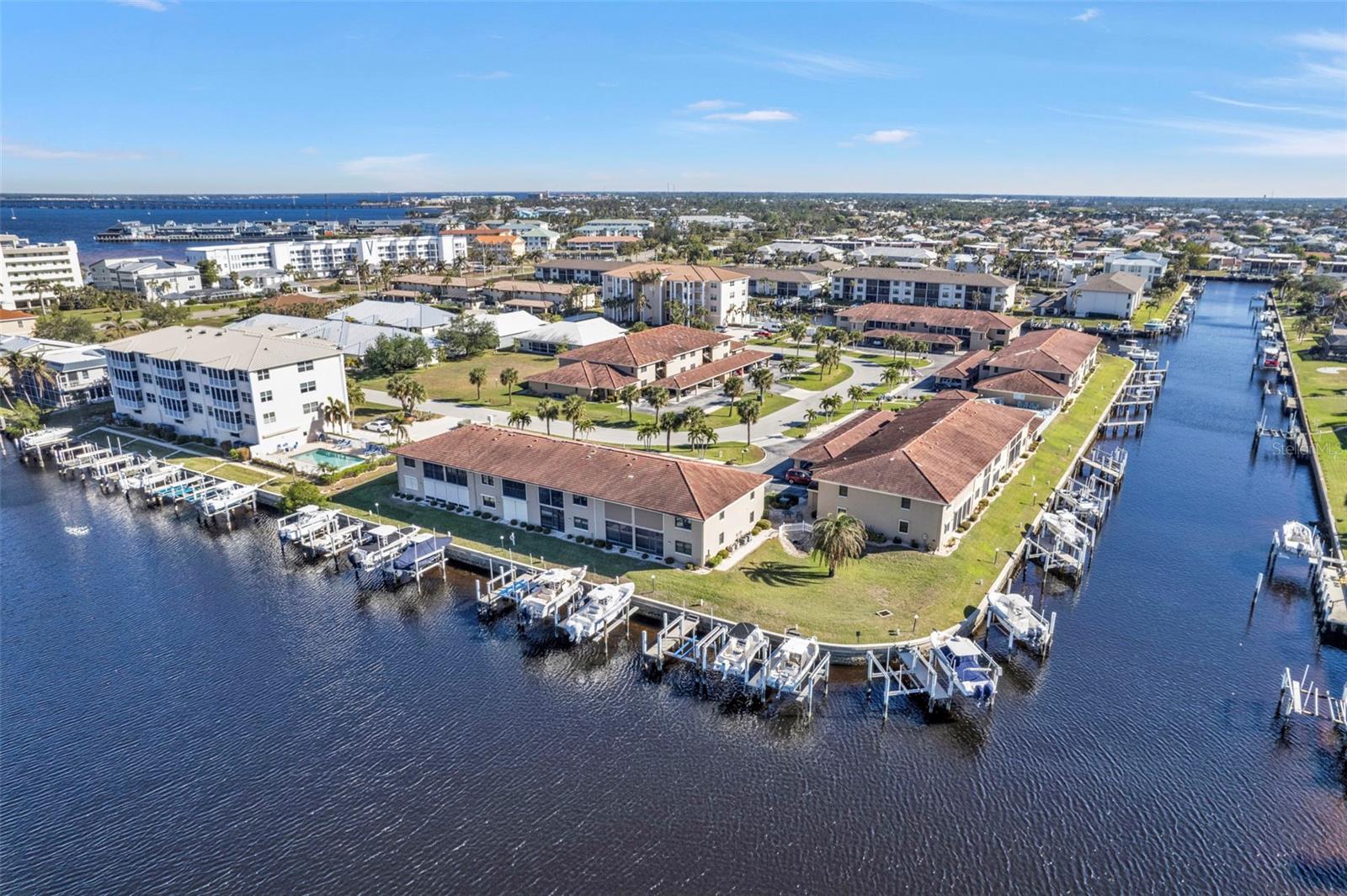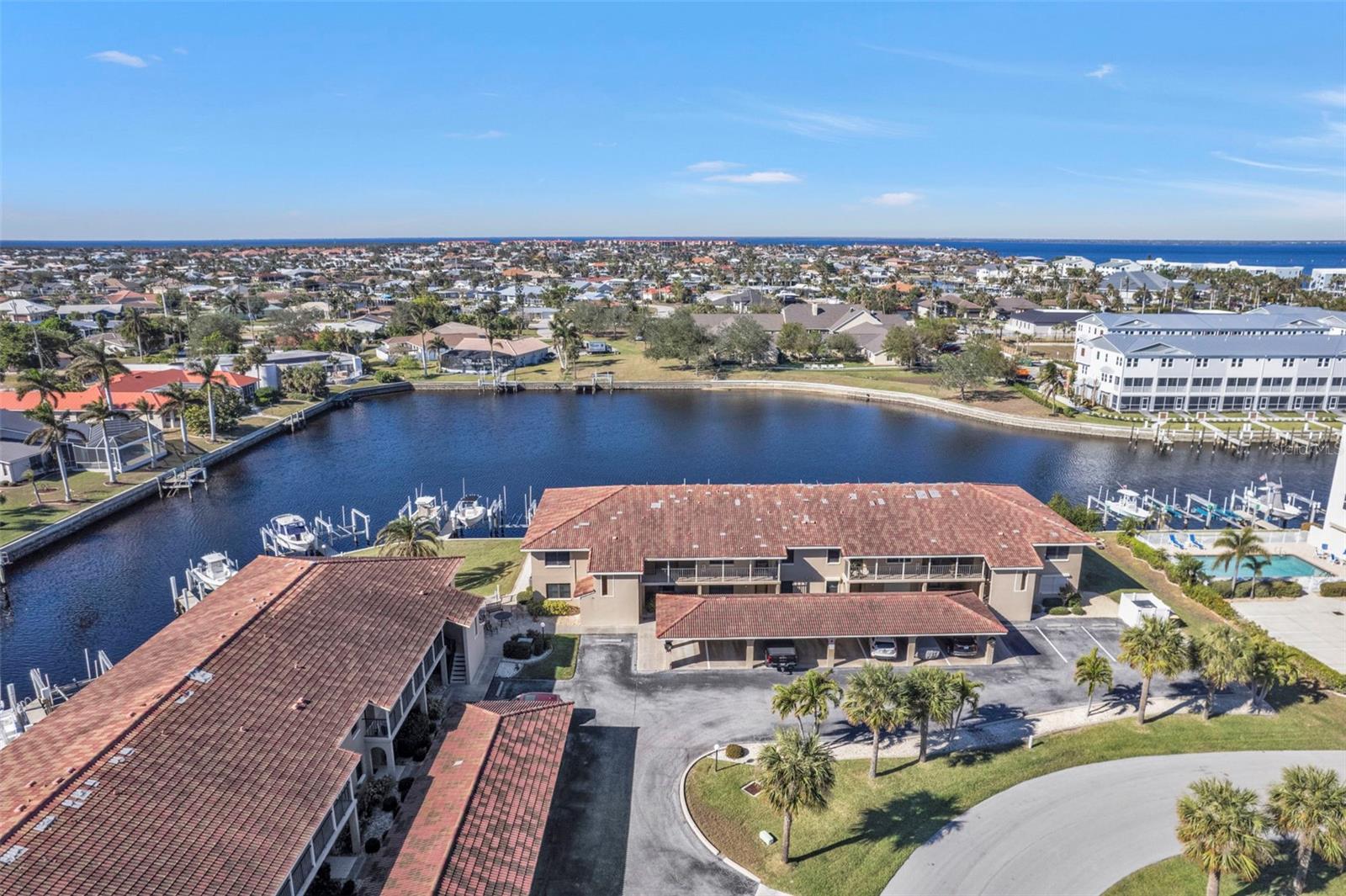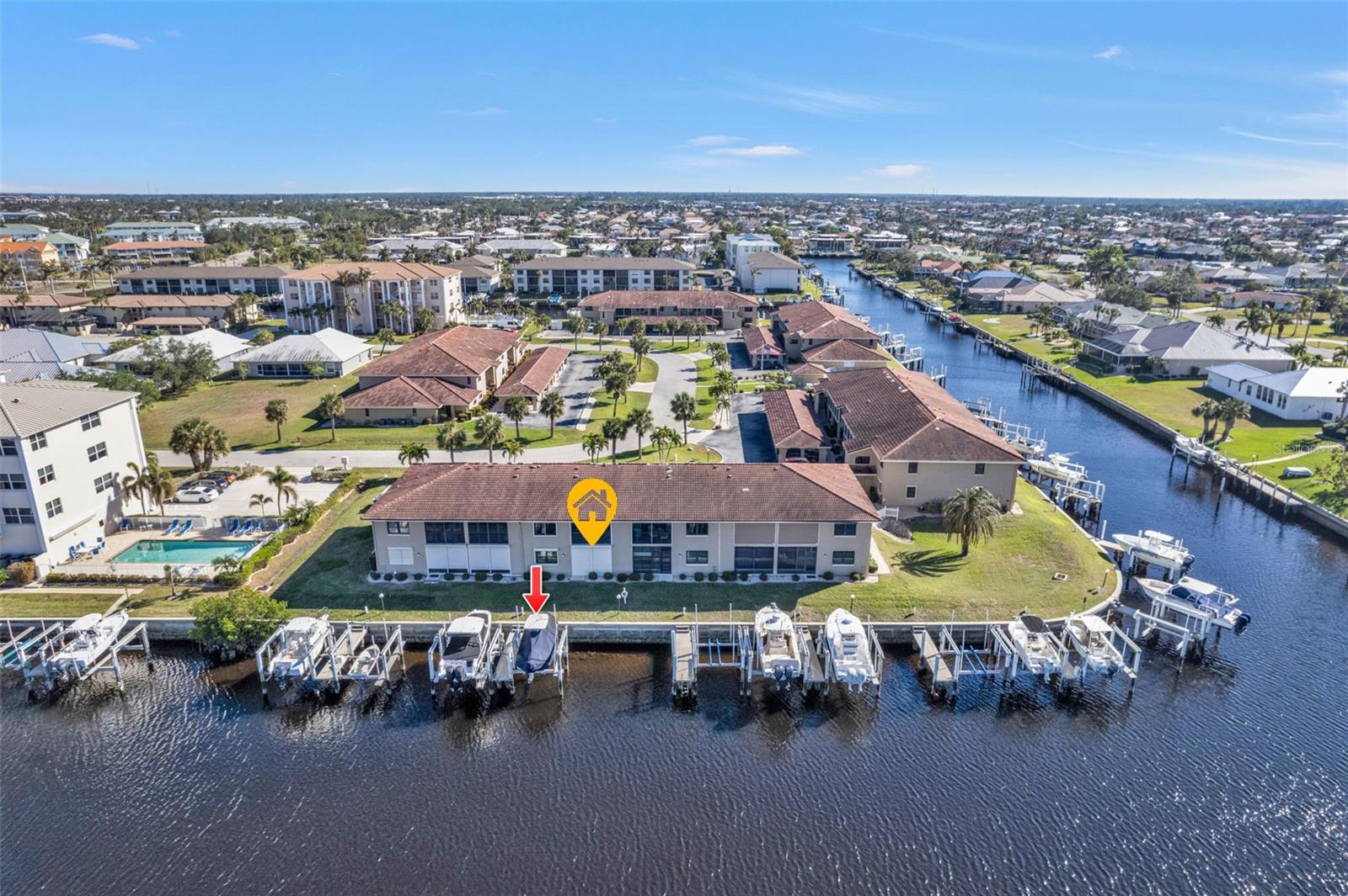 Ground level (NO STEPS), 2 bedroom, 2 bathroom split floor plan COMPLETELY UPDATED, with a DEEDED BOAT SLIP, concrete dock and 10,000 pound BOAT LIFT with remote outside your back lanai door. NO PET RESTRICTIONS FOR OWNERS. This home is setup as a SMART HOME to control your keyless front door lock and Nest thermostat remotely. All brand new LUXURY VINYL FLOORING, interior paint, cabinets, sinks, countertops, toilets, lighting, and ceiling fans. The great room is connected to the lanai that has two sliders (one from the great room and the other from the master bedroom) to access Florida lifestyle living. The master bathroom has a walk in shower. The lanai has an OVERSIZED DOUBLE DOOR FROM FLOOR TO CEILING STORAGE SPACE that is three feet deep for ample storage. The laundry room has plenty of storage and a full size washer and dryer. The condo has HURRICANE SHUTTERS for all windows and a motorized shutter for the lanai. There is a deeded CARPORT steps away from your front door for added convenience. The complex has a NEW METAL ROOF and NO ASSESSMENTS. WATER IS INCLUDED in your HOA monthly billing. There is a community area that has a sitting space with a grill to cook your favorite foods on. Sea Isles is situated in a prime location with a short walk to Fisherman's Village and downtown Punta Gorda. HOUNDS ON HENRY DOG PARK is less than a mile down the road. Plenty of walking and biking trails surrounding the area. Concrete sea walls are maintained by the City of Punta Gorda. The water out time by power boat is just a few minutes to Charlotte Harbor.