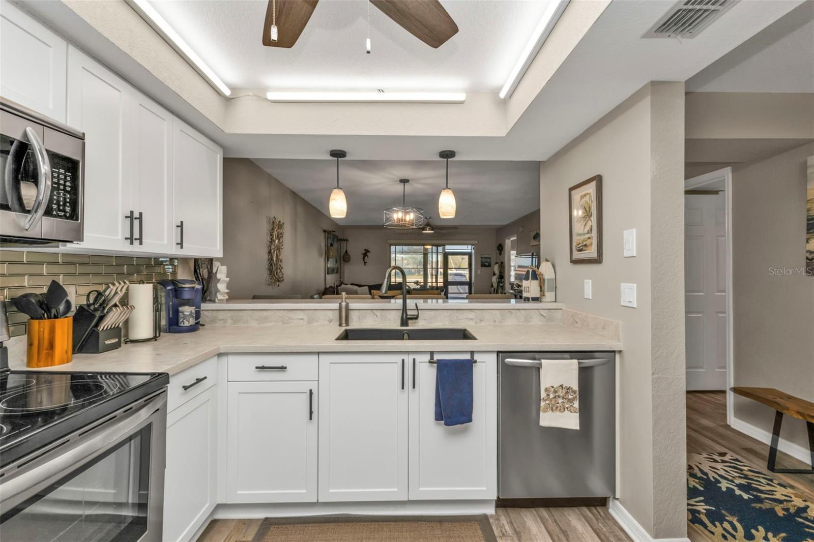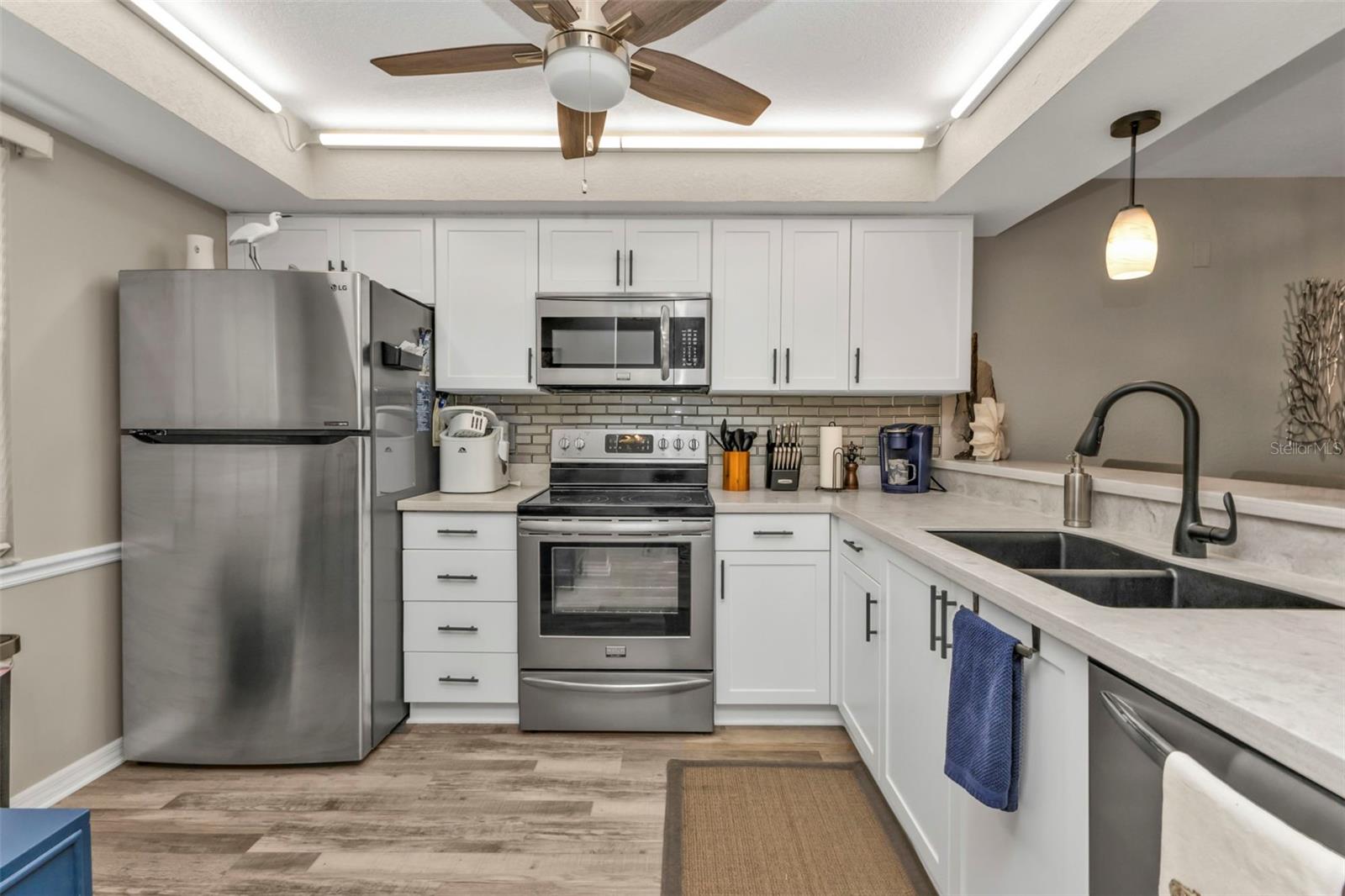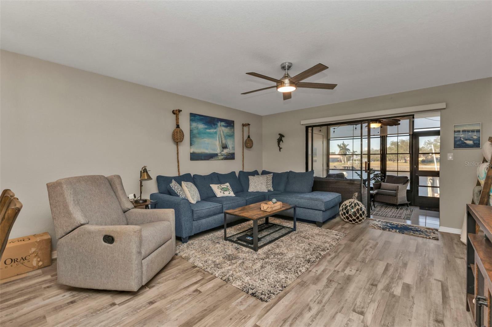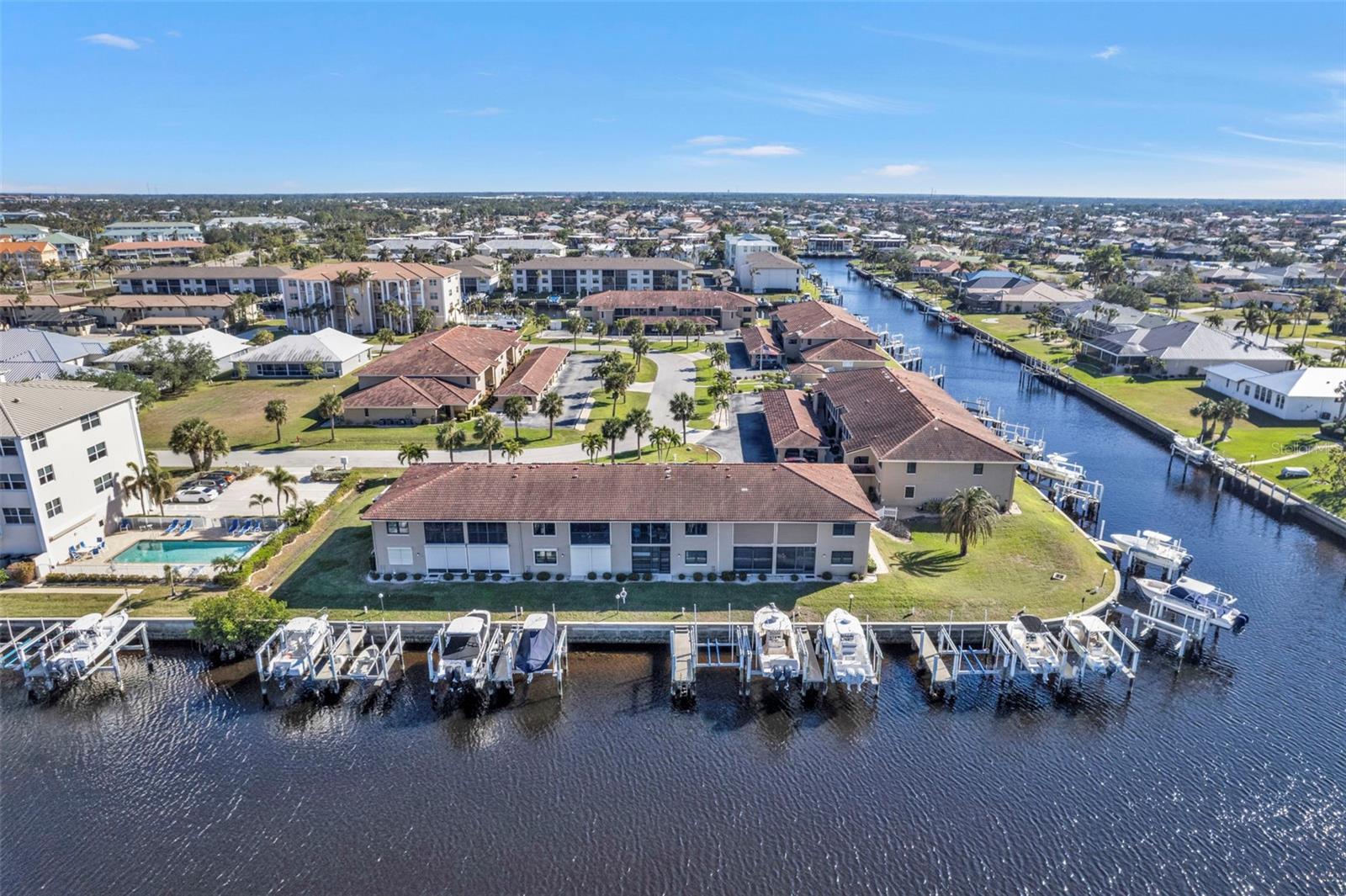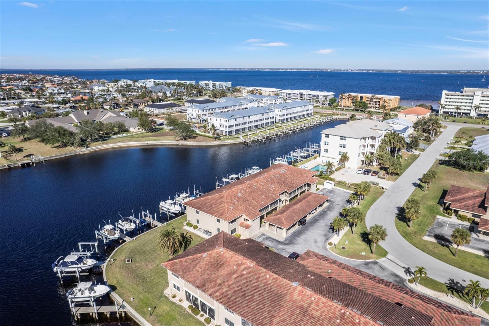 Ground level (NO STEPS), 2 bedroom, 2 bathroom split floor plan COMPLETELY UPDATED, with a DEEDED BOAT SLIP, concrete dock and 10,000 pound BOAT LIFT with remote outside your back lanai door. NO PET RESTRICTIONS FOR OWNERS. This home is setup as a SMART HOME to control your keyless front door lock and Nest thermostat remotely. All brand new LUXURY VINYL FLOORING, interior paint, cabinets, sinks, countertops, toilets, lighting, and ceiling fans. The great room is connected to the lanai that has two sliders (one from the great room and the other from the master bedroom) to access Florida lifestyle living. The master bathroom has a walk in shower. The lanai has an OVERSIZED DOUBLE DOOR FROM FLOOR TO CEILING STORAGE SPACE that is three feet deep for ample storage. The laundry room has plenty of storage and a full size washer and dryer. The condo has HURRICANE SHUTTERS for all windows and a motorized shutter for the lanai. There is a deeded CARPORT steps away from your front door for added convenience. The complex has a NEW METAL ROOF and NO ASSESSMENTS. WATER IS INCLUDED in your HOA monthly billing. There is a community area that has a sitting space with a grill to cook your favorite foods on. Sea Isles is situated in a prime location with a short walk to Fisherman's Village and downtown Punta Gorda. HOUNDS ON HENRY DOG PARK is less than a mile down the road. Plenty of walking and biking trails surrounding the area. Concrete sea walls are maintained by the City of Punta Gorda. The water out time by power boat is just a few minutes to Charlotte Harbor.
