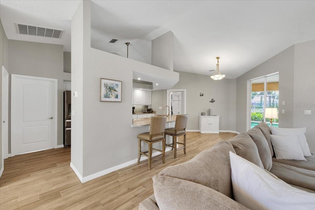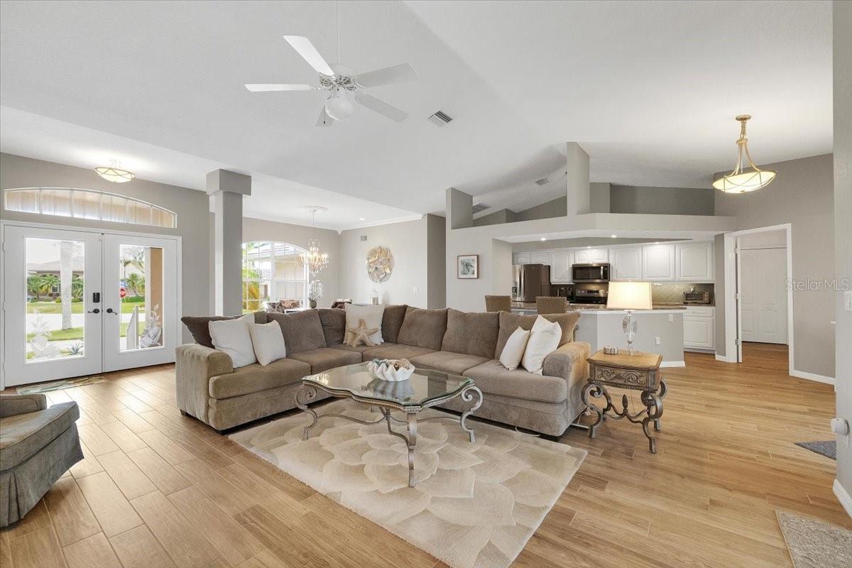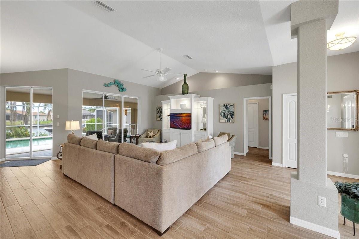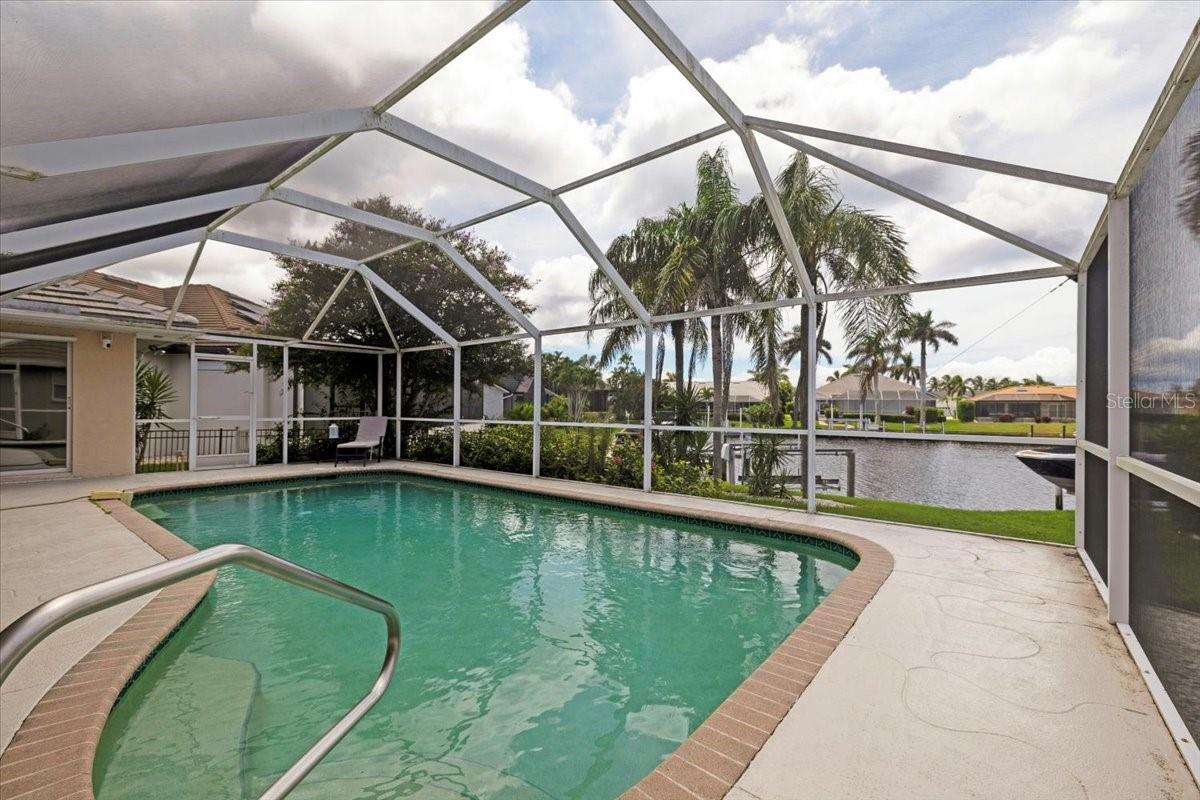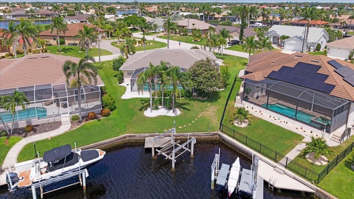 Welcome to this beautifully maintained 3-bedroom, 2-bathroom home located in the waterfront community of Burnt Store Isles. Perfectly designed for comfort, style, and Florida living, this residence comes fully furnished and truly turn-key. From the extended driveway to the oversized 2.5-car garage, there's plenty of room for vehicles, hobbies, or a workshop. Step through the French doors into a bright, open floor plan filled with natural light. The kitchen is a chef's delight with granite counters, stainless steel appliances, and a breakfast bar. A cozy breakfast nook overlooks the pool, screened lanai, and canal, while a more spacious dining area is ideal for entertaining. The primary suite is thoughtfully placed on its own side of the home for added privacy and includes direct access to the lanai and pool. It features a walk-in closet and en-suite bathroom with dual sinks, a garden tub, and a separate shower. On the opposite side of the home, two guest bedrooms share a full bathroom--the larger guest room also opens to the pool and lanai. The laundry room is well-equipped with built-in cabinets, ample counter space, and a sink for convenience. Outdoor living is at its finest here. The expansive screened lanai provides plenty of space for dining, barbecues, or simply lounging by the sparkling pool. Accordion shutters on the lanai and manual shutters on windows and doors offer extra hurricane protection. Beyond the pool lies a concrete seawall and city-maintained canal, complete with a private dock featuring water, electric, and a 4,000-pound boat lift. From here, enjoy direct boating access to Charlotte Harbor via Alligator Creek. Residents of Burnt Store Isles enjoy optional memberships to the Burnt Store Isles Association and the Burnt Store Isles Boat Club for enhanced social and boating activities. At the heart of the community, Twin Isles Country Club offers golf, tennis, and dining with membership options. The location is also ideal--close to highways, airports, and historic downtown Punta Gorda's dining, shopping, and entertainment. This home is the perfect blend of luxury, convenience, and waterfront lifestyle--ready for you to move in and start living your Florida dream.