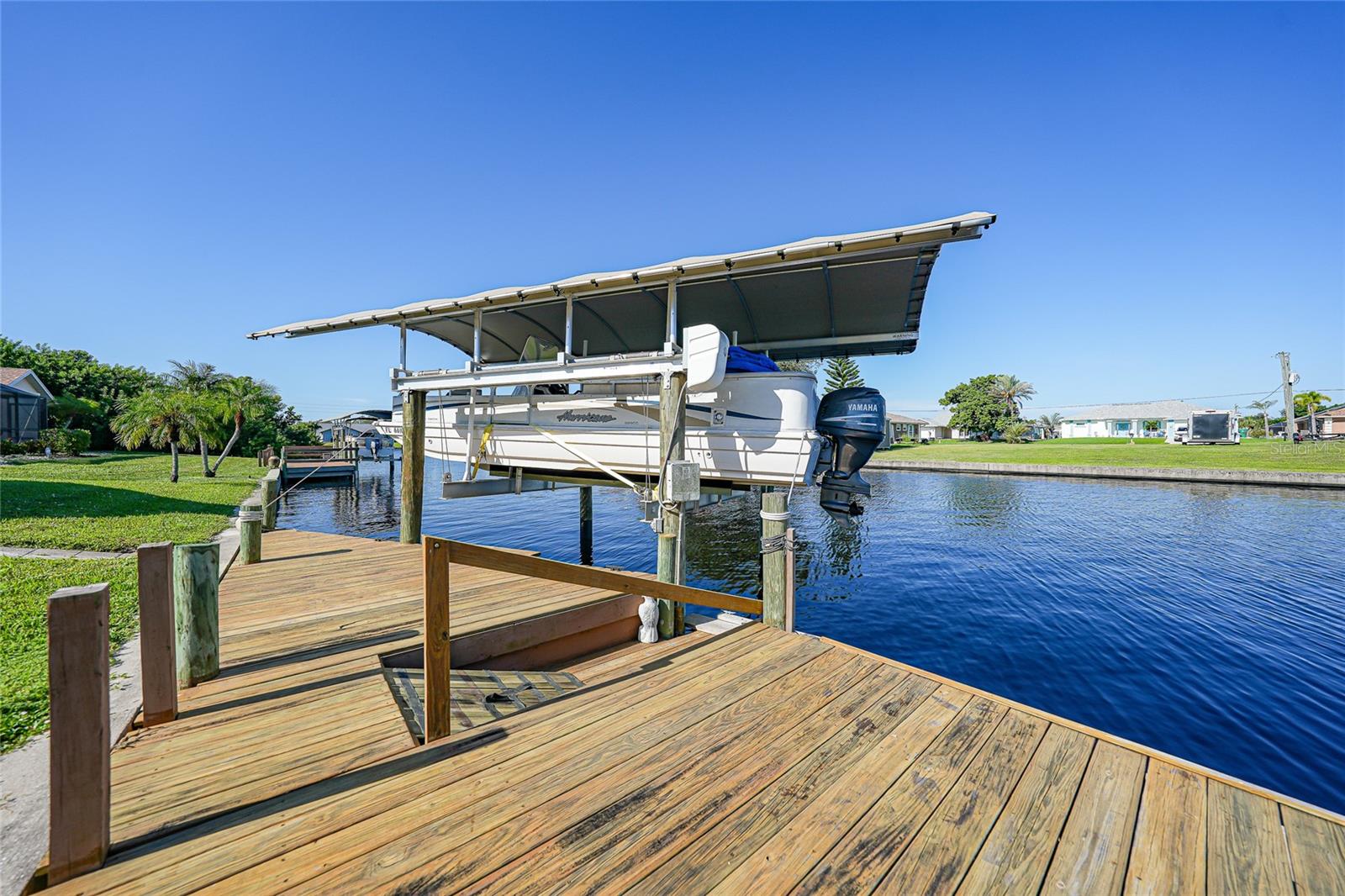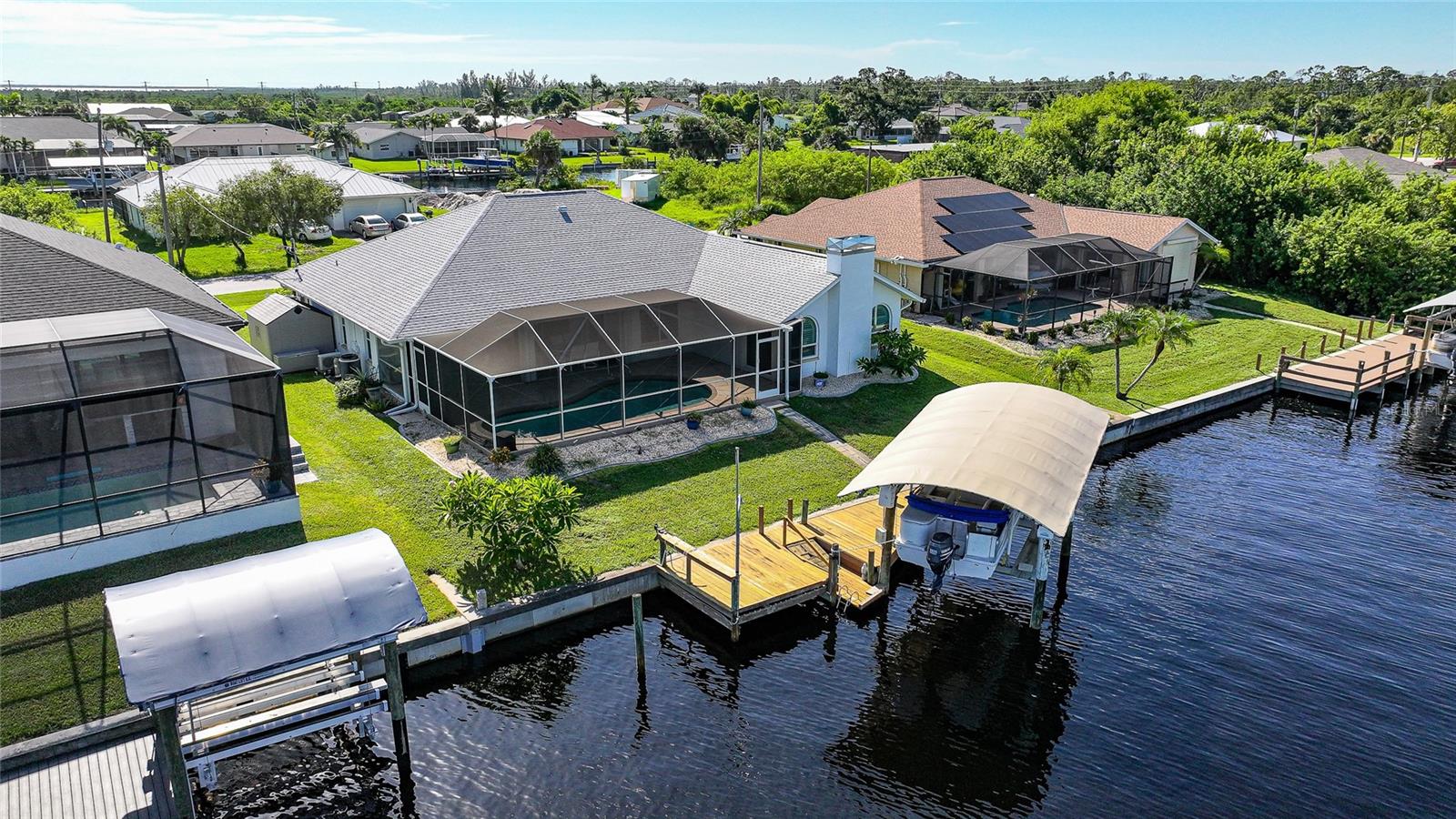 Welcome to 5265 Neville Terrace -- a waterfront haven designed for the ultimate Florida lifestyle. With direct, bridge-free access to the Myakka River, Charlotte Harbor, and the Gulf of Mexico, this home offers quick open-water adventures for boating, fishing, jet skiing, and kayaking, right from your own backyard.Every detail of this property has been crafted by the owners for pristine comfort and an enjoyable living experience. Inside, the split floor plan provides both privacy and functionality, with vaulted ceilings and pocket sliders that fill the home with natural light and frame breathtaking water views. The spacious master suite is a true retreat, featuring two walk-in closets, a spa-inspired bathroom with dual sinks, a garden soaking tub, and a walk-in shower. For added comfort, a mini-split system has been installed in the master bedroom, ensuring year-round relaxation.Step outside to enjoy the very best of waterfront living. The heated pool and screened lanai create the perfect spot to unwind while overlooking the water. A 12,000 lb boat lift, dock with water and electric, and quick access to open waters make this a boater's dream.Recent upgrades bring peace of mind and efficiency, including a new roof, gutters, and pool cage (2023), impact windows, and a solar electric system to keep energy costs low. The home also features a whole-house water filtration and reverse osmosis system, a 200-amp electric panel, and a storage shed.Located in an excellent area close to everything -- from shopping, dining, and entertainment to beaches and golf -- this property combines convenience with the beauty of waterfront living. Whether you're hosting guests, setting out for a day on the water, or simply soaking in the tranquil views, this home offers it all.Don't miss the chance to experience this exceptional waterfront lifestyle -- schedule your showing today!