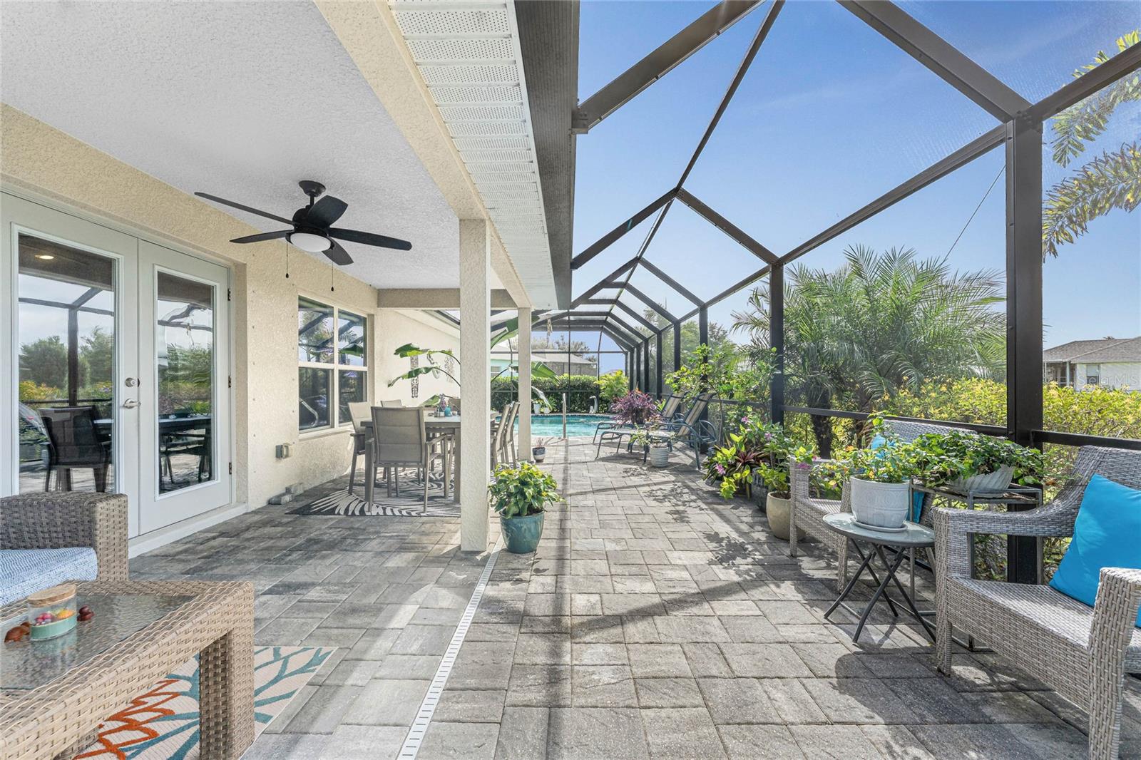 Stunning 3-Bedroom 2 bath + Den Pool Home. Welcome to your dream home in the highly sought-after Deep Creek community! This beautifully maintained residence features 3 spacious bedrooms, 2 modern bathrooms, and a versatile den, perfect for a home office or guest space. Enjoy Florida living at its finest Large lanai with pavers, saltwater heated pool, ideal for year-round relaxation and entertaining.Built just a few years ago, this home boasts plank tile flooring throughout, offering both style and durability. Hurricane protection, giving you peace of mind during storm season. Irrigation system, Pest control system, Nestled on a quiet cul-de-sac, the property provides privacy and minimal traffic--perfect for those seeking tranquility. Don't miss this opportunity to own a newer home with premium features in a prime location! Book your showing now!!