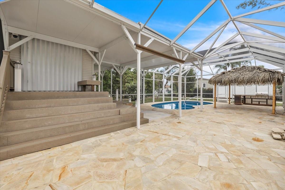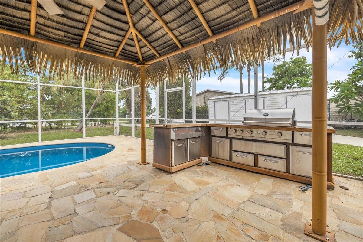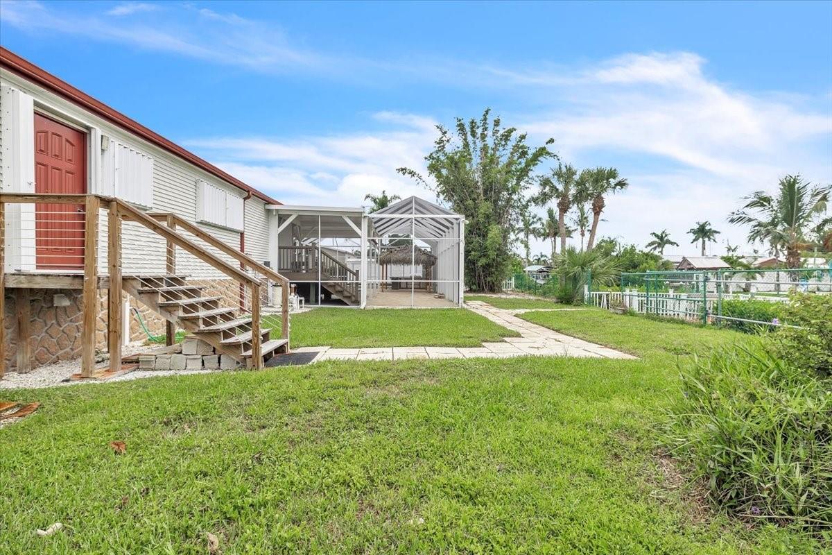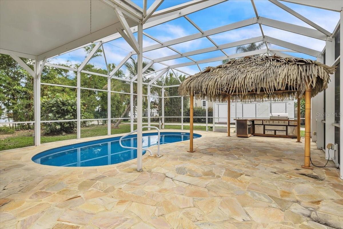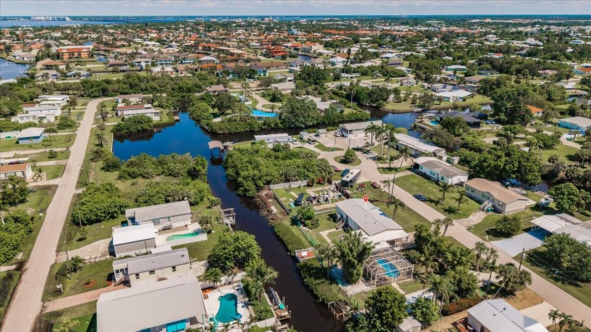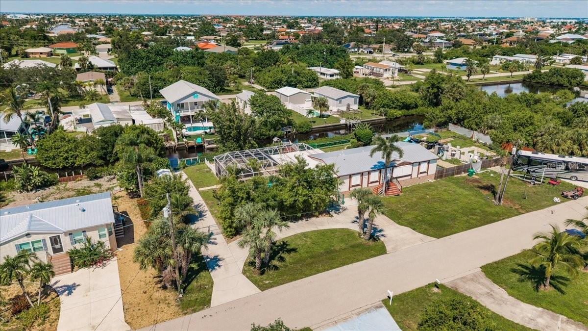 OWNER MOTIVATED - Beautiful 2005 Palm Harbor Pool Home on Saltwater Canal - 150 Ft. of Frontage! Welcome to this 3-bedroom, 2-bath, 1,800 sq. ft. pool home perfectly positioned on a wide saltwater canal with direct access to Charlotte Harbor and the Gulf of Mexico. Nestled off Aqui Esta among other beautiful homes, this property combines charm, function, and Florida lifestyle living. No flooding in the home from recent hurricanes! Built with quality in mind, the home features 3/4-inch plywood wrap on the roof, walls, and floor, a durable metal roof, and hurricane shutters for added strength, protection, and peace of mind. Set on two lots totaling 0.59 acres, this residence offers both space and versatility. Boating enthusiasts will appreciate the private wood dock and boat ramp, making this a true fisherman's dream. Additional exterior highlights include a circular driveway, covered carport and a large storage shed. Step inside to a warm and inviting open floor plan, enhanced by luxury vinyl plank flooring, neutral tones, and tasteful accents. The cozy electric fireplace with a custom mantle creates a welcoming focal point, while the ceiling fan and breakfast bar with seating add comfort and convenience. An adjacent dining area with pendant lighting provides the perfect setting for family gatherings or entertaining. The bright, functional kitchen is designed with wood cabinetry, ample counter space, a center island with seating, and a suite of stainless-steel appliances. A large window above the sink brings in natural light, while the open layout flows seamlessly to the living and dining areas. Just off the kitchen, the laundry room offers extra storage and everyday practicality. The spacious primary suite features a large walk-in closet and a well-appointed en-suite bath with dual vanities, soaking tub, and separate shower. Two additional guest bedrooms--one with sliding doors to the lanai--also feature walk-in closets and share a full bathroom. Outdoor living shines in this tropical retreat, complete with a sparkling pool with new pool pump, flagstone decking, screened lanai, and a sturdy Bamboo Tiki Hut with summer kitchen--ideal for entertaining or simply relaxing. Whether you're fishing from your dock, swimming in the pool, or enjoying the Florida sunshine, this home truly has it all. Close to I-75/US41 and nearby to Fishermen's Village, downtown Punta Gorda shops & restaurants, airports, great boating, fishing, sailing, and more. Home is completely spotless and waiting for you. Come enjoy the Florida lifestyle in this impressive home! **PLEASE ENJOY THE 3D INTERACTIVE VIRTUAL TOUR ASSOCIATED WITH THIS LISTING**