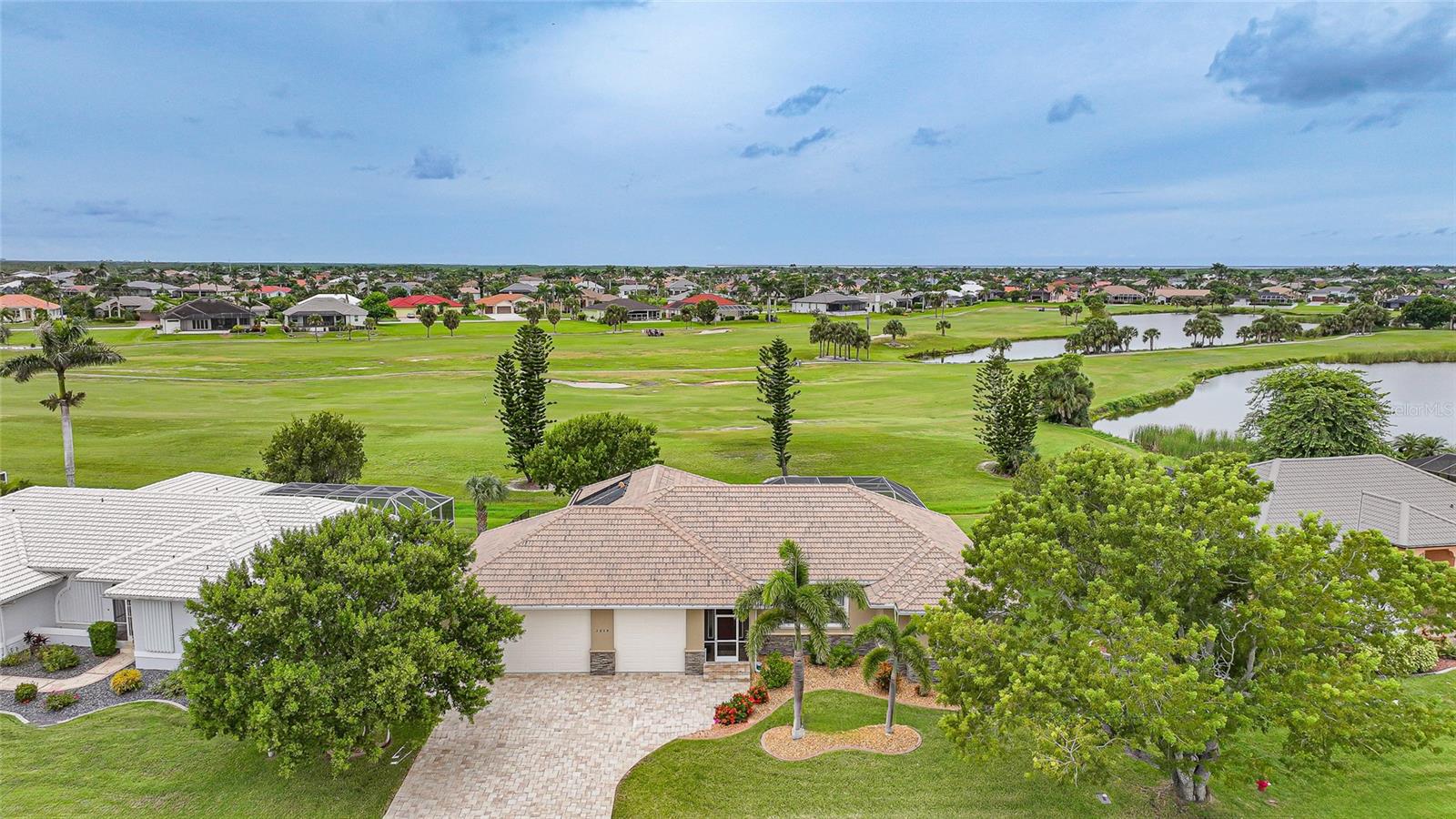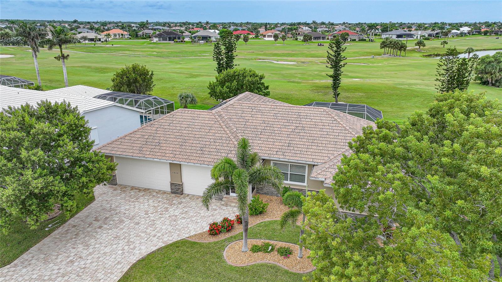 Welcome to 3829 Bordeaux Drive, perfectly situated on an oversized lot along the Twin Isles Golf Course in the sought-after community of Burnt Store Isles. Tucked away on a quiet street, this beautifully maintained home offers 3 bedrooms, 2 baths, and an oversized 3-car garage with 10 foot high doors and one of the bays is 30ft deep. It also features epoxy flooring and attic access.From the moment you step inside, the views will take your breath away. The expansive great room features backlit double tray ceilings with crown molding. The adjacent dining area as well as the great room boasts 8-foot hurricane-rated sliders that open fully to reveal the sparkling gas and/or solar-heated pool and spa overlooking the golf course and pond.The screened lanai is designed for relaxation and entertaining with paver flooring, wood ceilings, and a fully fenced backyard for added privacy.The chef's kitchen showcases rich wood cabinetry with pull-out drawers, a tiled backsplash, stainless steel appliances, granite countertops, a GAS cooktop and oven, and a large 8-foot center island with seating. Just off the kitchen, a spacious utility room provides additional cabinetry, washer/dryer, utility tub, broom closet, and an extended home office area.The luxurious primary suite also opens to the lanai and features backlit tray ceilings, dual walk-in closets, a spa-like bathroom with Jacuzzi tub, walk-in shower, dual sinks, two linen closets, and a private water closet.A split floor plan ensures privacy, with two generously sized guest bedrooms on the opposite side of the home. They share a beautifully appointed full bath with dual sinks, granite counters, a linen closet, walk-in shower, and convenient pool access.Additional highlights include: tile flooring throughout (no carpet), reverse osmosis system, gas water heater, new HVAC (2023), and fresh exterior paint (2025). New Sprinkler Control Box (2025). Full Hurricane Protection.Homeowners Association is voluntary, and membership to Twin Isles Golf and Country Club is optional.This home is also conveniently located within close proximity to famous Fishermen's Village, shopping, major highways and airports, and just a few minutes to downtown Punta Gorda, where you can enjoy its unique restaurants, pickle ball, biking, and waterfront activities.