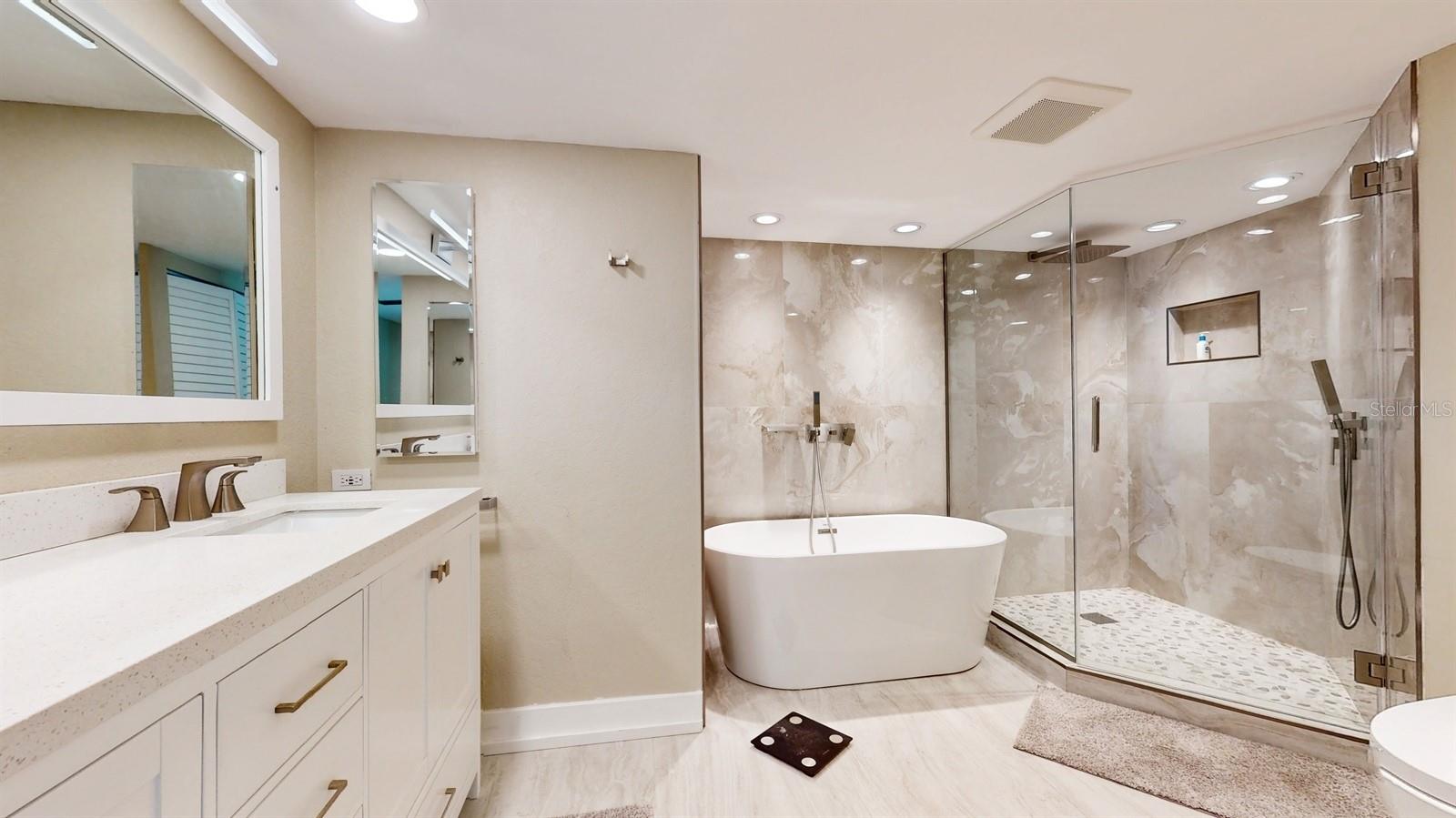 Discover this rarely available 3-bedroom, 2-bathroom condo, perfectly situated just minutes from Charlotte Harbor and the Gulf. Ideal for boating enthusiasts, the community offers dock assignments (and dry storage) right in your backyard, all INCLUDED in the HOA fees. This condo has been completely remodeled from top to bottom, with over $150,000 in renovations. It boasts an open floor plan, featuring raised ceilings, new flooring, and a stunning kitchen with quartz countertops and island. It has new appliances, induction cooktop and an under-counter microwave. The oversized primary bedroom has walk in closets, and slider access to the wraparound lanai. The primary bedroom is all new and includes dual sinks, a large walk in shower as well as a soaking tub. The guest bedroom is a wonderful space for guests and also has slider balcony access.. The third bedroom, equipped with pocket doors to the Great Room, offers flexible use as an office or additional living space (it is currently being used as an office and pocket doors can be easily re-added). Sliders from the main living area, master bedroom, and guest room open directly to the expansive wrap-around lanai. Emerald Pointe is a vibrant, active community featuring a Clubhouse, marina, seasonal restaurant, tennis courts, pickleball, fitness center, 3 pools, and a variety of specialty clubs to join. Emerald Pointe's prime location allows for walking or biking to downtown Punta Gorda, where you'll find a variety of dining, shopping, art walks, concerts, and farmers markets. Known for its charm, Punta Gorda offers numerous waterfront parks and trails, perfect for soaking in Florida's stunning sunsets. When not hosting friends and family gatherings in the oversized dining area, take the boat out to dine at one of the many dockside restaurants, including the famous Fisherman's Village. With direct flights available at the nearby airport via Allegiant Airlines, and the beautiful Sunseeker resort just across the bridge, this is an opportunity not to be missed. Make sure to click 3D walkthrough tour, visit YouTube drone video link, and ask for copies of Rules & Regs, and sample restaurant menu.