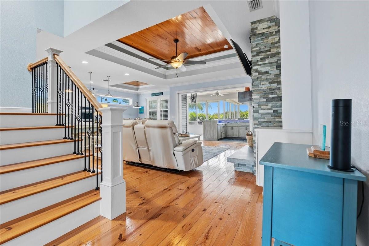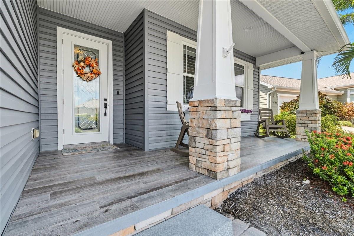 Welcome to Rio Villa Lakes - a sought-after gated 55+ community in beautiful Punta Gorda! This impeccably maintained custom built 3-bedroom, 3-bathroom home sits on an expansive oversized lot and offers over 2,700 sq ft of thoughtfully designed living space with high-end finishes and custom upgrades throughout. Enjoy a bright, open floor plan featuring pine hardwood flooring throughout the main living areas, bedrooms, and upstairs. The heart of the home is a chef's dream kitchen, complete with propane gas stove, wine cooler, Brand new refrigerator, plenty of cabinetry, and a large center island--all opening to the spacious living room with a cozy wood-burning fireplace and elegant plantation shutters throughout. Step outside to your own private retreat! The covered patio features a full bar and an in-ground spa. As well as an outdoor composite deck with built-in grill--perfect for entertaining or relaxing in comfort. This home is built for peace of mind and efficiency with Hurricane impact windows and sliding glass doors, Whole-house generator connected to propane tank, Pelican whole-house water filtration system & Brand new water heater. Additional highlights include a split-bedroom layout, indoor laundry room, attached 2-car garage, and ample storage space. Located in the maintenance-free Rio Villa Lakes community, residents enjoy access to a clubhouse, heated pool, fitness center, pickleball courts and social activities--all with low HOA fees and no CDD. Conveniently close to downtown Punta Gorda, Fishermen's Village, waterfront parks, boating, shopping, and dining --this home truly has it all!