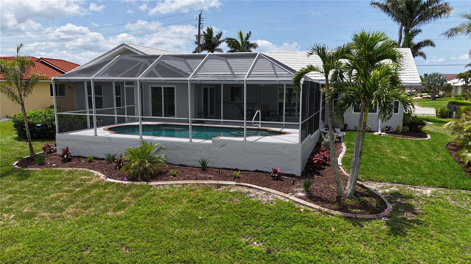 Welcome to this beautifully updated 3-bedroom, 2-bath pool home located in the highly sought-after Burnt Store Isles community, nestled along the golf course of Twin Isles Country Club. Boasting stunning curb appeal with fresh landscaping, new paint, and a brand-new irrigation system (2025), this home offers over 1,900 sq ft of light-filled living space with a split floor plan, ideal for privacy and comfort. Enjoy cooking in the upgraded kitchen featuring granite countertops and brand-new stainless steel appliances (2025), or relax in the spacious living and dining areas with multiple sliders opening to the screened lanai. Step outside to your private saltwater pool and take in breathtaking views of the golf course and surrounding ponds--perfect for morning coffee or evening entertaining. Recent upgrades include a new pool heater, interior/exterior paint, impact windows, and overhead plumbing. Located minutes from downtown Punta Gorda, shopping, dining, and Charlotte Harbor--this move-in ready home is Florida living at its finest!