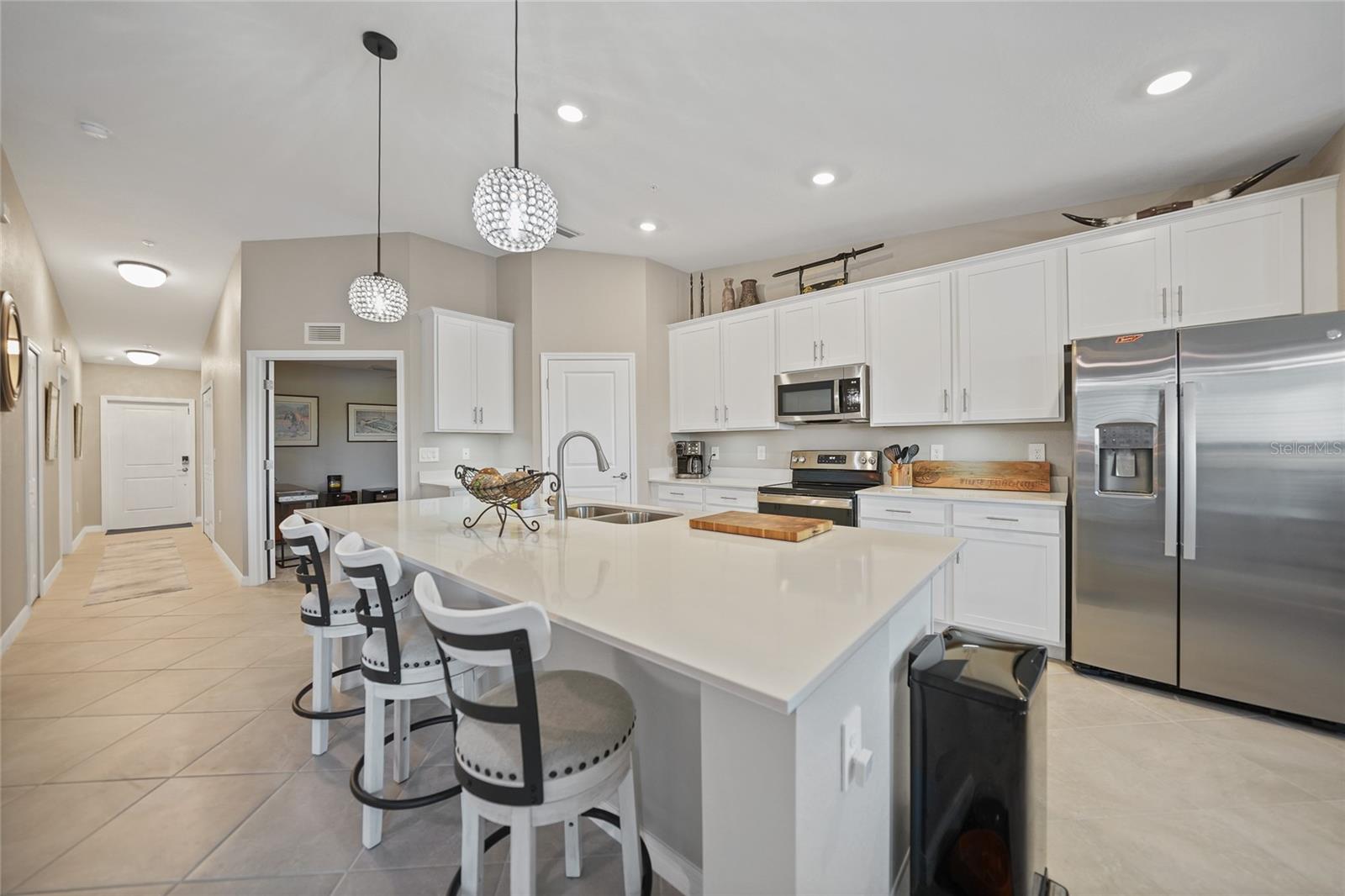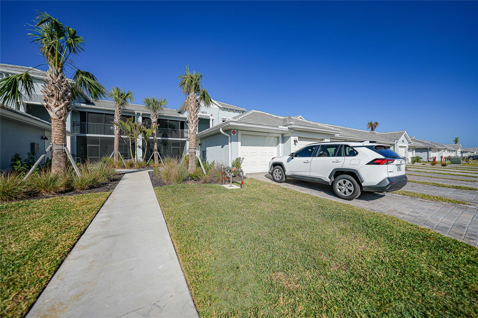 This LUXURIOUS- AMENITY-RICH- GATED COMMUNITY IS SOLD OUT. This BETTER THAN NEW-VILLA is available. BUILT IN 2024- VIEW SPECTACULAR SUNSETS over the WATER & PRESERVE -VIEWS WILL AMAZE NATURE ENTHUSIAST - A "MUST SEE"- DIANGELO II MODEL, in the highly desirable community of Heritage Landing Golf and Country Club. So many upgrades added post closing by owners! **CUSTOM CLOSETS IN PRIMARY Bedroom **CUSTOM SHELVING IN THE PANTRY **BEAUTIFUL LIGHTING AND CEILING FANS throughout **INTERIOR WALLS ALL PAINTED WITH SHERWIN WILLIAMS, Agreeable Gray **MOTORIZED BLIND ON THE LR SLIDERS MATCHING DRAPES THROUGHOUT. Social Membership DIANGELO unit. Enjoy the resort lifestyle you've been searching for! This home is gorgeous- 2 private screened porches, enter through the inviting front SCREENED lanai. This sought after DIANGELO II model offers an open floor plan that seamlessly connects the living, dining, and kitchen areas. The open floor plan offers an ideal setting for relaxation and entertaining. Safe and Secure, Impact resistant windows and sliding doors- Enjoy the well-appointed kitchen with crisp white shaker cabinets, quartz countertops, stainless appliances, and ample seating at the island - a flush-level breakfast bar is the perfect spot to grab a bite while enjoying a game! The flex room is just off the kitchen, with French doors. This is an ideal location for an office, media room, art or music studio, or add a sofa bed and have extra room for guests. The primary bedroom is very spacious and will accommodate a king-sized bedroom suite. The ensuite bathroom features dual sinks, tiled shower with glass doors. Dual walk-in closets. The views and location of this condominium are unique, VIEWS of the lake, the water grasses and natural flora and fauna are beyond compare! Grab your beverage of choice and sit on the back porch; EVERY NIGHT is a new magnificent sunset experience. A private garage provides space for your car and additional items. Heritage Landing Golf and Country Club has a "staffed" gate and offers RESORT- INSPIRED living, with a magnificent Gordon Lewis designed golf course, A "beach-entry" swimming pool w/ additional lap-pool section, poolside restaurant-tiki bar, clubhouse, tennis, pickleball, bocce and a state-of-the-art fitness center with sauna and locker rooms. Burnt Store Marina, the Peace River and Charlotte Harbor are convenient for FISHING and BOATING. Historic Punta Gorda is only a few miles away for shopping, tiki bars, music and unique restaurants. Airports in Ft Myers and Punta Gorda make trips to and from a breeze.