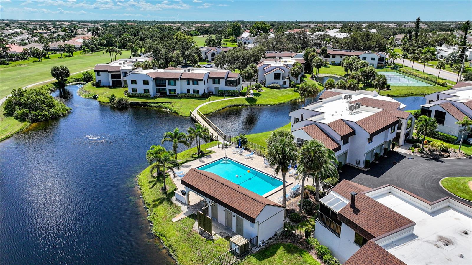 Welcome to this beautifully maintained, first-floor, turnkey two-bedroom, two-bath condo with a 12x24 one-car garage with storage, nestled in the highly desirable Summer Green community within the Capri Isles Golf Neighborhood in Venice, Florida. Ideal for year-round living or as a seasonal retreat, this home is offered fully furnished and move-in ready. Step inside and immediately notice the warm, inviting ambiance of the wood-look tile flooring that flows throughout the home. Neutral tones and an open layout create a welcoming atmosphere, with the living room seamlessly connecting to the dining area and kitchen. The updated kitchen is a true centerpiece, featuring sleek granite countertops, a stylish subway tile backsplash with mosaic inlay, and crisp white cabinetry with soft-close drawers. Stainless steel appliances, including a smooth-top range and built-in microwave, combine modern functionality with visual appeal. Recessed lighting brightens the space, while a convenient pass-through window to the dining and living areas enhances the open, airy flow--perfect for everyday living and entertaining. A full-size washer and dryer are conveniently located in the hall closet. The spacious primary bedroom is light and bright, complete with a large walk-in closet and an attached full bathroom. The guest bedroom offers easy access to its own bath, featuring a walk-in shower with pebble flooring. Sliding glass doors off the dining area bring in abundant natural light and open to the screened-in lanai and outdoor patio, where you can unwind while enjoying tranquil views of the surrounding golf course and pond, home to a variety of birds. Additional update of a new building roof in 2023. You'll be impressed with this meticulously cared-for condo in the distinctive Summer Green community, just 2.5 miles from downtown Venice Island and 3.5 miles to Venice Beach. Each building features only five individual units--two on the first floor and three on the second--nestled throughout scenic grounds framed by the Capri Isles Golf Club. The community is highlighted by serene ponds, majestic oak and palm trees, charming wooden bridges, two inviting pools, tennis/pickle board court, club areas with work out areas for owners and their guests and sweeping golf course views across much of the property. Close to beautiful Gulf beaches, Legacy bike trails, entertainment, great restaurants, I75, hospitals, shopping and so much more.**PLEASE ENJOY THE 3D INTERACTIVE VIRTUAL TOUR ASSOCIATED WITH THIS LISTING**