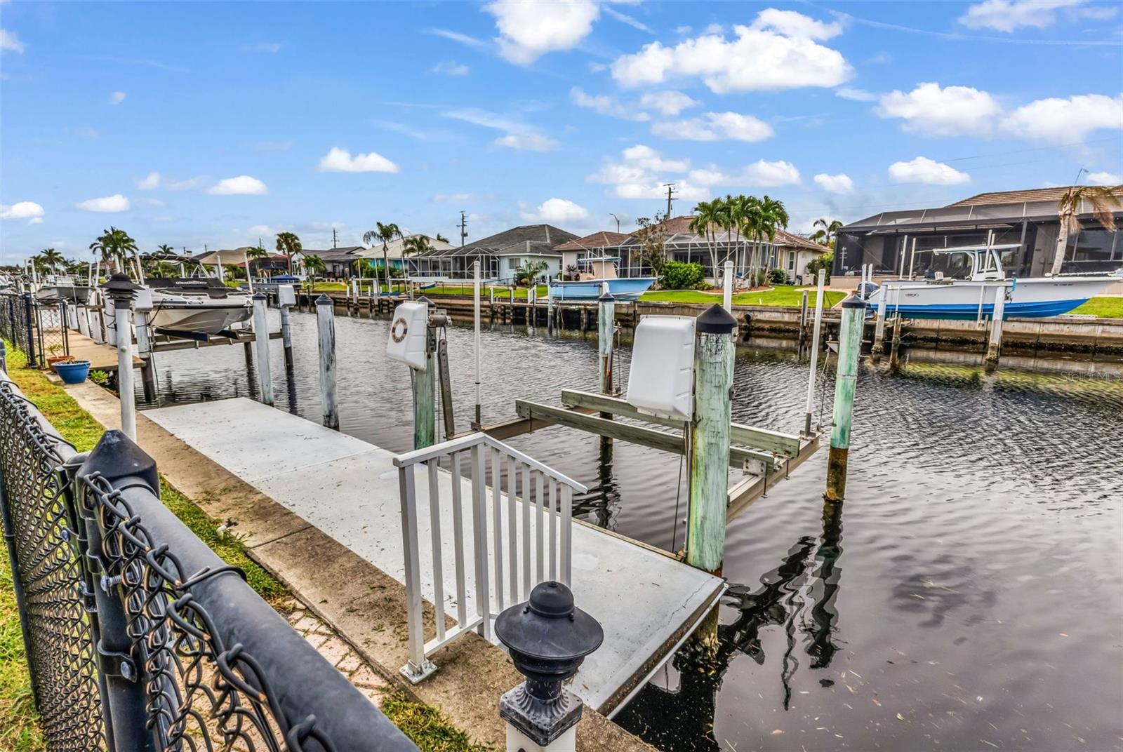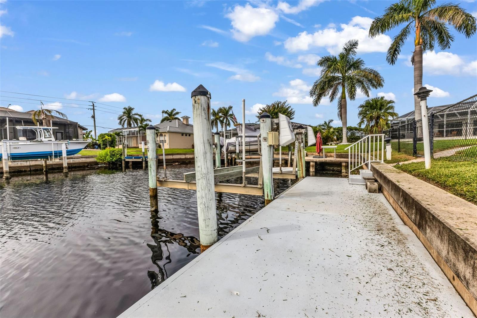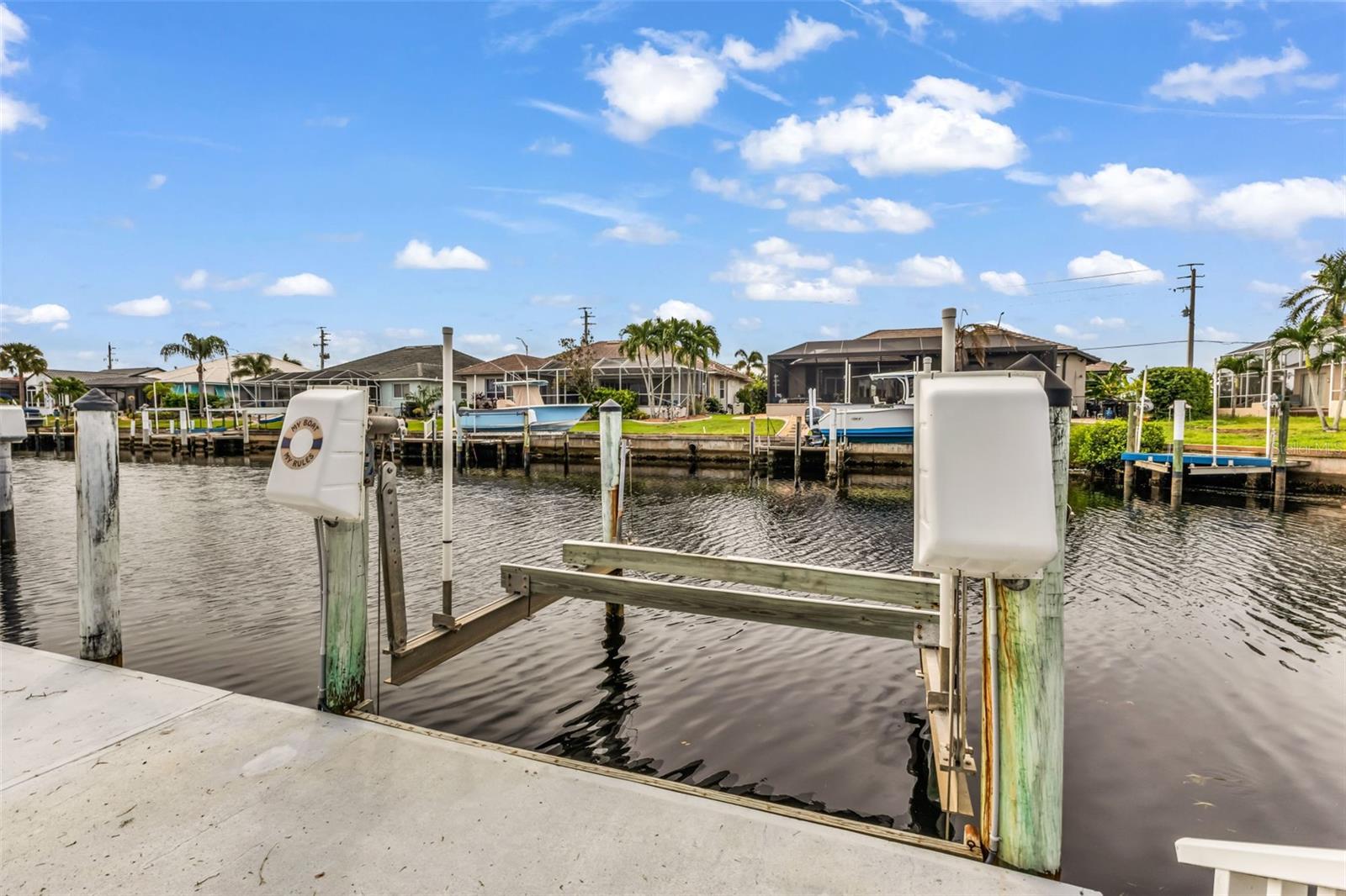 Welcome to Punta Gorda Isles--this meticulously maintained 3-bedroom, 2-bath, 2-car garage WATERFRONT POOL home offers direct powerboat access to Charlotte Harbor and on to the Gulf of Mexico. Situated on 60 feet of deep-water canal frontage, the property includes a 30' concrete dock with water, electric, and a 10,000 lb. boat lift with REMOTE--perfect for your boating needs! Step inside to an open floor plan filled with natural light. The main living areas feature crown molding, tile flooring, and a neutral palette that compliments any style. The dining area opens directly to the lanai, enhancing the home's seamless indoor-outdoor living. The kitchen is designed for both function and style, offering Silestone quartz countertops, tile backsplash, stainless steel appliances, a breakfast bar, and a convenient pass-through window to the lanai. The split-bedroom layout ensures privacy, with all bedrooms showcasing rich hardwood floors. The primary suite is a spacious, peaceful retreat with lanai access, water views, a walk-in closet which leads to your inside laundry room and a private bathroom featuring a solid glass block tile shower offering a unique combination of privacy, natural light transmission, and a modern aesthetic compared to traditional shower doors or curtains. Outdoors, relax under the covered lanai or take a dip in the screened, heated pool and spa. With southern exposure, you'll enjoy sun all day long overlooking the spacious FENCED BACKYARD and long canal views.Additional highlights:New roof & exterior paint (2023)Screened front porch with etched-glass entry doorOversized Paver driveway & tiled garageIrrigation system & water softenerMature tropical landscaping for added curb appealLocated in a quiet, welcoming neighborhood within a sought-after golf and boating community, this home is just minutes from the Yacht Club, Fishermen's Village, and historic downtown Punta Gorda. Enjoy world-class fishing, boating, dining, shopping, arts, and nearby Gulf beaches. Don't miss your chance to own this exceptional Florida retreat--schedule your private showing today!