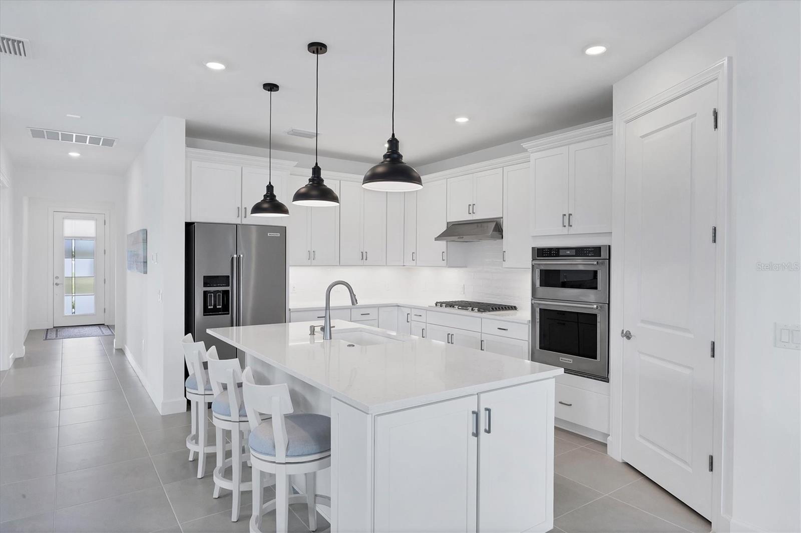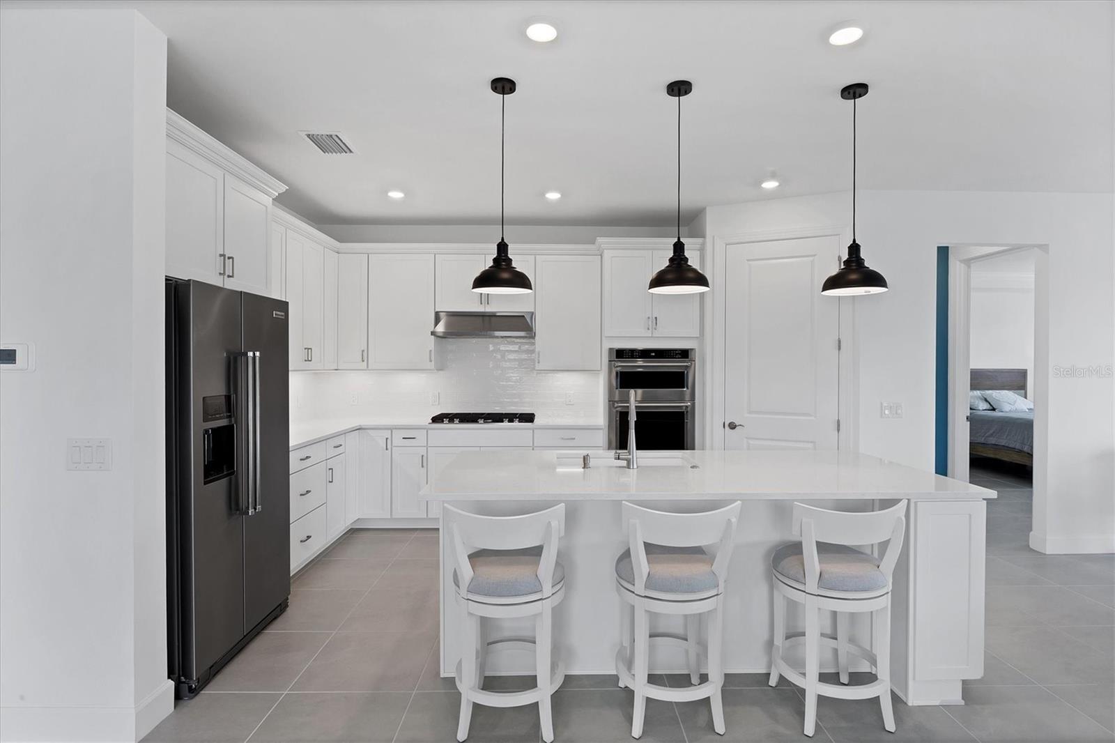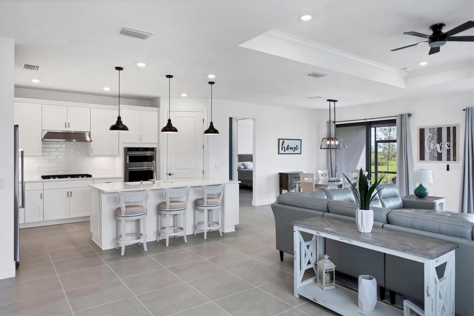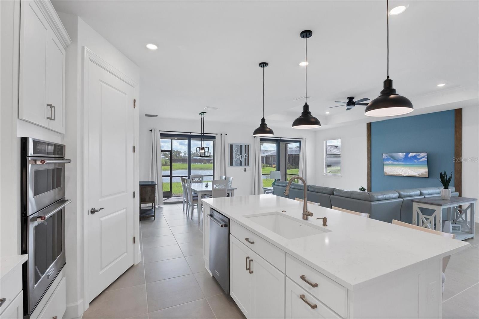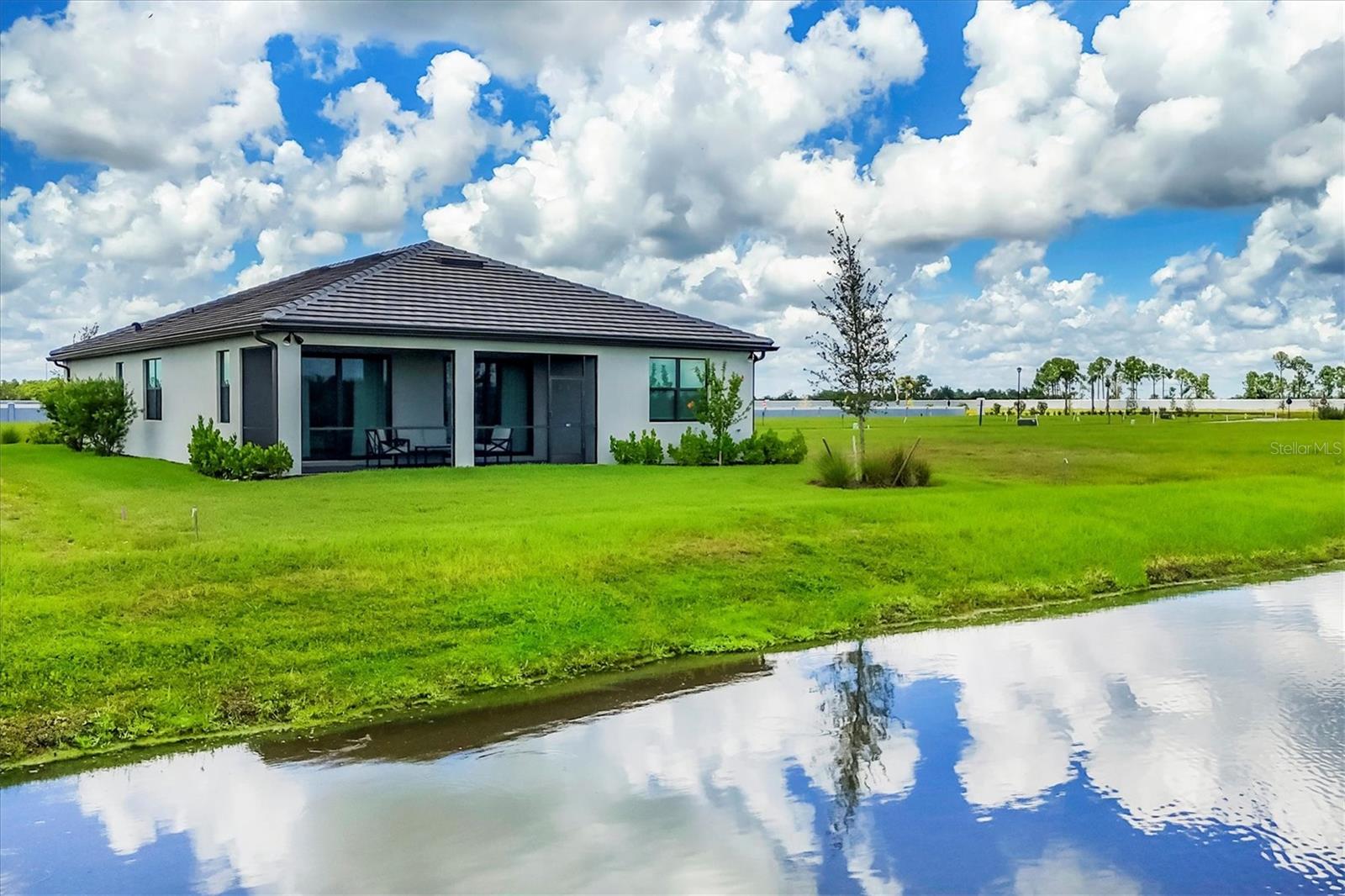 THE SELLER IS WILLING TO CONTRIBUTE UP TO $10,000 TOWARDS BUYER'S CLOSING COSTS. Why wait to build? This nearly new, lakefront Pulte Homes residence (Distinctive Series--Mystique floor plan) delivers the finishes and upgrades you want--already in place. Lived in for less than three months and just about one year old, it showcases beautiful stone-accented curb appeal and an extended gathering room that adds rare everyday living space. The premium waterfront lot offers peaceful views and room for a future pool. Inside, a smart great-room layout with a split-bedroom plan provides 3 bedrooms, 3 full baths, and a flex room with French doors, ideal for an office, den, or hobby space. Approximately 2,251 sq. ft. under air keeps everything spacious yet easy to maintain. The kitchen is both stylish and functional with shaker, soft-close cabinetry, a large walk-in pantry, quartz countertops, subway-tile backsplash, and a counter-height breakfast bar, perfect for prep and casual dining. Enjoy natural gas cooking with a cooktop plus in-wall oven and microwave. The private primary suite features a bath with dual sinks and a walk-in shower. Guests will appreciate the en-suite guest bedroom (Bedroom 3) for comfort and privacy. Flooring is tile throughout the main living areas (Bedroom 2 is carpeted). Thoughtful extras include a coat closet and a large laundry room with cabinetry, utility sink and a folding surface. The 2-car garage comes finished with an epoxy floor and an electric-vehicle charging station. Additional peace of mind: Hurricane rated IMPACT WINDOWS AND DOORS THROUGHOUT, transferrable BUILDER WARRANTY plus this home is NOT located in a flood zone. Located within Arbor Oaks at the Woodlands, a gated community, residents enjoy a resort-style amenity lineup: stunning clubhouse, heated pool and hot tub, pickleball, tennis, fitness center, poolside Barefoot Bar, BBQ grills, fire-pit lounge, bocce, dog park, and an activities director. HOA dues are $934/quarter and include lawn care and irrigation maintenance/repair. CDD fee is included in the property tax bill. You'll be less than 30 miles from award-winning Gulf beaches and just a few miles from I-75, local shopping, golf courses, and entertainment. Downtown Wellen Park and the new Atlanta Braves Stadium are only 20 minutes away. Immaculate, move-in ready, and upgraded beyond builder basics--this lakefront home delivers the lifestyle you're seeking without the wait. Schedule your tour today.
