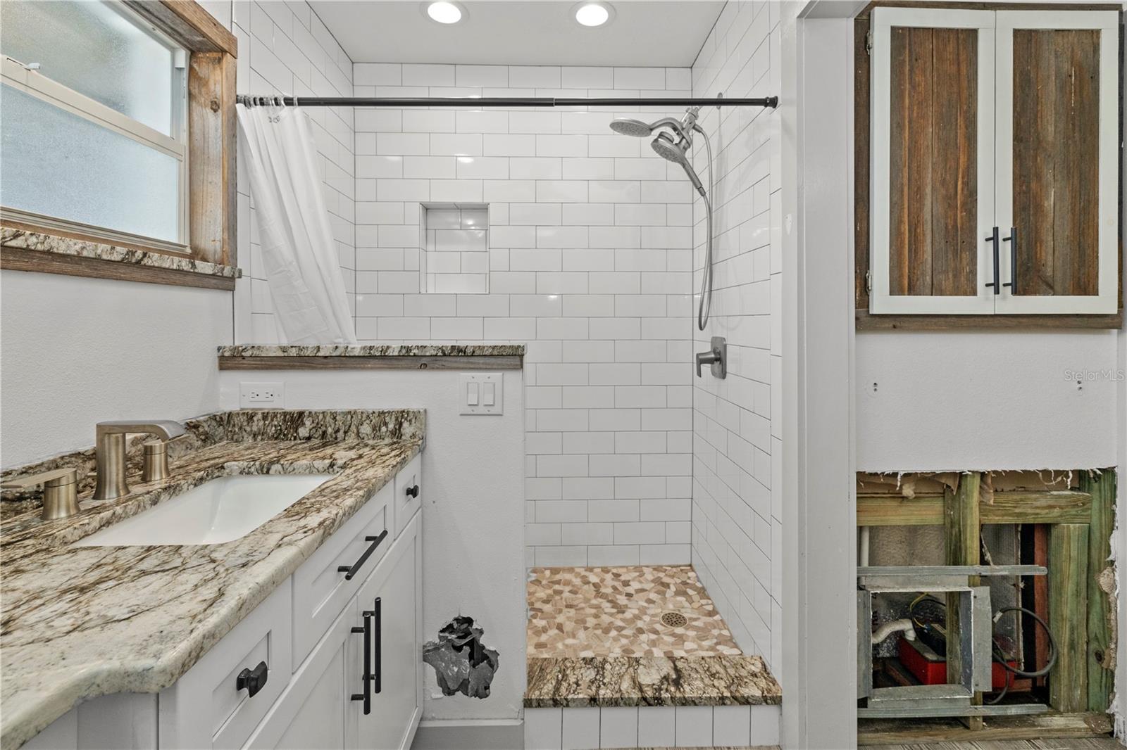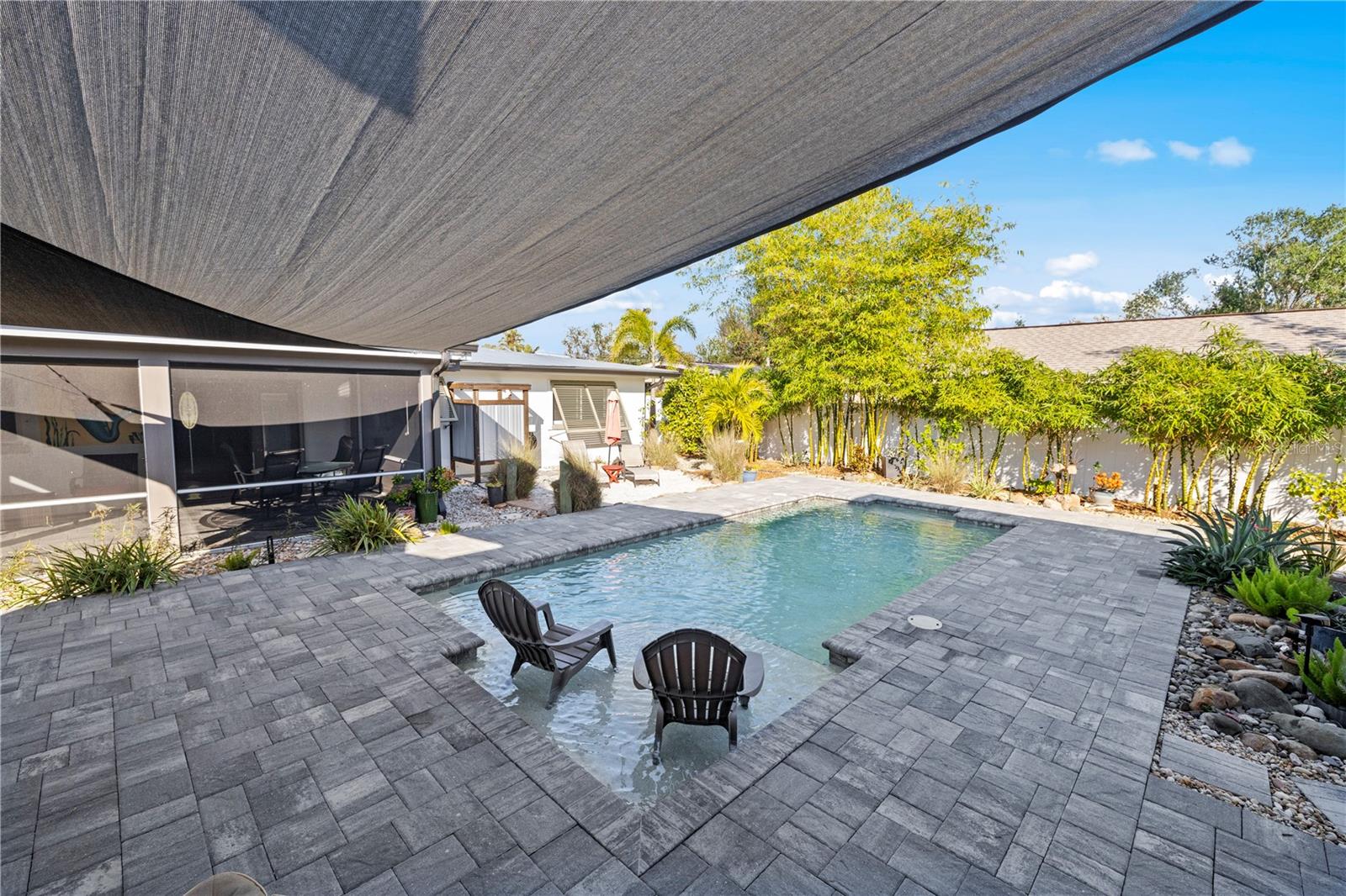 BACK ON THE MARKET! INVESTORS WELCOME! Charming historic district gem in Punta Gorda, where modern comfort meets timeless appeal. This delightful property features a main house with three bedrooms and one and a half bathrooms, spanning 1,768 square feet of thoughtfully designed living space. Recent upgrades showcase the owners' attention to detail, including a 2020 renovation that brought a new metal roof, fresh eaves, and gutters. The elegant terrazzo floors, which have weathered storms with grace, add a touch of vintage sophistication throughout. A beautiful paver driveway leads to a practical carport equipped with roll-down shutters for added protection. The heart of the home received a stunning makeover in 2020, featuring new cabinets mounted on treated lumber and sleek granite countertops. The front room exudes coastal charm with stylish shiplap walls and crisp new trim. Modern conveniences include a new HVAC system, updated electric panel, underground electric service, and contemporary ceiling fans throughout. The primary home sustained water damage during Hurricane Milton however many improvements can be repurposed. Step outside to discover your own private oasis. The crown jewel is a 24x12 saltwater pool, completed in 2021, featuring a sun deck and playful waterspouts. The screened lanai, adorned with new pavers, creates a seamless transition to outdoor living. A thoughtfully designed guest house adds extra living space with a generous kitchenette, full bathroom with shower and tub, and a cozy wood-burning fireplace - perfect for entertaining or housing visitors. A half bath compliments the Guest house, pool and sheds were not damaged during Helene or Milton. The outdoor space continues to impress with two versatile sheds, one with electrical access, connected by extensive paver pathways that create a cohesive outdoor living area. Privacy is assured with a 6-foot fence enclosing the property, while a 12-foot double gate provides convenient alley access. This location truly shines with its proximity to local attractions. Take a leisurely bike ride to Fishermen's Village or downtown's restaurants and Laishley Marina. Nature enthusiasts will appreciate being just steps away from Gilchrist Park's scenic trails and waterfront views. Whether you're seeking a permanent residence or considering its rental potential, this property offers the perfect blend of comfort and coastal living. The home's resilient construction has proven its worth through recent hurricanes, while modern updates ensure worry-free living for years to come. Here's your chance to own a piece of Florida paradise where every day feels like a vacation. With its perfect mix of indoor comfort and outdoor entertainment spaces, this home awaits your personal touch to transform it into your dream retreat.
