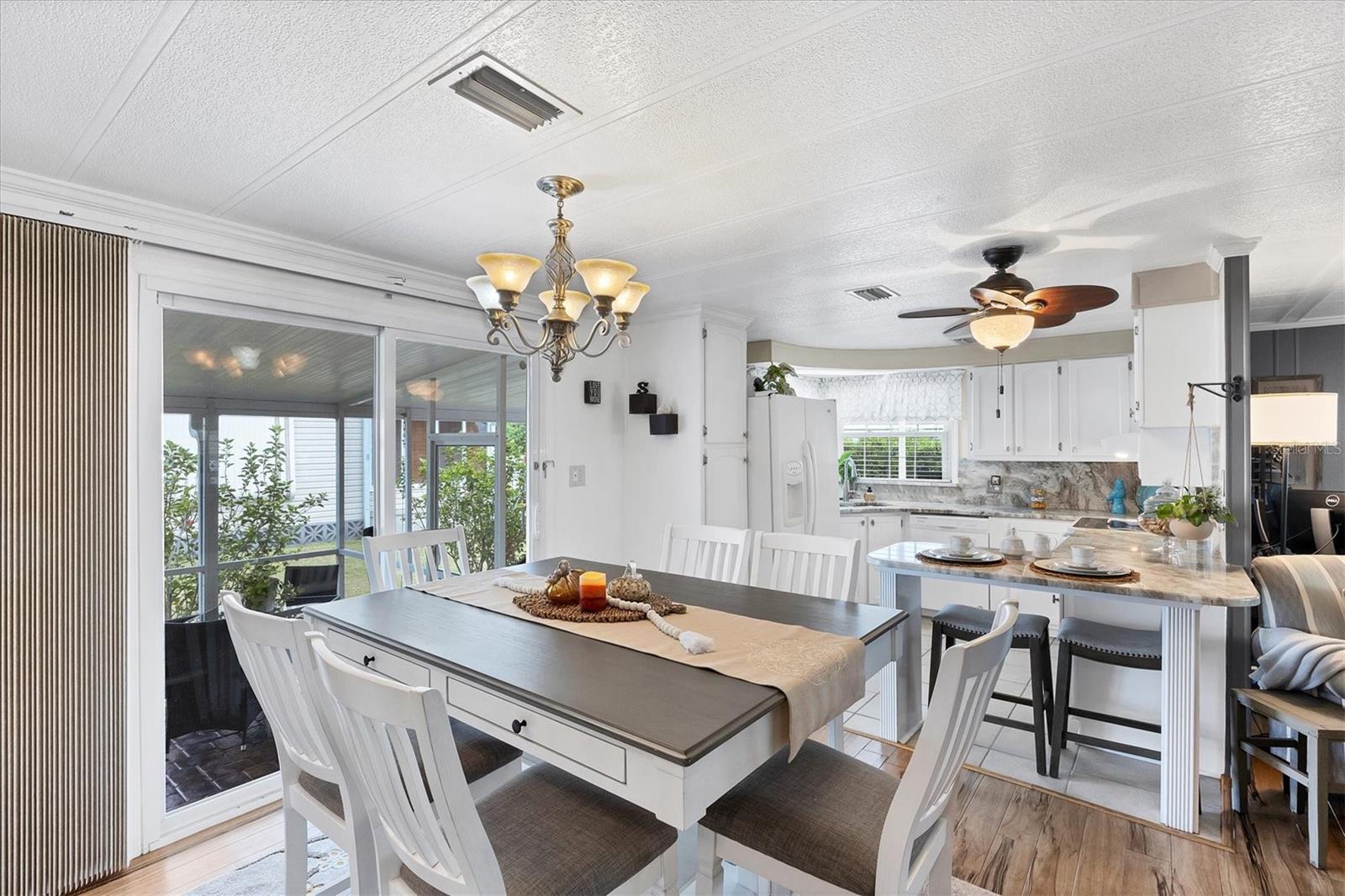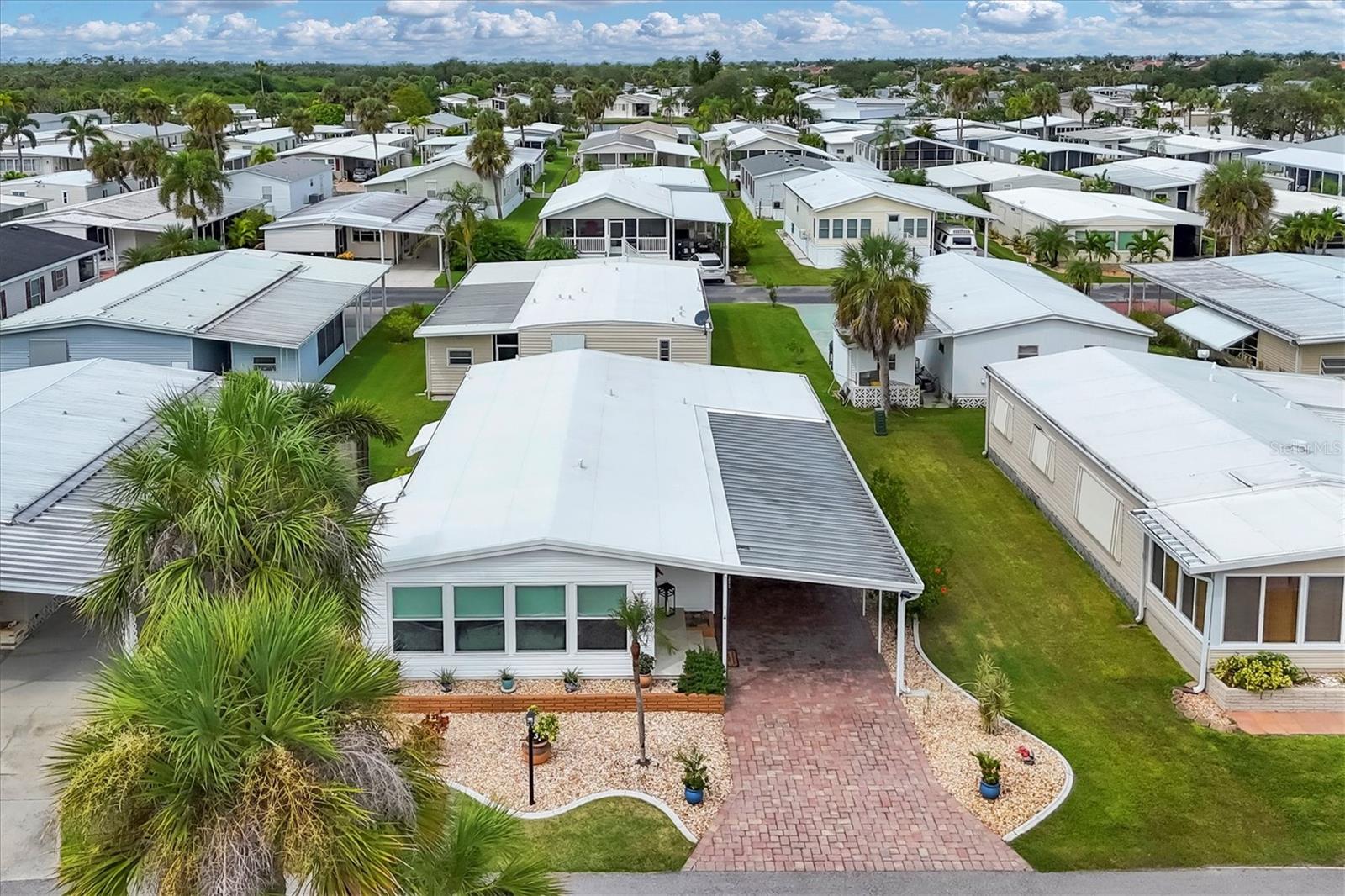 WOW...doesn't get better than this...price improvement to $159,900! Seller contributing $5,000 towards the purchase of your shares which reduces your quarterly dues and is refundable upon resale. Look no further...live the Florida Dream in Eagle Point - A Waterfront 55+ Community! Priced right and perfectly located, this home is more than just a place to live, beautifully landscaped with Palm trees and Florida tolerant plants--it's an affordable investment opportunity in one of the most desirable 55+ waterfront communities on Florida's Gulf Coast. Eagle Point offers direct access to Alligator Creek leading into Charlotte Harbor, where boating, kayaking, and world-class fishing are part of everyday life. Imagine mornings on the community pier with your coffee as the sun rises over the water, afternoons kayaking alongside Florida's wildlife, and evenings watching breathtaking sunsets with friends. Eagle Point isn't just a community--it's a year-round lifestyle. This well-maintained, move-in-ready home offers 1,056 square feet of updated living space. Best of all, it's being sold partially furnished (with only a few personal exceptions), allowing you to start enjoying your Florida lifestyle immediately. Walk-into the climate-controlled Florida Sunroom is perfect for morning coffee or quiet reading, while the spacious dining room offers built-in China Cabinet/Entertainment center is ideal for gatherings. The kitchen features ceramic tile flooring, wraparound granite countertops with bar seating, cabinets, a window over the stainless-steel sink--perfect for those who enjoy cooking. The primary suite offers generous his and her closets and a private bath with walk-in shower, the guest bedroom provides ample space with dual closets. Guest Bathroom offers tub/shower combination single vanity. Step outside into the screened lanai for entertaining or family gatherings, complete with wicker (4) chair glass top dining table, loungers and side table are included with the purchase. Additional features include a private fenced grilling area, a storage shed/workshop with workbench, a 37' x 12'covered carport makes for easy access into the home. Eagle Point Community is packed with amenities to keep you active and social, including a heated pool, Wi-Fi enabled clubhouse, library, grill area, billiards, ping pong, shuffleboard, bocce, fishing, and kayaking on Alligator Creek. Residents also have the option of applying for boat launch and storage permits, making it easy to embrace Florida's waterfront lifestyle. HOA dues include water, sewer, trash, recreational facilities, and road maintenance. New 100 amp electrical panel/new water heater/new roof replaced 2023/new Florida Sunroom windows 2022/Kitchen granite countertops 2023/new engineered hardwood bedrooms/Sunroom. Location is second to none--just minutes from Port Charlotte's shopping, dining, and medical facilities, Fisherman's Village, and the Sunseeker Resort offering world-class entertainment. Golf courses, parks, and Punta Gorda Airport with more than 55 destinations are nearby, and Southwest Florida's pristine beaches in Venice/Fort Myers are only a short drive away. Schedule your private showing today and seize this incredible opportunity to start living the Florida the lifestyle you've always dreamed of!