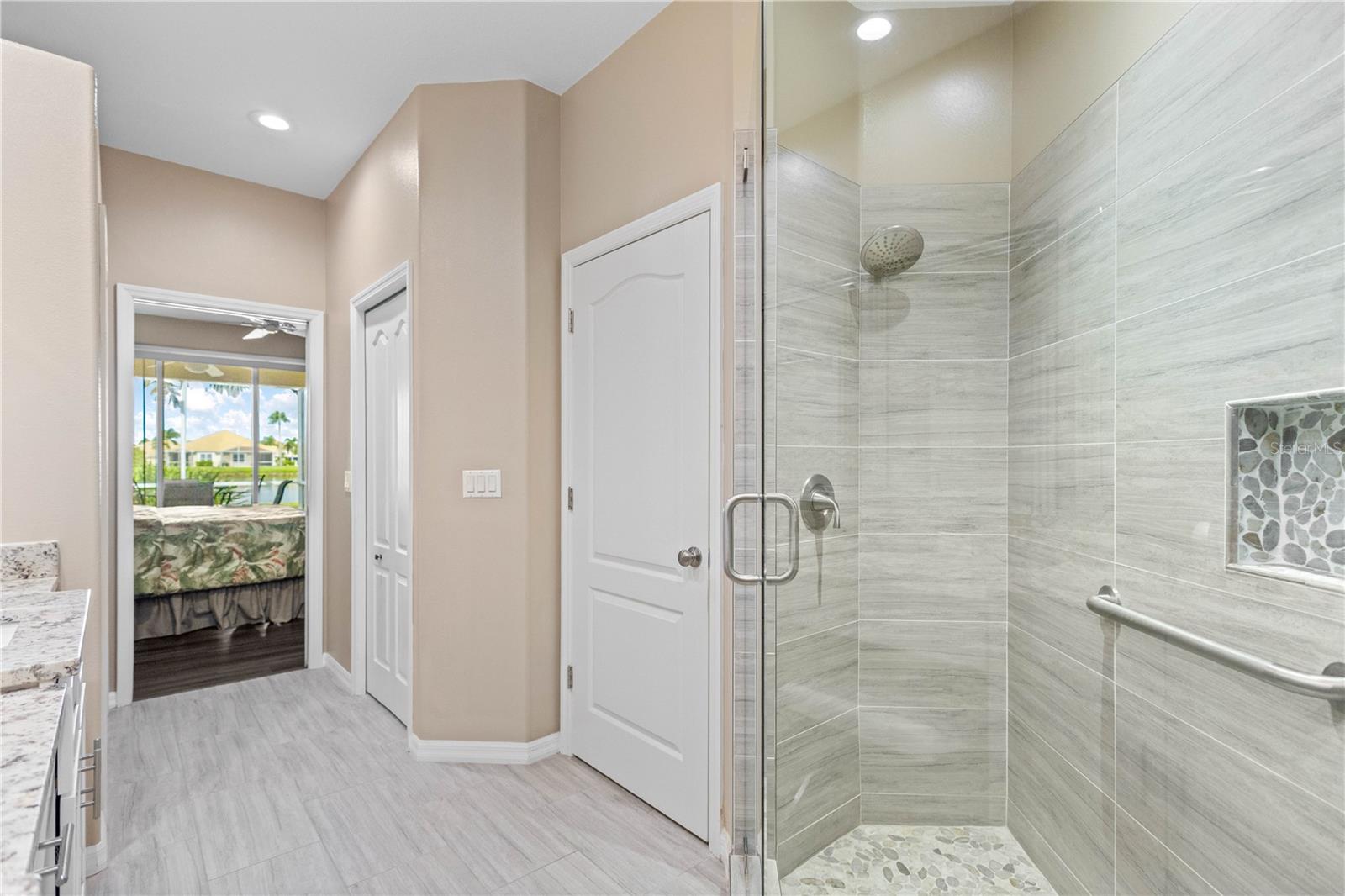 Exterior: Hurricane Shutters, Rain Gutters, Sidewalk, Sliding Doors