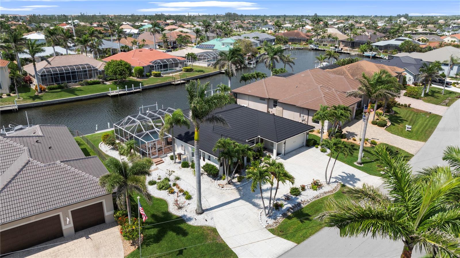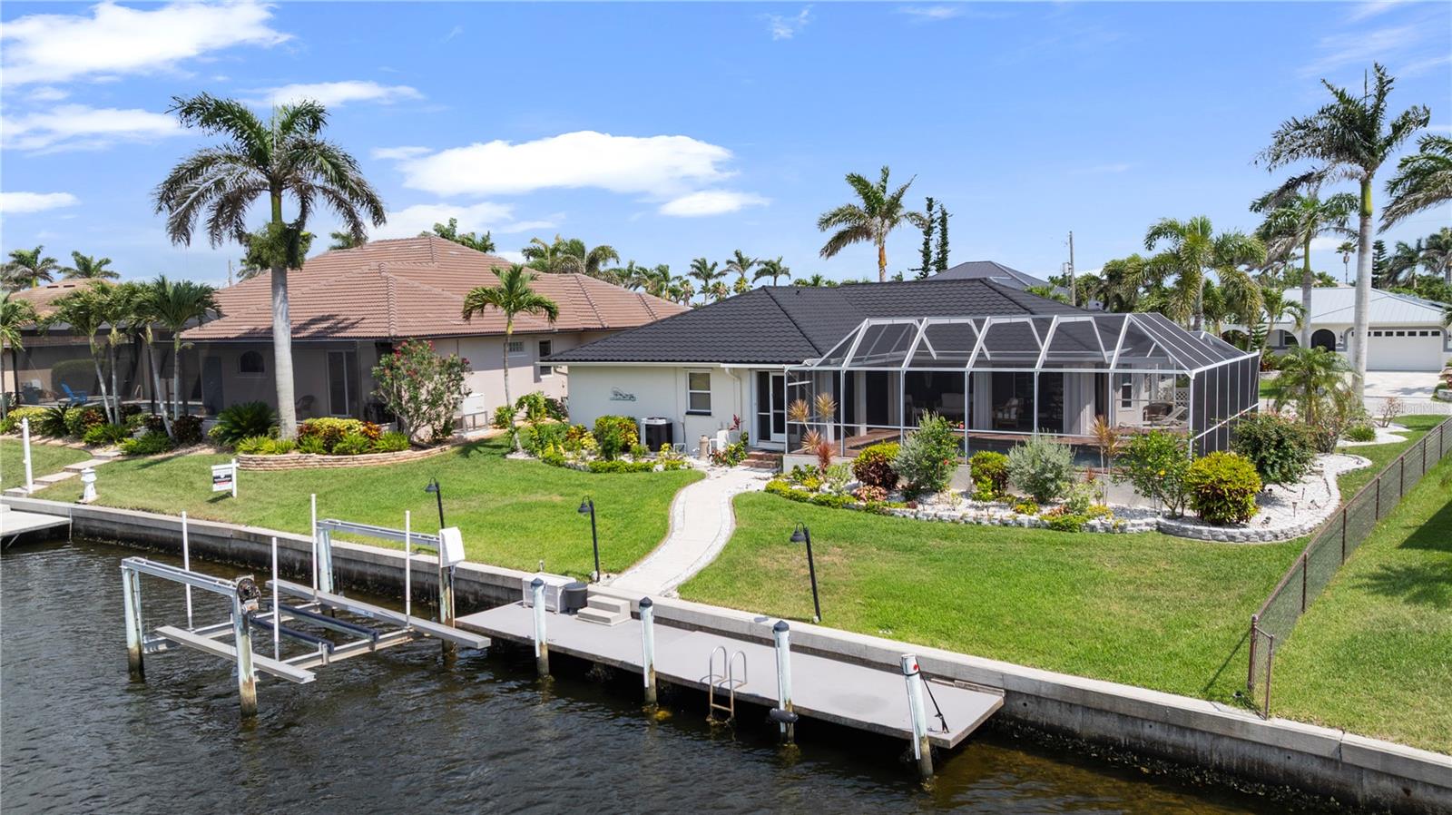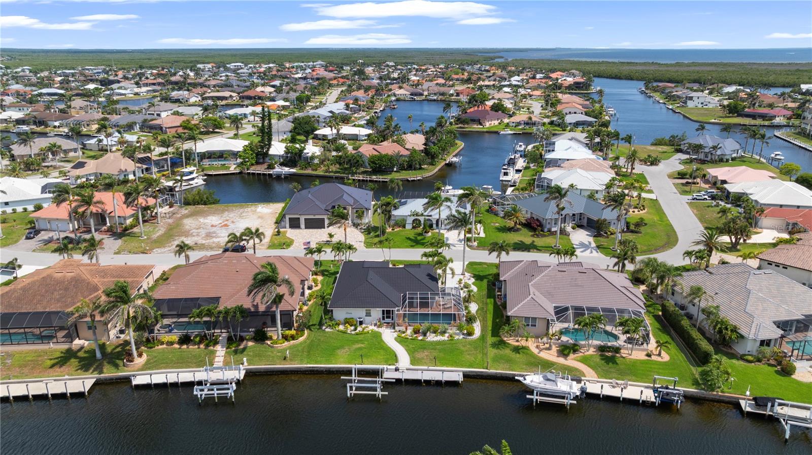 Waterfront paradise set in coveted Punta Gorda Isles. Ready for waterfront coastal living? Here it is - boating, fishing, golfing, pickleball, swimming, kayaking!! This home provides direct access to Charlotte Harbor and the Gulf beyond in just under 15 minutes with no bridges out. No boat? Imagine fishing from your own dock! Beyond the exceptional boating and fishing, Punta Gorda offers a wealth of outdoor activities including 18 miles of paved walking/biking paths, kayaking, birding, and a short drive to some of Florida's most beautiful beaches.Step inside to discover a home designed for both daily comfort and entertaining. Expansive windows throughout capture stunning water views and flood the interior with natural light, while the open-concept living areas create perfect flow for gatherings. The master suite provides a private waterfront retreat with wake-up views of the harbor, while additional bedrooms provide comfort and flexibility for guests or family. Thoughtful design details throughout reflect the coastal lifestyle, creating spaces that feel coastal and relaxed. A covered lanai extends your living area waterside. Whether enjoying morning coffee while watching dolphins play or hosting sunset cocktails, the outdoor entertaining areas are designed to maximize your enjoyment of the waterfront setting. The heated pool and spa provide year-round fun and relaxation. An outdoor shower and direct access to a pool bath from the lanai mean no drips to clean up. A 2024 roof with a 50-year warranty on labor and 100-year material warranty (transferable to new owners) provides added peace of mind.This is more than just a home - it's your personal waterfront resort. With a dock ready for your vessel, fishing just steps away, and sunset views that never get old, you're not just buying a house; you're investing in a lifestyle that balances coastal living, waterfront views, and activities while being just minutes away from Fishermen's Village and historic downtown Punta Gorda. Numerous restaurants, boutique shopping, farmers' markets, the PicklePlex, golf, and activities are all within 10 minutes. Don't let this slice of paradise slip away. Schedule your private showing today and discover why this could be the waterfront lifestyle you've been dreaming of. Furnishings available on a separate bill of sale.