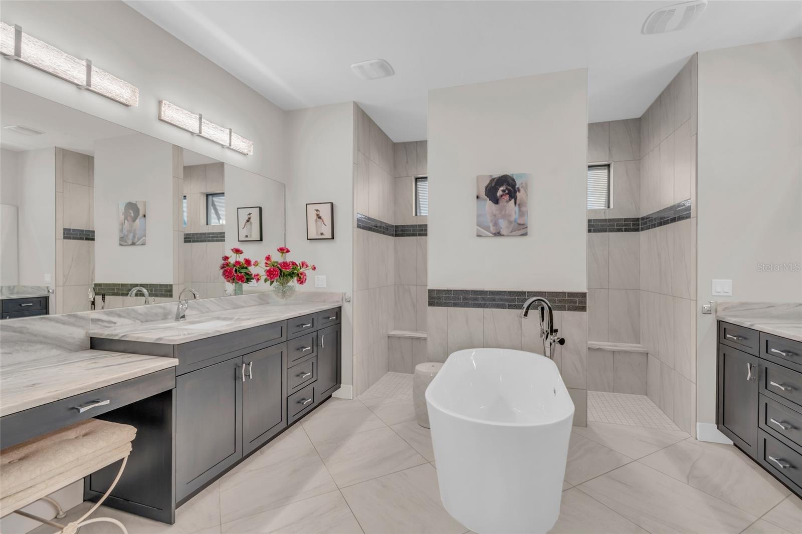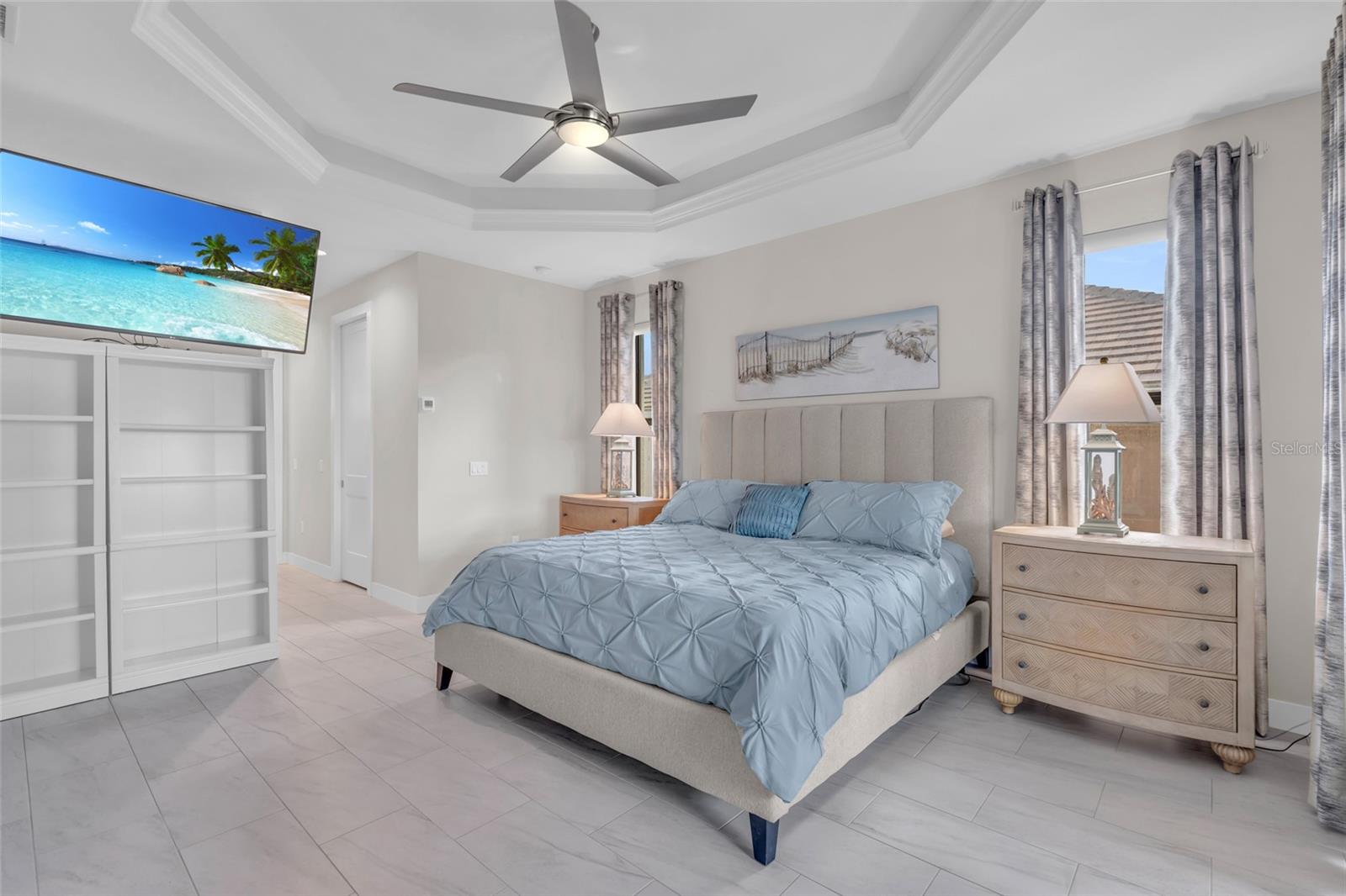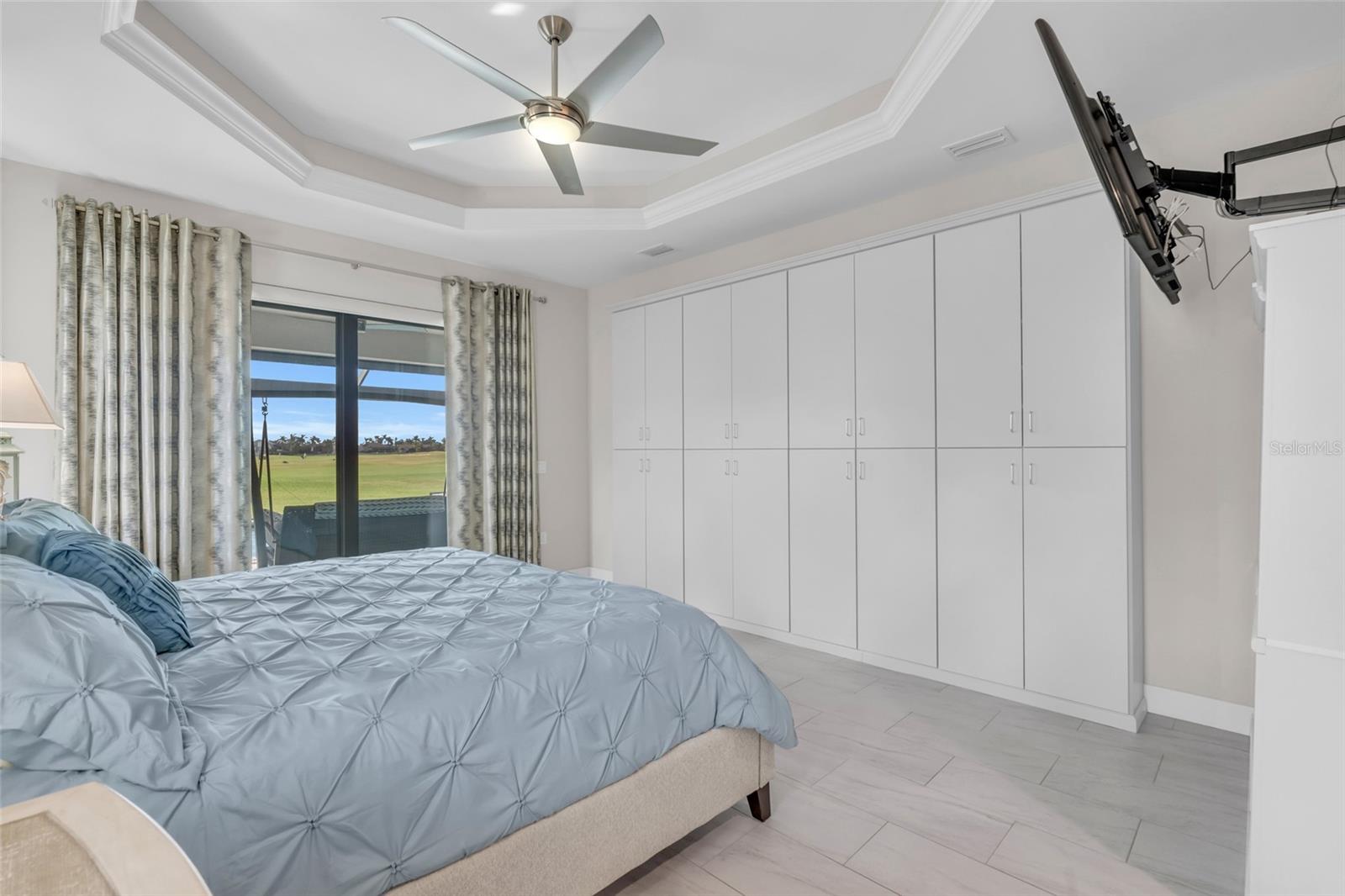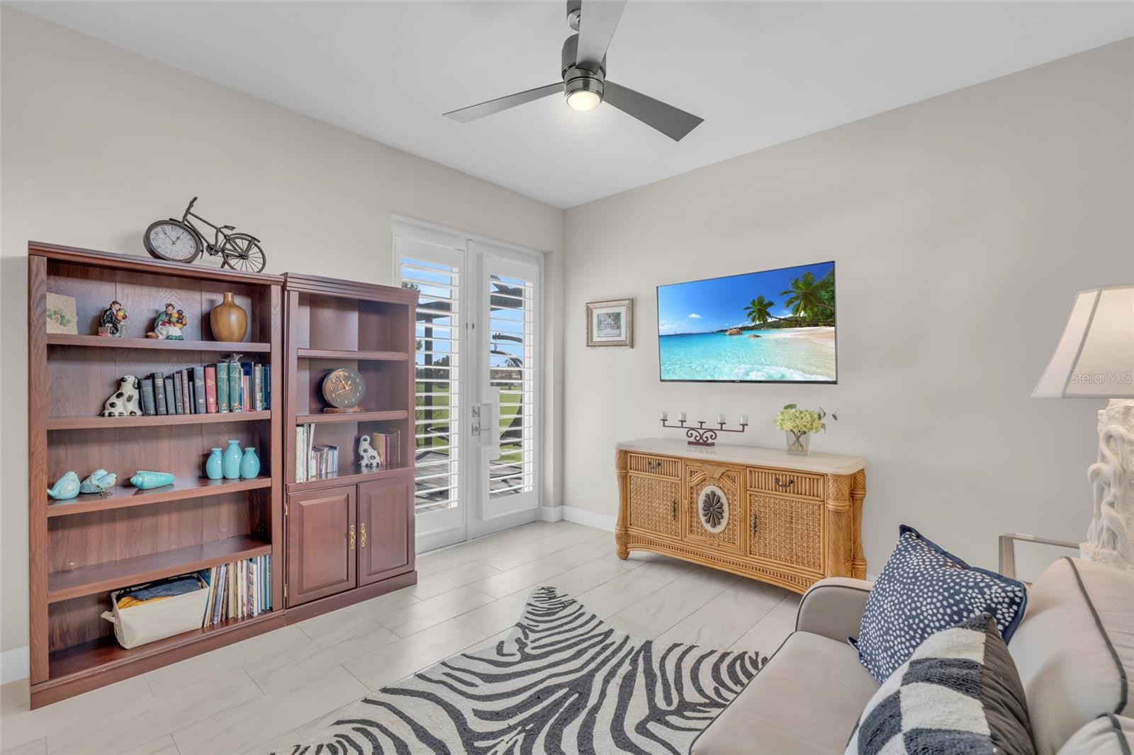 This exceptional residence, situated on the 13th hole of Twin Isles Golf Course, offers a captivating blend of contemporary design, high-end finishes, and picturesque southwestern views for unforgettable sunsets. From the moment you arrive, the expansive paver driveway and walkway, lush landscaping, elegant glass double doors, and Bahamian style accent shutters create a captivating first impression. Boasting a large open floor plan, this 2020-built three bedroom plus den home features impact glass windows and doors, and soaring coffered ceilings with elegant crown molding. A zero-corner slider seamlessly connects the living room to the outdoor oasis, where you will no doubt spend countless evenings unwinding as the sun sets over the large picture window screen enclosure. The expansive outdoor entertaining area features a handsome heated saltwater pool with spillover, Pebble Tec finish, inviting in-pool lounges, plus Pentair controls, all overlooking the expansive golf course. You will love to relax with friends or dine al fresco under the ample covered lanai with convenient pool bath access. The chef's kitchen is a culinary dream, with abundant work/entertaining surfaces and storage. High end stone counters and backsplash add pizzazz to this killer kitchen, while GE Profile appliances, including a 48" wide refrigerator, cooktop, and built-in double oven support all of your culinary needs. Entertaining is a breeze with a dedicated bar with wine chiller, dual islands with breakfast bar seating, and a hidden oversized walk-in pantry. Throughout the home, you'll find a rich neutral color scheme, light colored plank tile flooring, custom lighting, crown molding, plantation shutters, and solid-core doors. The dedicated office, accessed via French doors, includes an impressive custom built-in office system. Prepare to be blown away by the oversized 22x40 air-conditioned 4 car garage, with epoxy floor and plenty of room for tinkering and storage! The luxurious master suite is a serene retreat featuring tray ceilings, motorized shades, private lanai access, dual walk-in closets, and bonus built in storage. The enticing spa-like bath offers split vanities, large soaking tub, and a custom walk-through shower. The split-bedroom layout ensures privacy for guests, with two generously sized suites...one with direct lanai access and ensuite bath and a second featuring ensuite with a walk-in closet. An impressive utility room completes this incredible home with tremendous storage to keep you organized. Impact windows plus a motorized roll down lanai shutter, installed in 2023, allows you to vacation with peace of mind. Burnt Store Isles is a deed-restricted golf and boating community, offering great proximity to downtown Punta Gorda, Fishermen's Village, world-class fishing and boating, and beautiful parks.
