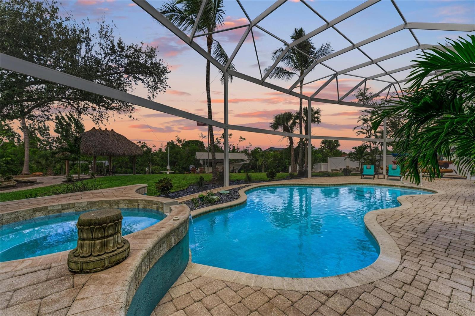 Paradise Found in Cape Haze!This majestic two-story luxury waterfront estate embodies the very best of Florida living, combining timeless design with exceptional upgrades and direct access to the Gulf of America. With 5 spacious bedrooms, 4 full bathrooms, a private elevator, and an expansive resort-style pool and spa, this home is as functional as it is breathtaking.From the moment you arrive, the curb appeal captivates with mature tropical landscaping with 3 wells on site, a circular drive, new pavers, and a welcoming entry. At the water's edge, a brand-new tiki hut and lounge area create the perfect private retreat for sunset gatherings, overlooking the wide canal with a small island beyond the dock that provides privacy from houses across the canal.Step inside to soaring vaulted ceilings, French doors, and walls of glass that flood the home with natural light and frame panoramic water views. The main living level offers an open-concept design blending elegance with comfort: a great room with custom built-ins and fireplace, a gourmet kitchen with Cambria quartz counters, premium appliances including LG refrigerator and two-drawer dishwasher, upgraded cabinetry, and a glass-railed covered porch for year-round indoor/outdoor living. Off the porch is a spiral staircase to the Crow's Nest with 360 views of the nearby Intercoastal waterway, Gulf, and Boca Bridge.The primary suite is a sanctuary of luxury with balcony access, dual walk-in closets, and a spa-style bath featuring soaking tub, glass shower, and dual vanities. Also off the living room is a guest bedroom with built in murphy bed and en suite bathroom. Just past the kitchen, the 2nd guest bedroom with beautiful faux paint and extra space for relaxing is ideal and the 3rd guest bedroom has a built-in murphy bed and doubles as an office with access to the lanai. Also on this side of the home is the large laundry room and shared guest bathroom.The lower level expands the lifestyle with a 38' x 27' bonus room opening to the pool, a full bath, a large guest suite with den/walk-in closet, a 3-car garage, and dedicated workshop/storage areas--perfect for entertaining, hobbies, or multi-generational living.Recent upgrades ensure peace of mind and modern convenience: new pavers, new panoramic two-story pool cage, new Pentair pool heater/motor/controls, new AC, new water heater, new LG & GE appliances, new lawn and landscaping, plantation shutters, designer lighting, hurricane protection, generator connection, and more.Boaters will appreciate the deep-water canal with seawall, extended dock, two boat lifts, and a brand-new jet ski lift--all just 15 minutes to open Gulf waters via the Intracoastal.As part of Cape Haze, residents also enjoy deeded beach access to Don Pedro Island, and an optional HOA with clubhouse, offering a rare combination of Gulf-front beach lifestyle and deep-water boating from your backyard.Located minutes from world-class fishing, golf, fine dining, shopping, and set within golf cart-friendly streets, this home truly captures the essence of the Southwest Florida lifestyle.Luxury. Lifestyle. Location. This home has it all. Be sure to view the full virtual tour for every detail.