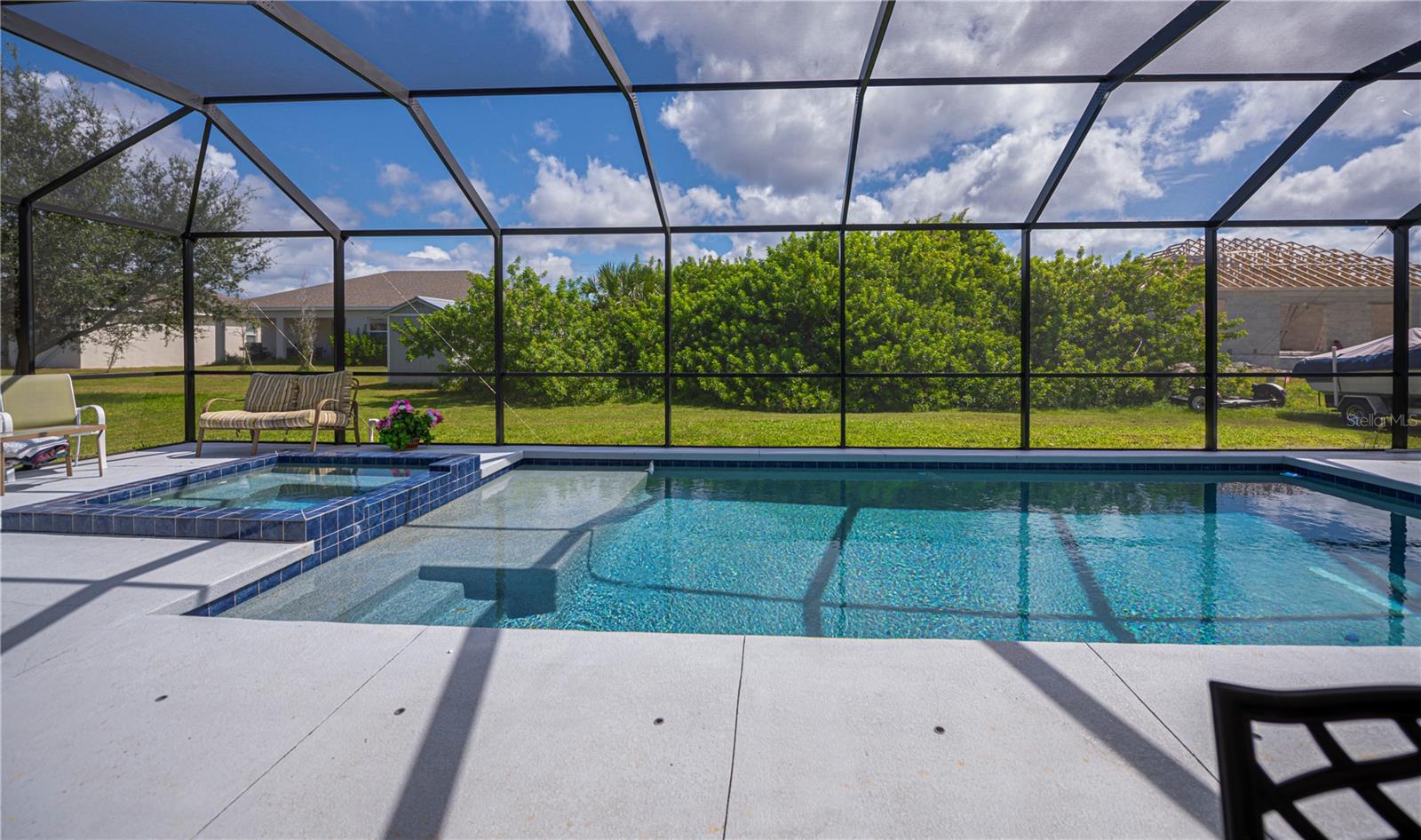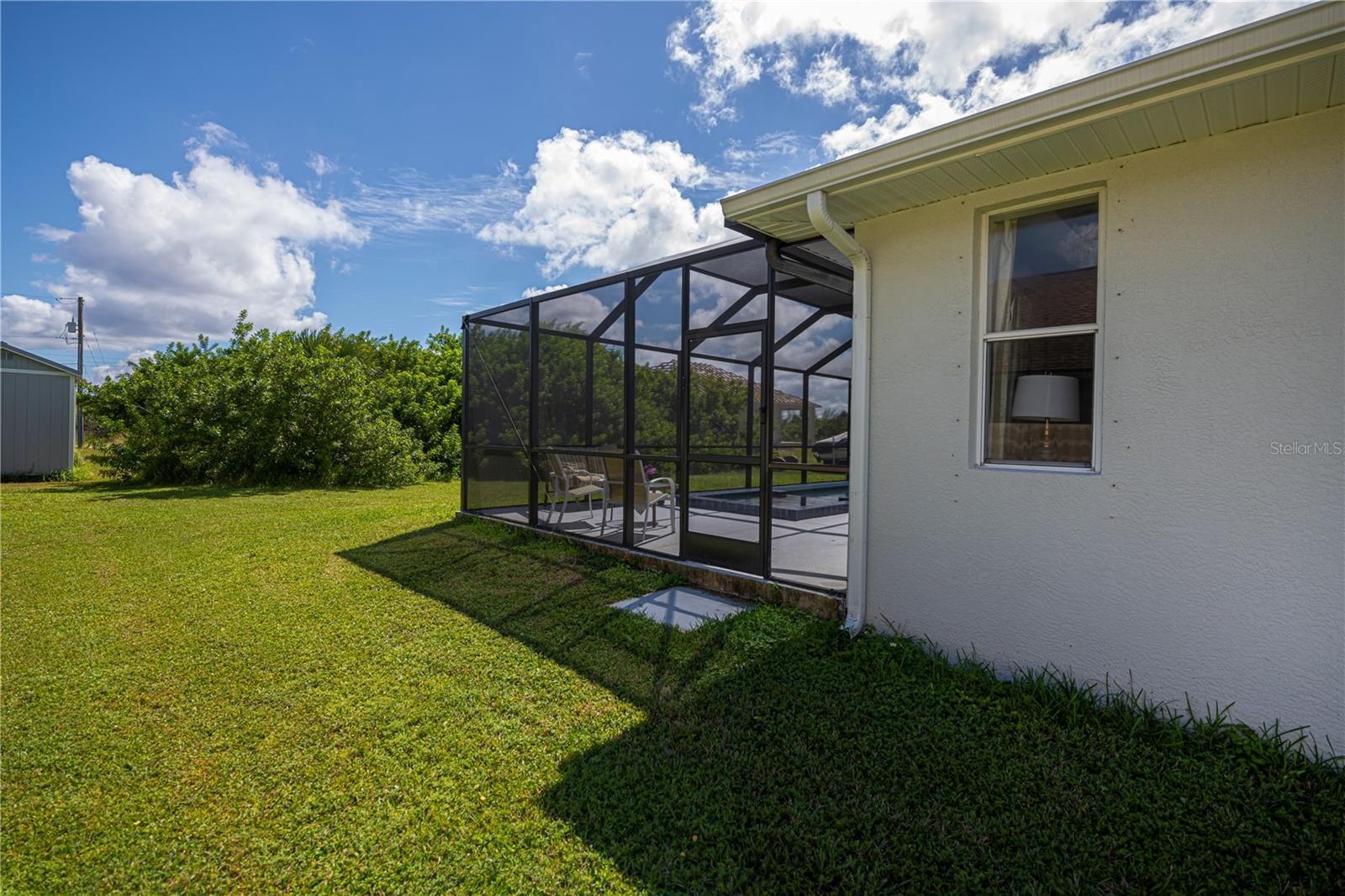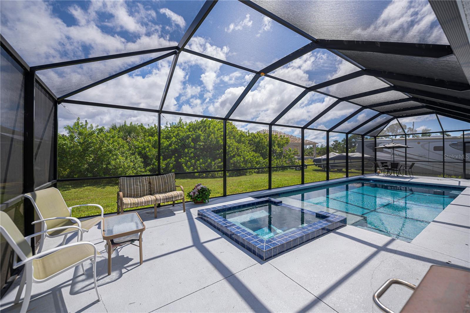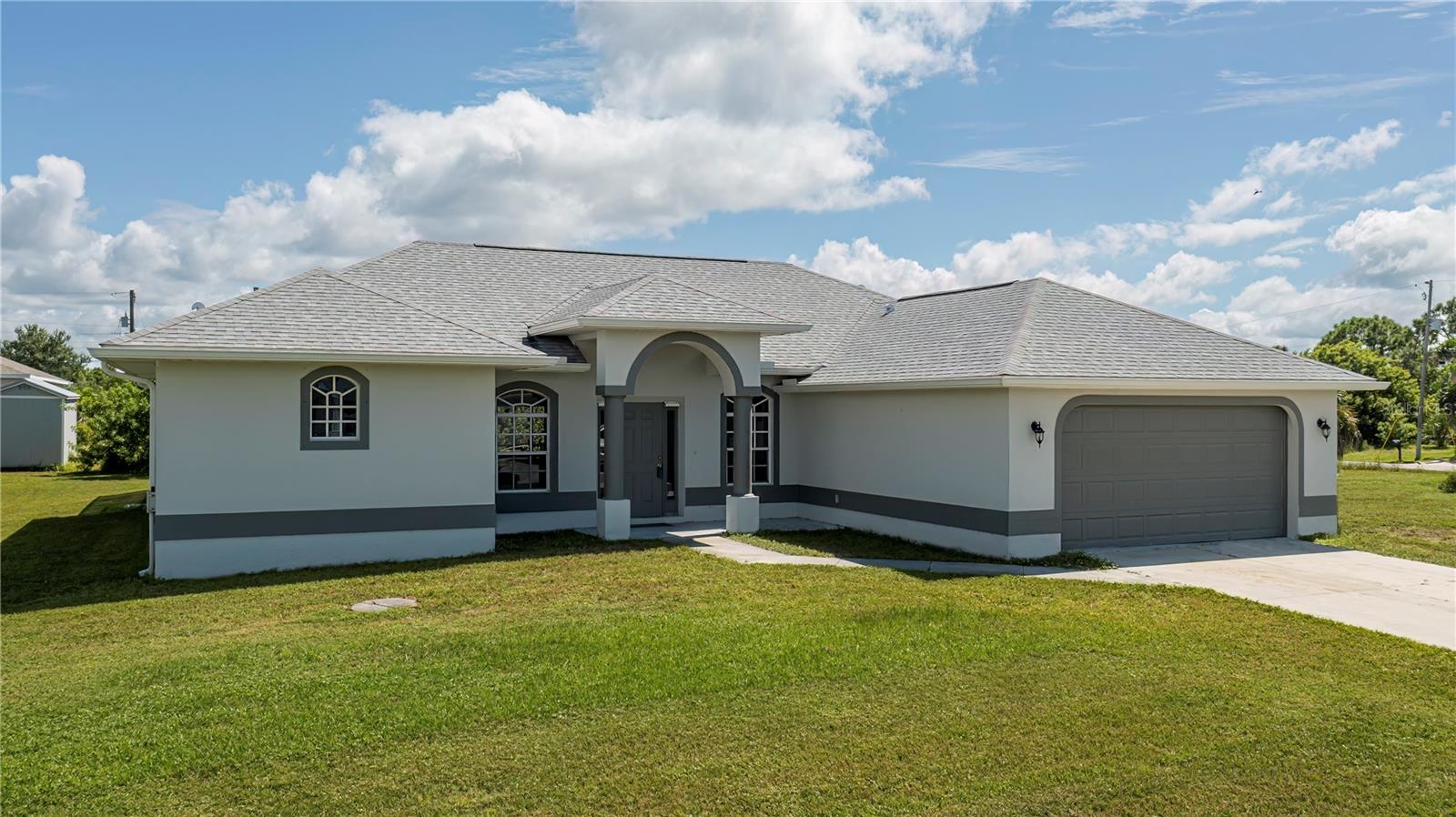 Here is your opportunity to experience extra privacy with this extra special 3/2/2 POOL Home in the charming waterfront community of South Gulf Cove.With eye catching curb appeal, enjoy the soaring entryway, rich columns, and complimentary accent bands, these added features are most inviting.This split floor plan offers custom stained mill-worked window and doorway casings, high ceilings, abundant natural light, all overlooking a spectacular HEATED SALTWATER POOL with modern automated features including a spa. Spacious living room has a built in entertainment center and tall vaulted ceiling, just perfect for all your socializing or winding down needs. This kitchen is chef worthy kitchen boasting granite countertops, wood cabinetry,stainless steel appliances, breakfast bar and separate dinette with exceptional wainscoting accents perfect for morning thru night to relax leisurely overlooking your backyard oasis. The master bedroom has a beautiful coffered ceiling, private patio/pool access, dual walk in closets and lovely en-suite bath featuring two sinks plus both a shower and large jacuzzi tub. Guests will enjoy two choice bedrooms with nice walk in closets, and breezy fans sharing a nicely appointed pool bath with the rest of the home. Inside laundry room is conveniently located by the 20x24 garage and kitchen with extra upper cabinetry, storage/utility closet/pantry plus has a utility sink. NEW 2023 ROOF, GUTTERS, NO-SEE-UM Pool screens, and freshly painted exterior add extra value and peace mind.SWIM YEAR ROUND, your Saltwater pool is also HEATED! Lounge leisurely on the pool sun ledge or relax in the jacuzzi and enjoy all the automated lighting features with so many options to dazzle whatever you or your guests desire. Imagine all the special times ahead to be made with friends and family within this idyllic retreat and the added fun features you can dream of in your expansive side and backyards.The second lot has already been cleared for your enjoyment and ready for all your personal ideas. South Gulf Cove is a premier deed restricted community featuring a voluntary HOA with remarkably low annual dues of only $120.As an HOA member, you'll enjoy access to the air-conditioned clubhouse, complimentary Wi-Fi, ping pong, darts, cornhole, horseshoes, tiki huts, and discounted clubhouse reservations. Several community parks are nearby, offering walking paths, boat launch, fishing docks, picnic shelters, BBQ grills, and playgrounds.SGC is only minutes away from WORLD CLASS FISHING, GOLF COURSES, shopping, dining, SW FL beaches in Boca Grande and Manasota Key plus access to over 55 miles of SGC waterways leading to Charlotte Harbor, Myakka River & the Gulf.Here is the Florida lifestyle you've dreamed of...make it a reality & schedule your showing TODAY!