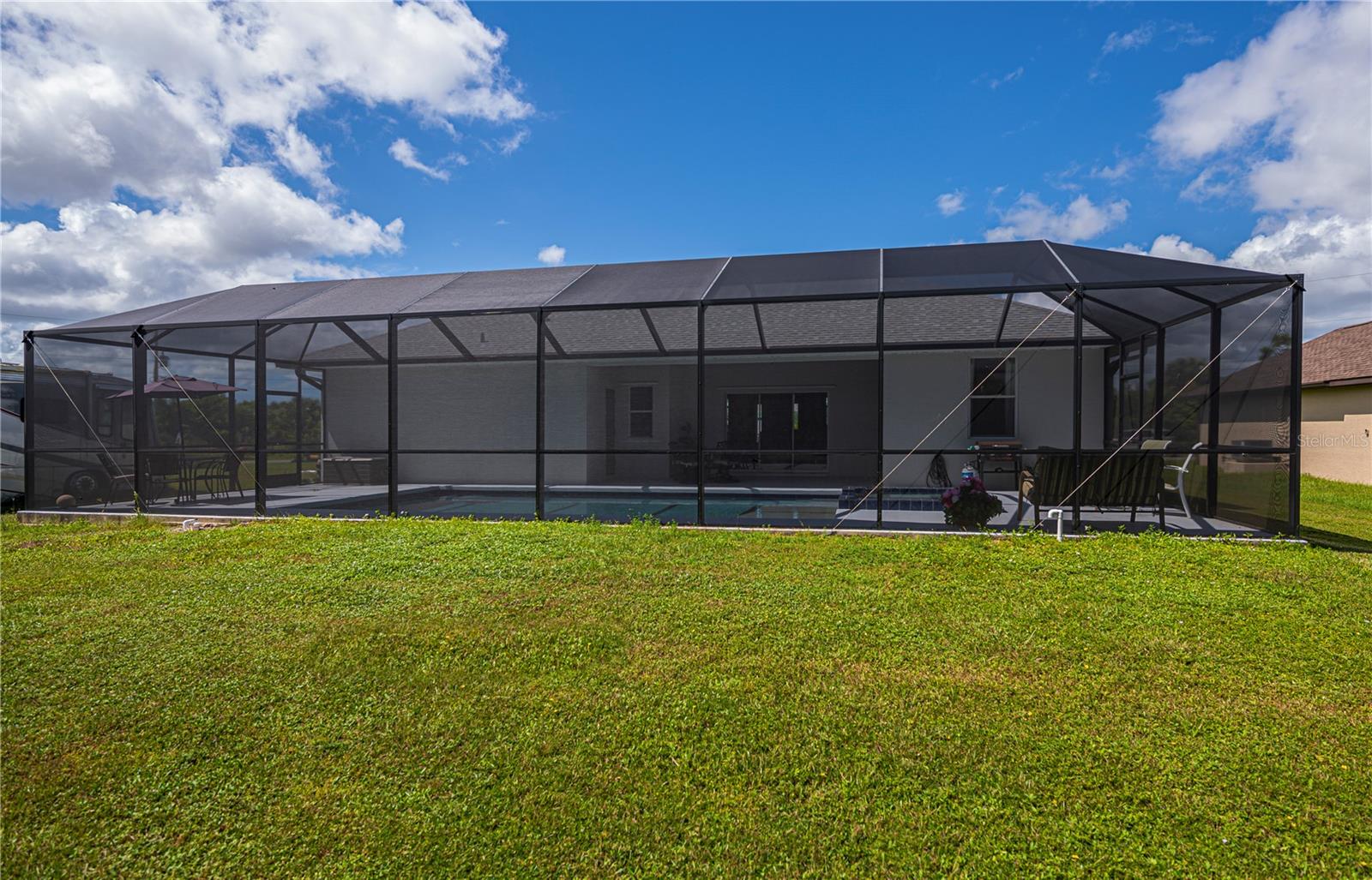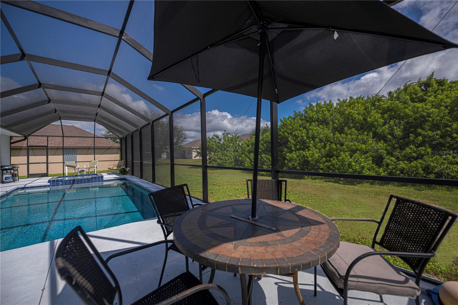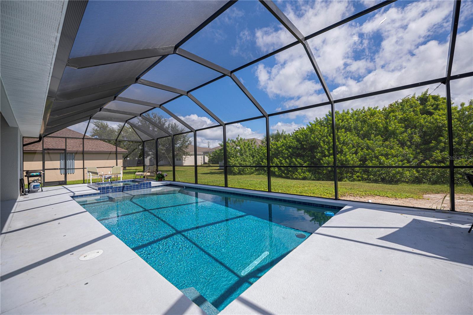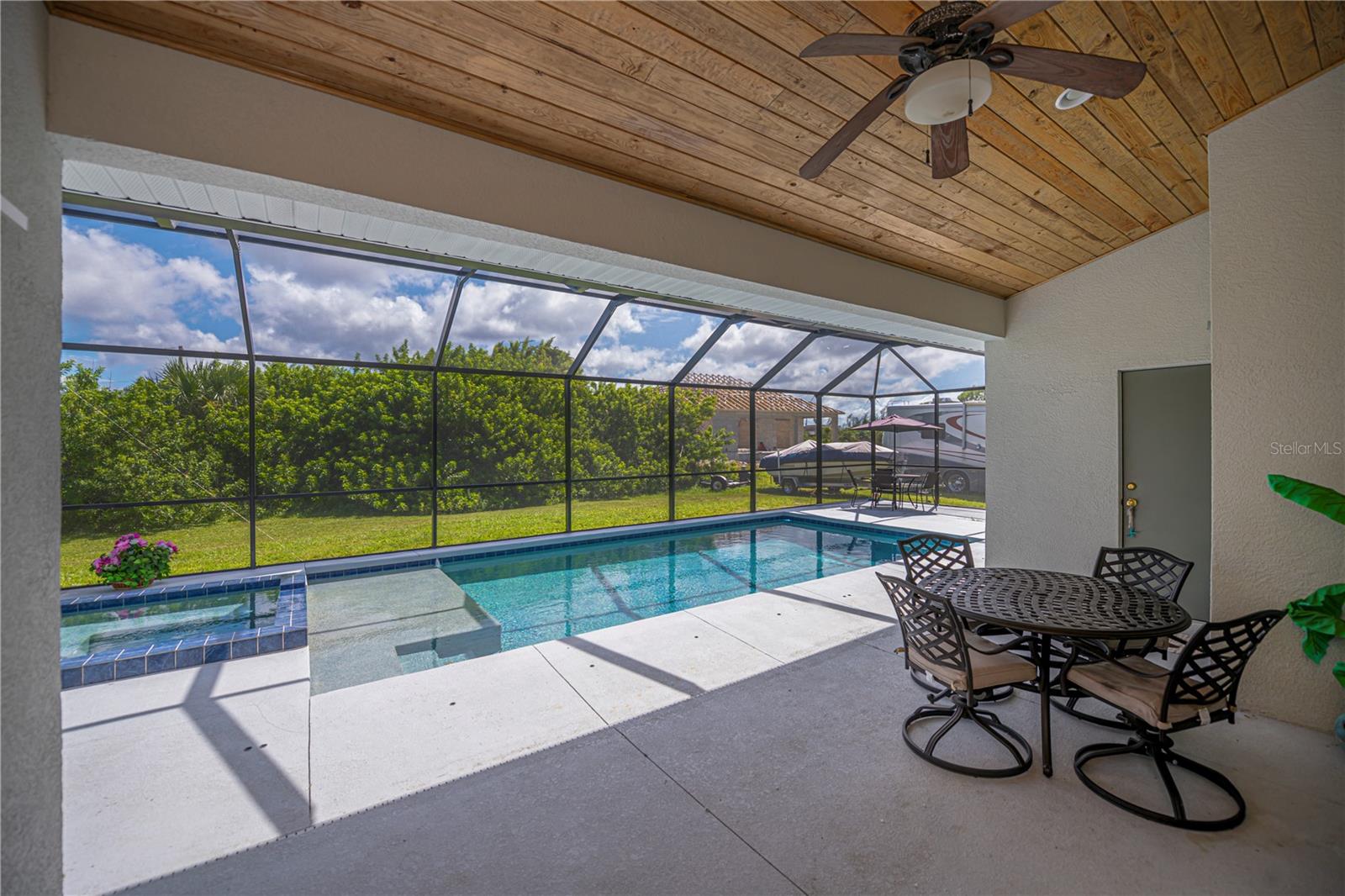 Here is your opportunity to experience extra privacy with this extra special 3/2/2 POOL Home in the charming waterfront community of South Gulf Cove.With eye catching curb appeal, enjoy the soaring entryway, rich columns, and complimentary accent bands, these added features are most inviting.This split floor plan offers custom stained mill-worked window and doorway casings, high ceilings, abundant natural light, all overlooking a spectacular HEATED SALTWATER POOL with modern automated features including a spa. Spacious living room has a built in entertainment center and tall vaulted ceiling, just perfect for all your socializing or winding down needs. This kitchen is chef worthy kitchen boasting granite countertops, wood cabinetry,stainless steel appliances, breakfast bar and separate dinette with exceptional wainscoting accents perfect for morning thru night to relax leisurely overlooking your backyard oasis. The master bedroom has a beautiful coffered ceiling, private patio/pool access, dual walk in closets and lovely en-suite bath featuring two sinks plus both a shower and large jacuzzi tub. Guests will enjoy two choice bedrooms with nice walk in closets, and breezy fans sharing a nicely appointed pool bath with the rest of the home. Inside laundry room is conveniently located by the 20x24 garage and kitchen with extra upper cabinetry, storage/utility closet/pantry plus has a utility sink. NEW 2023 ROOF, GUTTERS, NO-SEE-UM Pool screens, and freshly painted exterior add extra value and peace mind.SWIM YEAR ROUND, your Saltwater pool is also HEATED! Lounge leisurely on the pool sun ledge or relax in the jacuzzi and enjoy all the automated lighting features with so many options to dazzle whatever you or your guests desire. Imagine all the special times ahead to be made with friends and family within this idyllic retreat and the added fun features you can dream of in your expansive side and backyards.The second lot has already been cleared for your enjoyment and ready for all your personal ideas. South Gulf Cove is a premier deed restricted community featuring a voluntary HOA with remarkably low annual dues of only $120.As an HOA member, you'll enjoy access to the air-conditioned clubhouse, complimentary Wi-Fi, ping pong, darts, cornhole, horseshoes, tiki huts, and discounted clubhouse reservations. Several community parks are nearby, offering walking paths, boat launch, fishing docks, picnic shelters, BBQ grills, and playgrounds.SGC is only minutes away from WORLD CLASS FISHING, GOLF COURSES, shopping, dining, SW FL beaches in Boca Grande and Manasota Key plus access to over 55 miles of SGC waterways leading to Charlotte Harbor, Myakka River & the Gulf.Here is the Florida lifestyle you've dreamed of...make it a reality & schedule your showing TODAY!