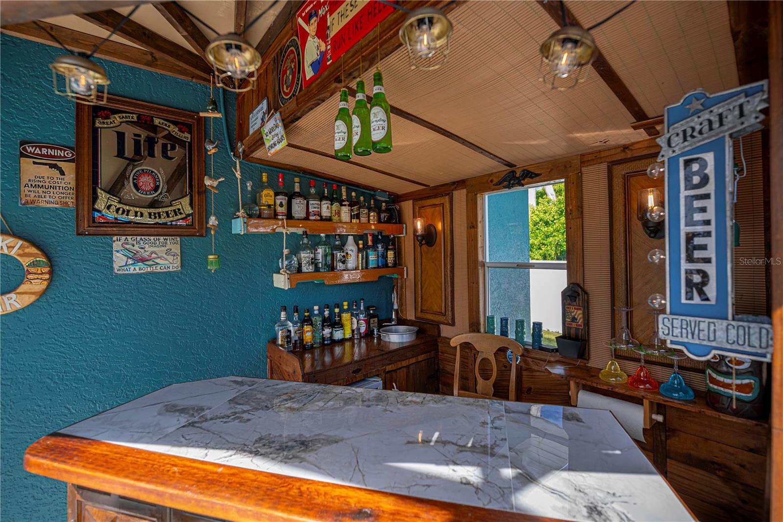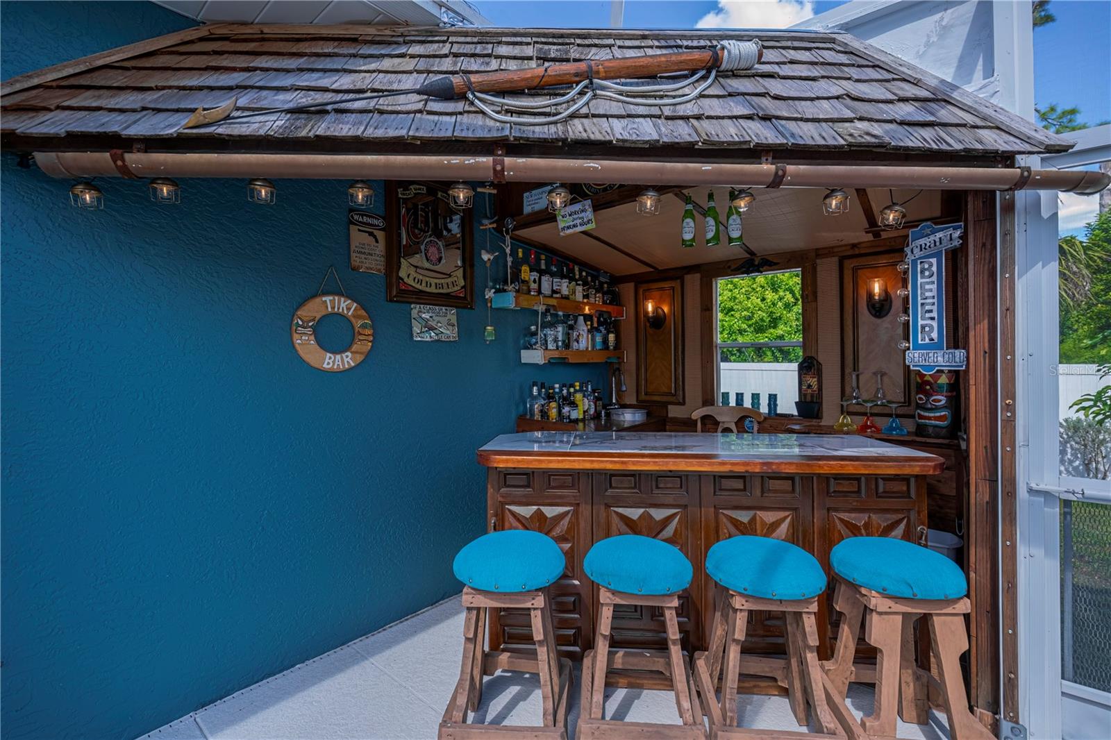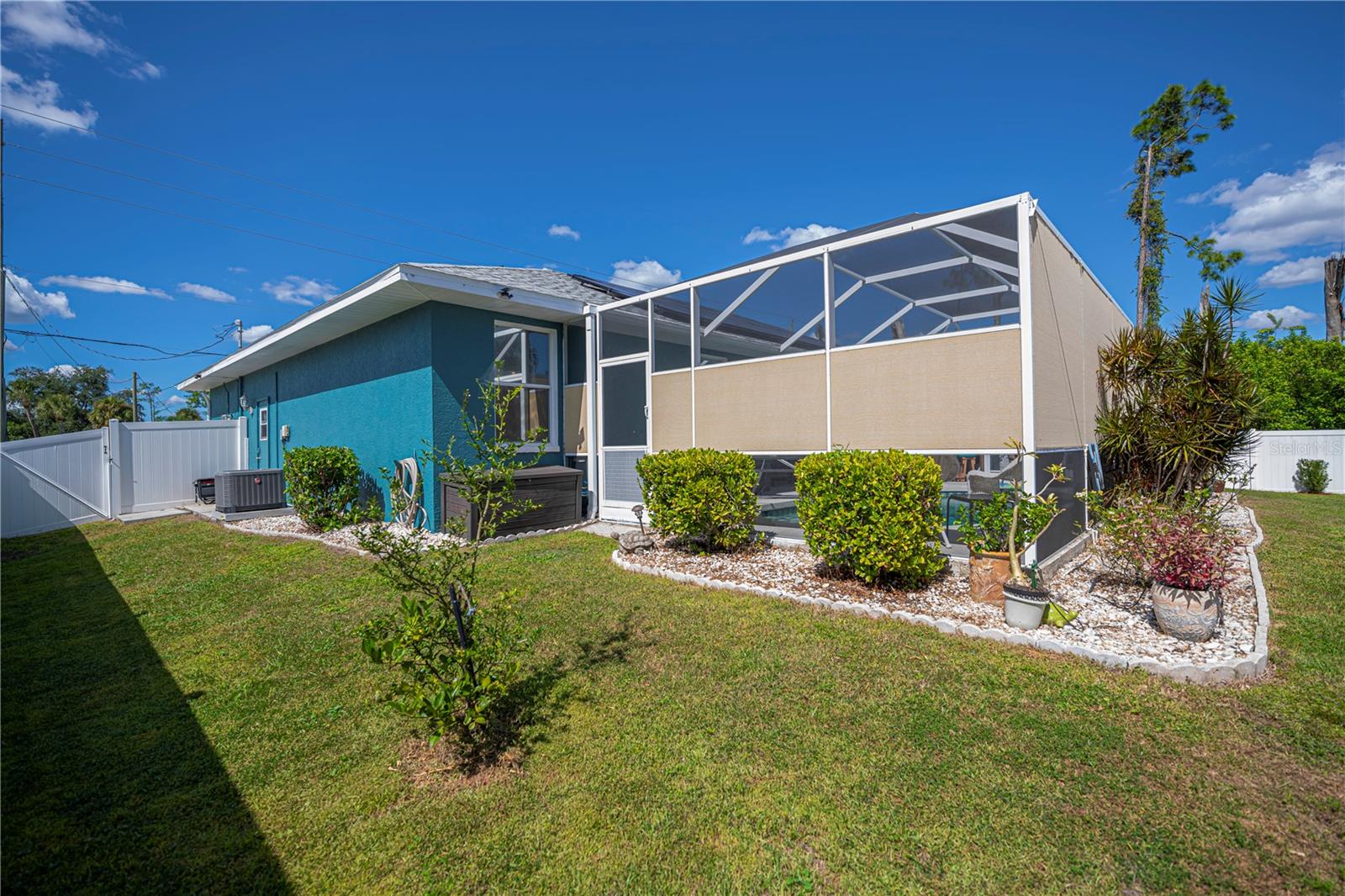 ABSOLUTELY STUNNING 3-bedroom, 2-bathroom, 2-car garage POOL HOME in North Port featuring the ULTIMATE BACKYARD SHOWSTOPPER--a one-of-a-kind POOLSIDE TIKI BAR perfect for unforgettable gatherings and fun-filled weekends! This beautifully updated residence offers incredible SOLAR SAVINGS and custom decorator touches throughout that make it truly unique. $$ PRICE IMPROVEMENT ALERT $$Step inside through a welcoming entry to elegant ceramic plank tile flooring, rounded corners, and sunburst windows that bathe the home in natural light, all within a private, fully fenced yard.The chef's dream kitchen boasts pristine white shaker cabinetry with soft-close doors and drawers, a subway tile backsplash, granite countertops, a spacious pantry, and a convenient breakfast island with high-quality appliances. Gather in the expansive living room and separate dining area, enhanced with stylish custom accents--ideal for entertaining family and friends.Retreat to the luxurious master suite featuring private patio access, pool entry, a large walk-in closet, and a beautifully updated ensuite with dual sinks, granite vanities, and a private commode. Guest bedrooms offer ample space and share a modern, updated bathroom.Step outside to your oversized private pool with a generous sundeck perfect for lounging, a large covered patio, and the show-stopping custom tiki-style outdoor wet bar--a backyard entertainer's dream! Garden lovers will adore the pergola misting system designed to nurture orchids and create a serene outdoor oasis.Additional highlights include:*New 2023 pool cage and 2025 A/C system*Recent property survey*Public water & septic (2013)*Smart 8-zone sprinkler system with Bluetooth tech (2020)*Inside laundry with extra storage cabinetry*Miami-Dade Kevlar hurricane protection for peace of mind*29 solar panels (half already paid off by seller) delivering instant solar equity and an average power bill of only $279/month*Garage with sliding screened doors for airflow and privacy*8x10 outdoor shed with electricity and water--perfect for hobbies or storage*No HOA fees or flood insurance requiredLocated near Myakka State Park and Myakkahatchee Creek Environmental Center with miles of trails, horseback riding, hiking, birdwatching, water access, plus close to Punta Gorda airport, shopping, dining, beaches, Warm Mineral Springs, and the aquatic center.This SOLAR-POWERED PARADISE blends luxury, comfort, and exceptional savings--your private resort awaits in North Port. DON'T MISS OUT--schedule your visit today before this spectacular home is gone!