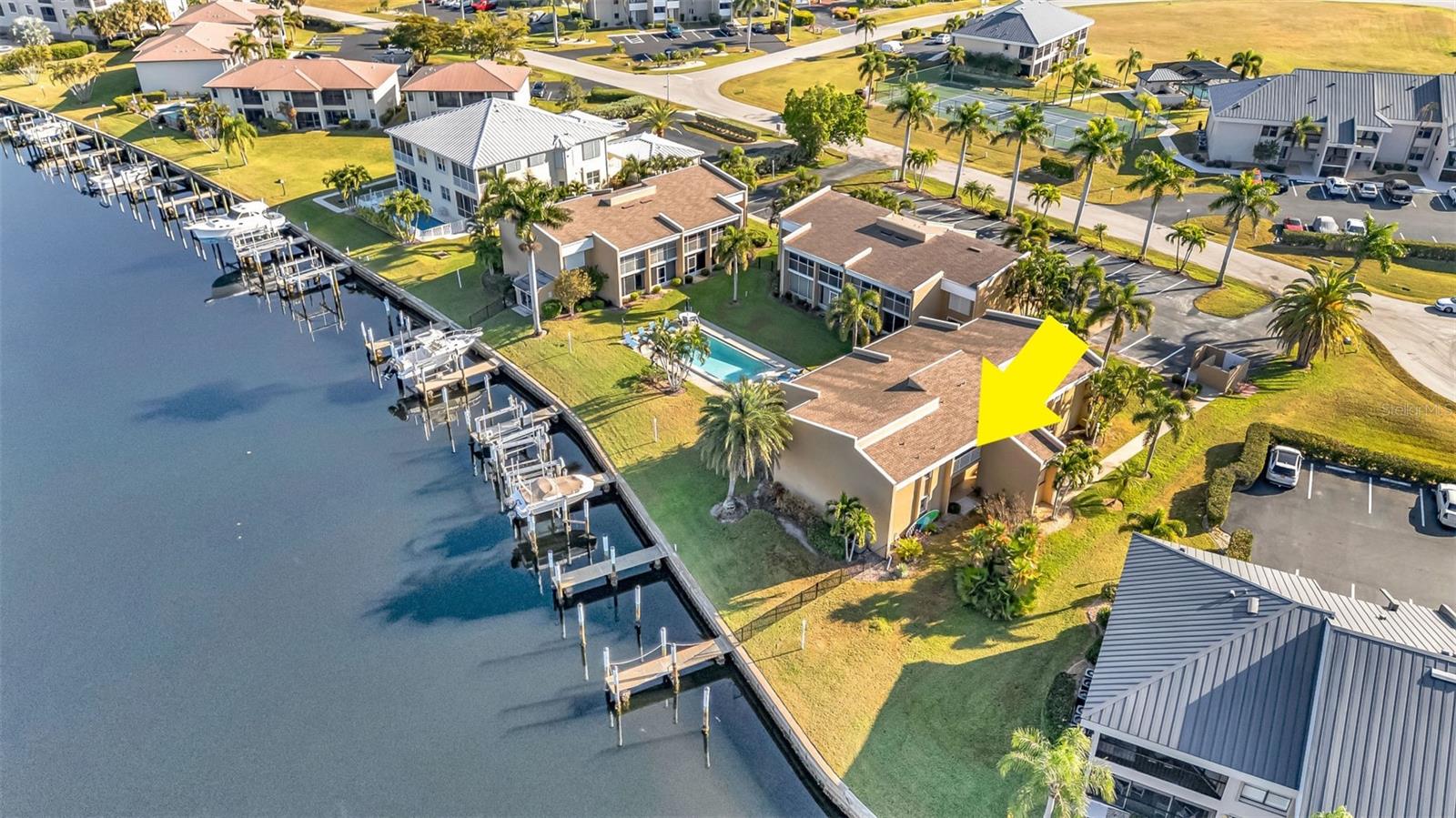 Welcome to this beautifully maintained 2-bedroom, 2-bathroom second-floor waterfront condo, perfectly positioned to capture gorgeous water and pool views. With a deeded dock and a bright, open floor plan, this home offers the ideal blend of coastal living and modern comfort. CLICK ON THE VIRTUAL TOUR LINK 1 FOR THE VIDEO AND VIRTUAL LINK 2 FOR THE 3D TOUR. Step inside to find engineered hardwood flooring throughout and a spacious open living and dining area, perfect for entertaining friends and family. A large glass slider leads to the screened lanai, extending your living space and inviting in refreshing breezes. The kitchen features white appliances, granite countertops, and a convenient breakfast bar, making meal prep and casual dining a breeze. Retreat to the generous master suite, complete with dual closets, a private lanai entrance, and an en-suite bath with split vanities and a walk-in shower. The split bedroom layout ensures privacy for guests, who will enjoy their own comfortable bedroom with a full guest bathroom nearby. Relax on the screened lanai, the perfect spot for your morning coffee or to unwind with your favorite evening beverage while taking in serene water views. This waterfront gem offers comfort, style, and the coveted convenience of your own deeded dock--everything you need to enjoy the best of coastal living. The Rookery is a waterfront deed-restricted and pet free community with a community pool for residents. Enjoy all the amenities that Punta Gorda has to offer, such as biking, fishing, boating, dining, live entertainment, and much more! Close to Fisherman's Village, Ponce De Leon Park, Gilchrist Park, and Historical Downtown Punta Gorda. Just a short car ride to award-winning beaches! Schedule your showing TODAY!