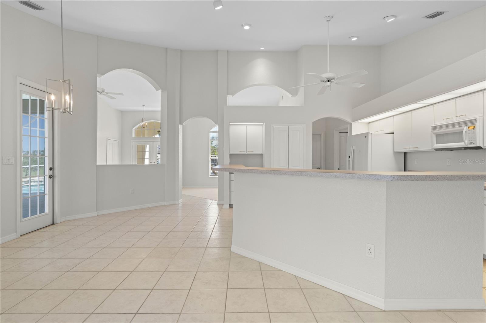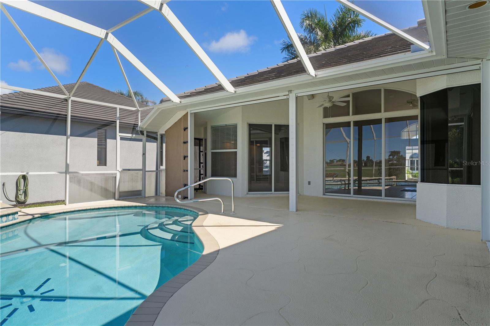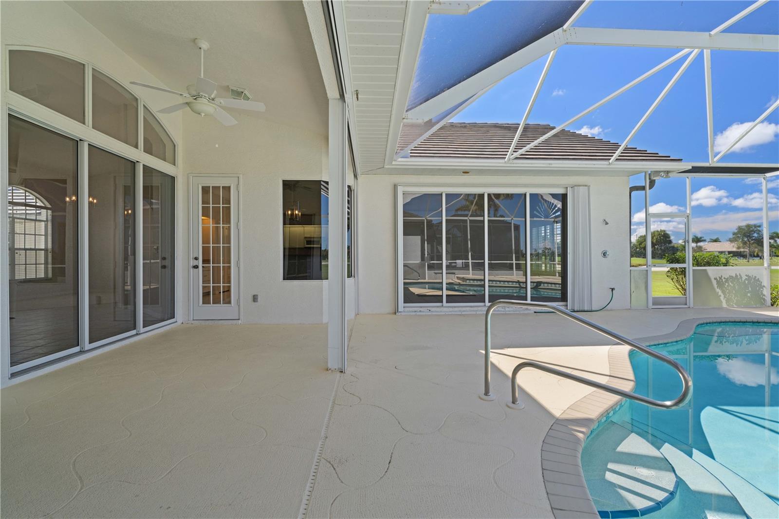 BURNT STORE ISLES POOL HOME W/IMPRESSIVE GOLF COURSE VIEW & **NEW ROOF** - Located along the 13th fairway at Twin Isles Country Club, this 3 bed/2 bath pool home in Burnt Store Isles delivers an open layout, NEW roof, and sweeping views of the golf course and lake behind the home. Designed for comfortable living and effortless entertaining, the home offers nearly 2,100 sq ft under air and an ideal blend of indoor-outdoor space. Step through the double door entry into a spacious, open floor plan that includes a formal living & formal dining room plus a separate family room. Architectural details include tile flooring throughout living room, family room & kitchen, arched doorways, soaring cathedral ceilings, arched transom windows, decorative plant/display shelves, & columns in dining room. The kitchen anchors the center of the home with ample cabinet and counter space, a built-in recipe desk, wraparound breakfast bar, and adjacent casual dining area. The living room, family room & master bedroom boast sliding glass doors that open to the lanai extending the living space outside. The owner's suite includes direct access to the lanai, two walk-in closets, and a spacious en-suite bath with dual vanities, a garden tub, and a tiled walk-in shower. The split-bedroom layout offers privacy, with two large guest bedrooms--each with a walk-in closet--and a full guest bath located off their own hallway. Outside, the screened lanai features a heated, in-ground pool, covered seating area, and an outdoor shower. From here, enjoy unobstructed views of the fairway and lake with plenty of space for grilling, dining, or lounging between rounds. The property is finished with mature tropical landscaping creating the feel of a private oasis. Additional features include an oversized two-car garage, security system, and a mix of hurricane protection including Kevlar screens, accordion shutters, roll-down panels, and Lexan covers. Burnt Store Isles is a deed-restricted waterfront and golf course community with an active social atmosphere. Optional membership at Twin Isles Country Club includes access to an 18-hole championship course, tennis courts, fitness center, and clubhouse dining. Just around the corner, Burnt Store Marketplace offers everyday essentials with Publix, Home Depot, and local restaurants. Miles of sidewalks connect you to area parks, bike paths, and scenic walking paths. Easy access to US41, I-75, and Burnt Store Road makes it convenient to reach Fort Myers, Sarasota, or Cape Coral. Don't miss your chance to enjoy Florida living with golf out back and shopping, boating, and dining just minutes away. Schedule your showing today.