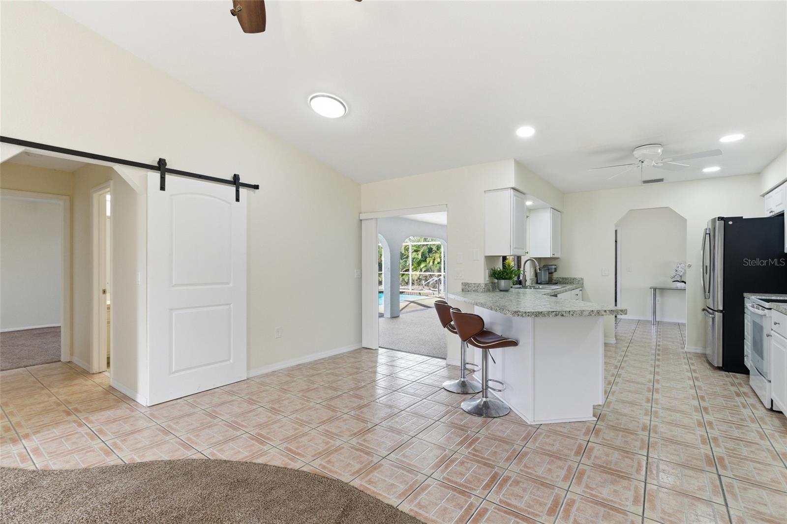 Welcome to this Charming Waterfront 3 Bedroom, 2 Bathroom, 2 Car Garage, pool home with a Family room, situated on an OVERSIZED CORNER LOT in Port Charlotte. NO HOA FEES & NO FLOOD REQUIRED! CLICK ON THE VIRTUAL TOUR LINK 1 FOR THE VIDEO AND VIRTUAL LINK 2 FOR THE 3D TOUR. Nestled along a freshwater canal with 103 feet of water frontage, this home offers a serene setting with plenty of potential. Step inside to find a spacious living room that seamlessly flows into the dining area, creating an inviting space for entertaining family and friends. The kitchen comes complete with all appliances, abundant countertop space, a convenient service window to the lanai, a breakfast bar, and a cozy dinette area. Adjacent to the kitchen, the family room expands the living and entertaining space, and features a glass slider leading out to the lanai. The master bedroom is generously sized and includes a walk-in closet and an en-suite bathroom with a walk-in shower and a single sink vanity. The guest bedrooms are thoughtfully arranged on a split floor plan, ensuring privacy, with walk-in closets and a shared bathroom nearby with lanai access. The covered lanai is the perfect spot to sip your morning coffee or unwind with an evening beverage, with plenty of room for entertaining. Enjoy a private screened pool with plenty of room for soaking up the sun from the pool deck. The large backyard is fully fenced and landscaped, providing plenty of room for gardening, outdoor activities, or expanding your entertainment space. Plus, you have access to the freshwater canal, perfect for fishing and enjoying the outdoors. 2023 ROOF - 2023 FASCIA/SOFFITT/GUTTERS - 2018 UPDATED ELECTRICAL PANEL - UPGRADED PEX WATER LINES - 2022 HOTWATER HEATER & SHUT OFF VALVES - - Conveniently close to US-41, 776 & I-75 for easy access to local favorites such as Fishermen's Village, Sun Seeker Resort, Ponce De Leon Park, shopping & boutiques, fine & casual dining, and LIVE entertainment. Schedule your showing TODAY!