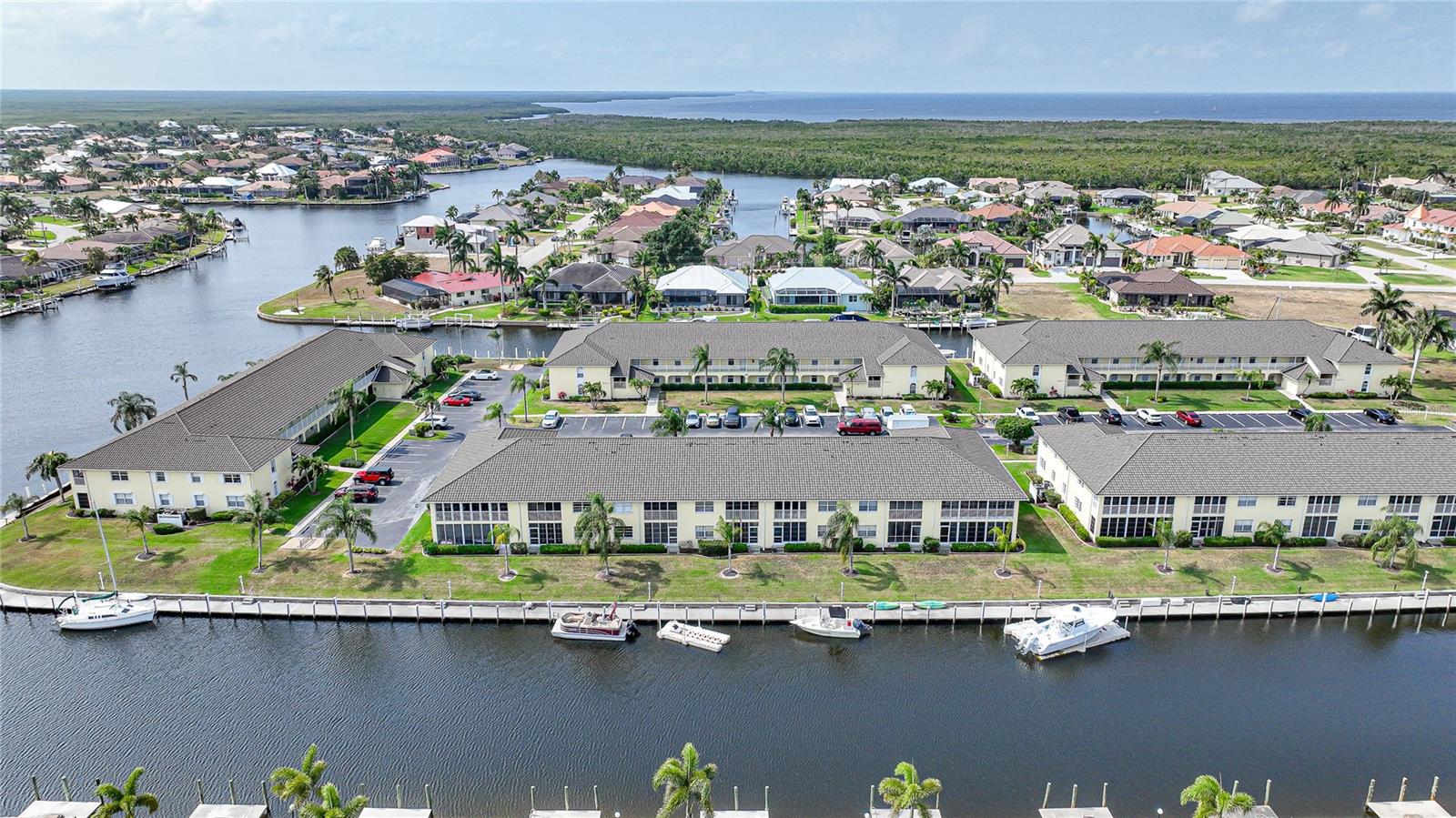 If you are looking for a TURNKEY FULLY FURNISHED, GROUND FLOOR condo residence located in a friendly and well established community, then Spinnaker Point is just what you have been seeking. RECENTLY PAINTED INSIDE WITH NEUTRAL COLORS. A wonderful community nestled in beautiful Punta Gorda Isles, surrounded by a network of City maintained canals and concrete seawalls leading to Charlotte Harbor and the Gulf of Mexico, where you can enjoy our beautiful weather, sailing, and fishing. Docks are available for boats up to 30 feet on a first come, first served basis for either your power boat or sailboat. Beautiful canal views from this first floor, recently painted with neutral colors condo that can be your winter retreat or an investment rental unit. The Kitchen is tiled and has granite counter tops and stainless appliances. The kitchen also has decorative back lit crown molding and there is a bistro table that is the perfect spot for enjoying your morning coffee. The recently carpeted dining room and great room combo, overlooks the canal and has access to the lanai through sliding glass doors. The screened in lanai also has a built in closet for storing your bicycles, fishing poles, coolers, beach chairs, etc. Simply walk out your back door and enjoy a brisk walk around the wrap around dock that encompasses the entire complex. The Primary Bedroom Suite has been remodeled with double quartz top sinks, King Size bed, tiled and glass door shower, and has an ample walk in closet. The guest bedroom is equipped with a Murphy bed and the guest bath has a tub and shower combo. A washer and dryer is conveniently located inside the unit. Spinnaker Point has 70 units with low monthly maintenance fees, New Roof, and nearly 1,500 feet of seawall, providing ample space and slips for resident boaters. In addition, a newly updated heated in-ground pool with pool house provides a relaxing area for swimming, and sun bathing. There is also a Tennis Court which can also be used as a Pickle Ball court, and Basketball net. St Andrews, a private golf course is located just across the street, and public courses are just a few minutes drive. Spinnaker Point is located within minutes to famous Fisherman's Village, Historic downtown Punta Gorda with numerous restaurants, shopping and activities, and major highways and airports. What are you waiting for? Let's do this! Come out and see this great unit!