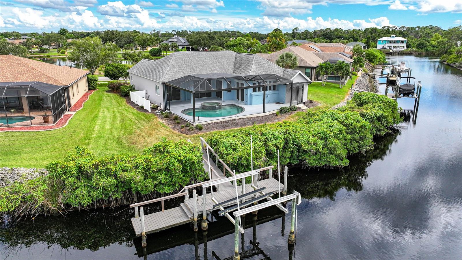 Welcome to this beautifully maintained waterfront retreat in the highly sought-after community of North Port. This 3-bedroom, 3-bathroom pool and spa home with a 2-car garage blends elegance, functionality, and the ultimate Florida lifestyle. From the moment you arrive, you'll notice the pride of ownership and attention to detail that set this property apart.Step inside to find a bright, open floor plan designed for both comfort and entertaining. The spacious living areas flow seamlessly, enhanced by expansive windows and sliding doors that bring in abundant natural light while offering breathtaking water views. The home's hurricane-rated windows and shutters, including an electric shutter on the back slider, provide peace of mind during storm season, while recent upgrades ensure modern convenience. A new hot water heater was installed in 2022, and the "picture screen" pool cage was completed in 2021, maximizing panoramic views of the water while creating the perfect setting for outdoor living.The gourmet kitchen anchors the heart of the home, offering ample storage and a welcoming space for preparing meals or gathering with family and friends. The private primary suite offers a serene retreat, complete with direct access to the lanai and pool area, while the additional bedrooms are generously sized and perfect for family or guests.Step outside to your own private oasis. The expansive lanai features a sparkling pool and spa, all set against the backdrop of wide canal views. With 152 feet of waterfront and a 7,500 lb. boat lift, this property is a boater's dream, providing direct access to the waterways and endless opportunities to explore Southwest Florida's coastline. Whether you're relaxing poolside, entertaining outdoors, or heading out on the boat, this home was designed for a luxury waterfront lifestyle.Situated in a desirable location, you'll enjoy the best of both worlds--quiet living with easy access to shopping, dining, golf, and the Gulf beaches. This home is not just a place to live, but a true Florida escape.Don't miss the opportunity to own this meticulously cared-for waterfront gem. Schedule your private showing today and experience the lifestyle you've been waiting for.