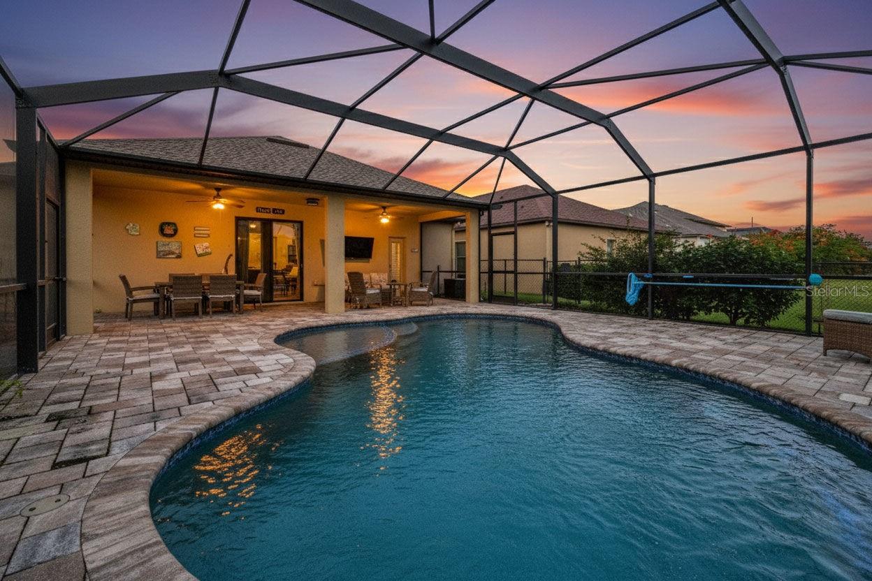 This charming 3-bedroom 2-bathroom, 2 car garage, salt water heated pool with a paver driveway is located in the gated community of River Club. This home has an open floor plan with a family room, living room and dining room that is perfect for entertaining. The large kitchen has wood cabinets, granite countertops, stainless appliances and a large pantry. The tiled kitchen is equipped with double built-in oven and with convection five burner cook top. Pull up your bar stools and sit at the kitchen counter and enjoy great dinner conversations. The primary bedroom is large enough to fit your king-sized bedroom set and has a walk-in closet. The on-suite bathroom has double sinks, tile shower and a nice soaking tub. The bathroom also has access to the lanai and pool area for easy access. This bathroom doubles as a pool bath. The two guest bedrooms are in a separate area of the home to allow you and your guests privacy. The guest bathroom is equipped with a shower/tub combo. The screened in custom designed lanai has pavers, a heated saltwater pool and has a covered area to keep you out of the sun where you can cool off and watch TV or read a good book while you're enjoying your favorite beverage. The yard is fenced in, so you don't have to worry about your fur babies playing in the yard. The laundry area is equipped with a GE Washer and Dryer. hurricane shutters, a new AC in 2025, and the roof was just installed in 2023 provide you peace of mind. Plus, this home is not located in a flood zone. Many features of the community include a resort style pool, fitness center, clubhouse, and playground. Conveniently located close to I-75 highway, Punta Gorda Airport, shops, restaurants, parks, marinas, downtown Punta Gorda and Sunseekers Resort. The HOA covers lawn care, basic cable, internet and irrigation. Come check out this maintenance free living community today and start living in the Florida lifestyle!