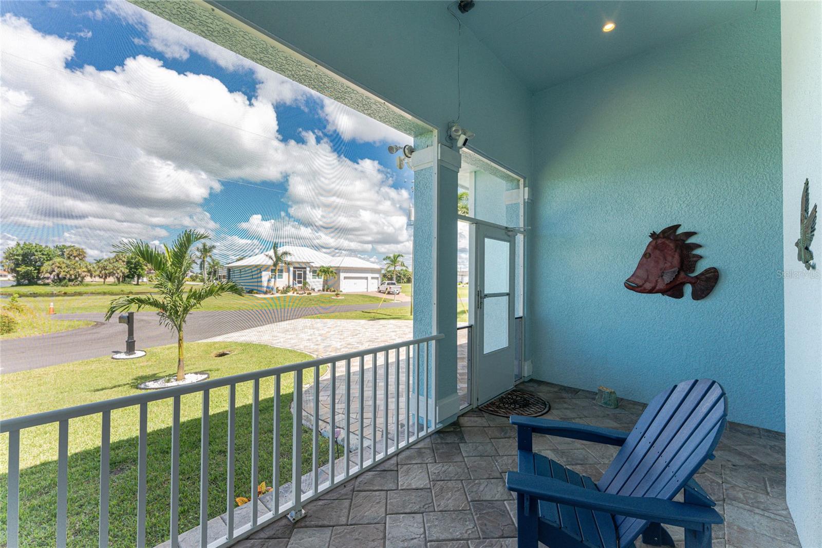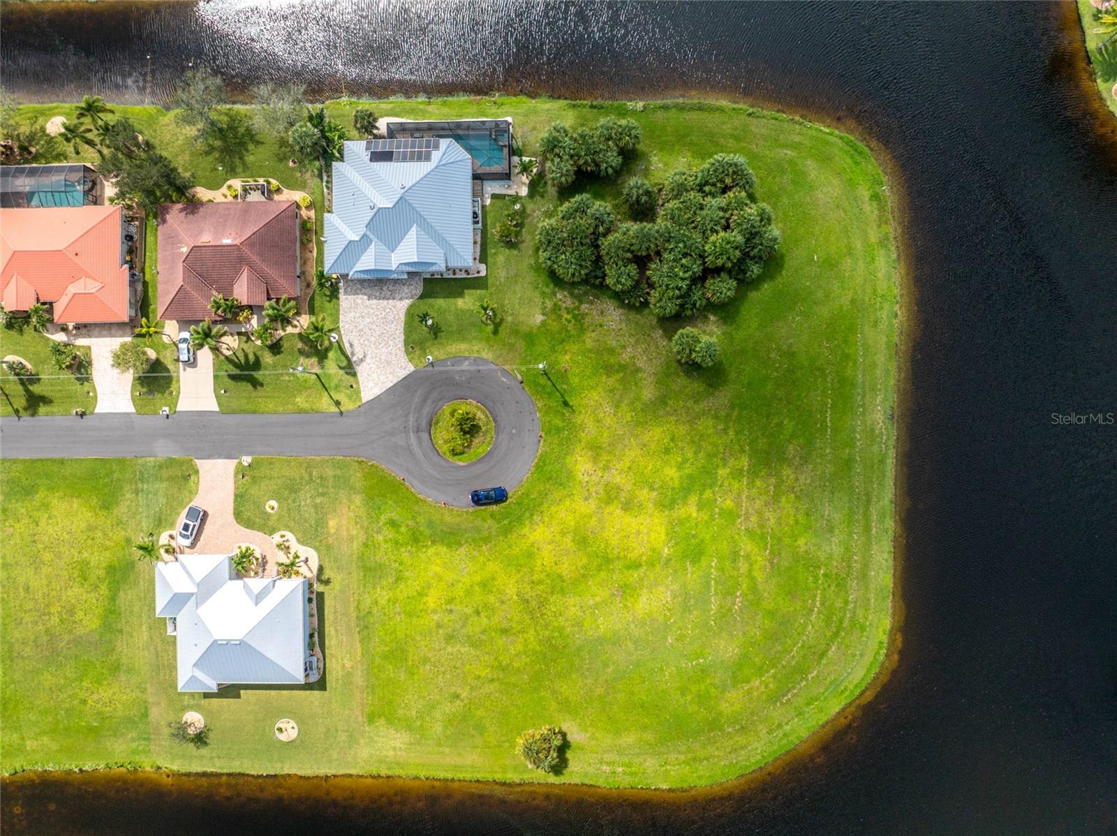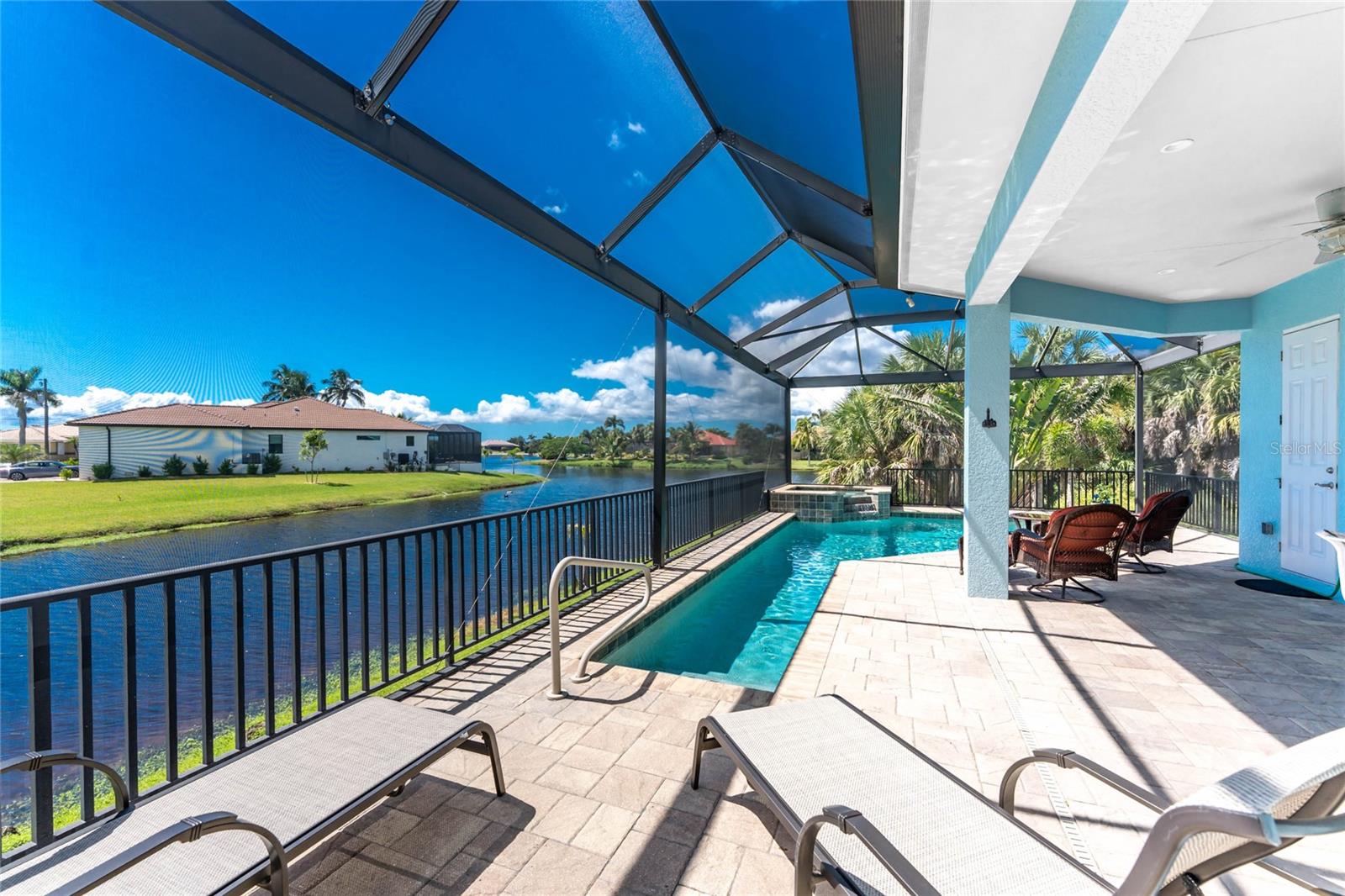 Stunning 2016 Key West-style 4BR home in Burnt Store Lakes with breathtaking Eagle Lake views. ENERGY SMART DESIGN featuring 18 solar panels, Snap Lock metal roof, and low power bills. Outdoor living shines with 105' of waterfront, heated saltwater pool, 3-tier waterfall spa, and panoramic screening. Inside boasts 10' ceilings, split floor plan, chef's kitchen with Samsung appliances, custom cabinetry, double oven, and surround sound. Primary suite offers spa-inspired bath and custom walk-in closet. Hurricane impact windows/doors and Tesla-compatible energy tracking system add peace of mind. Community amenities include park, kayak launch, and close access to Burnt Store Marina and downtown Punta Gorda.
