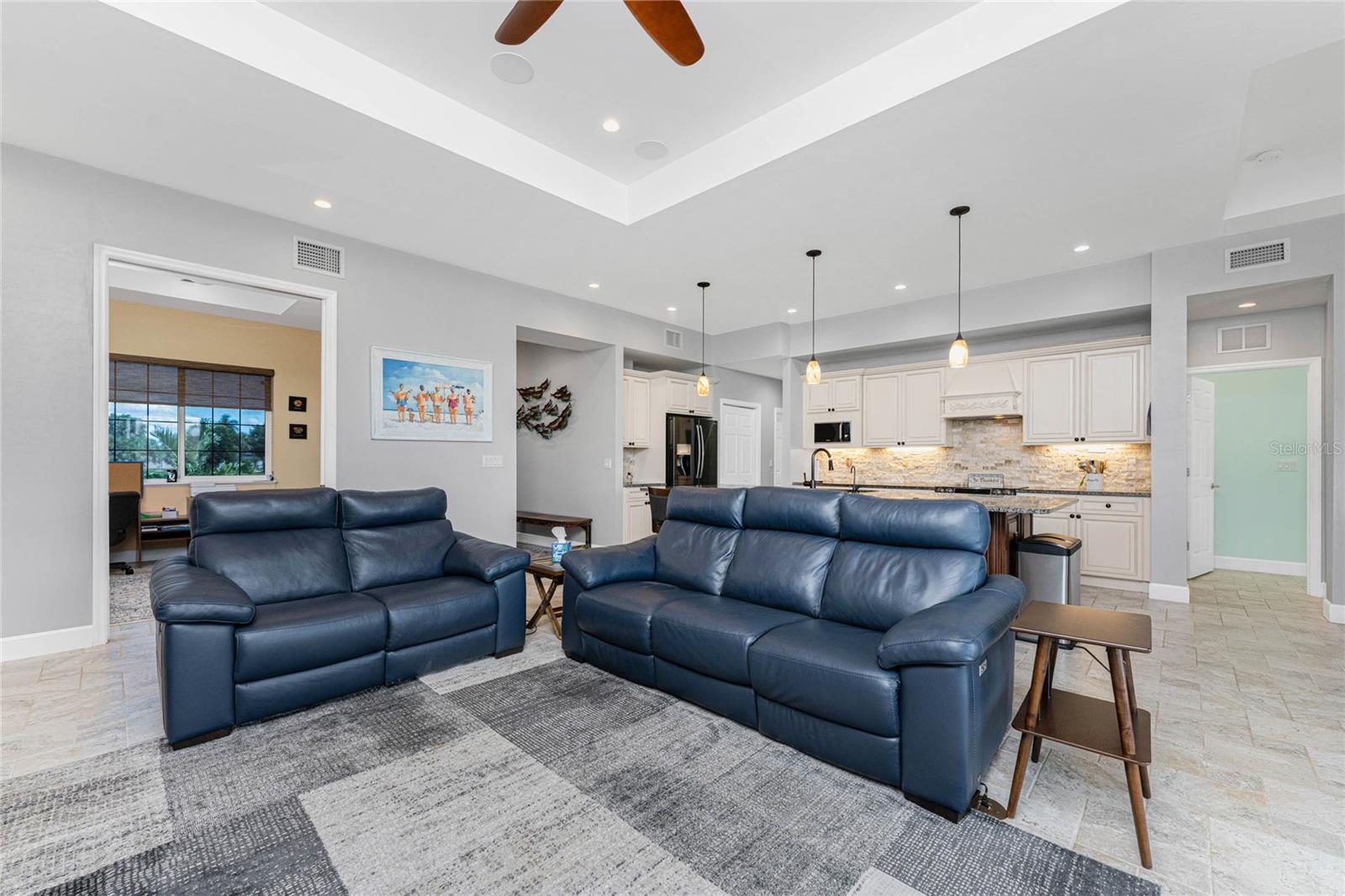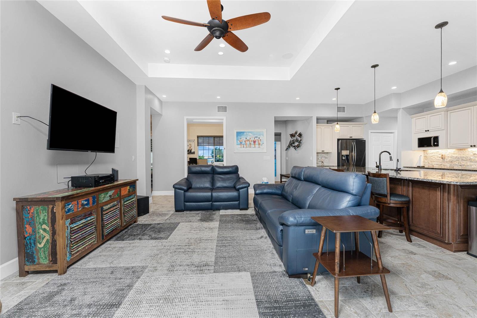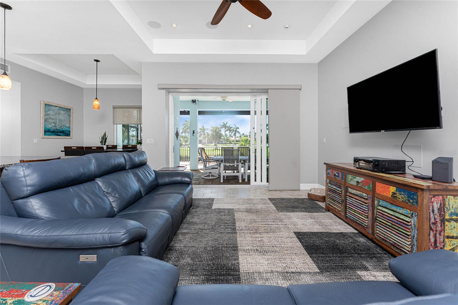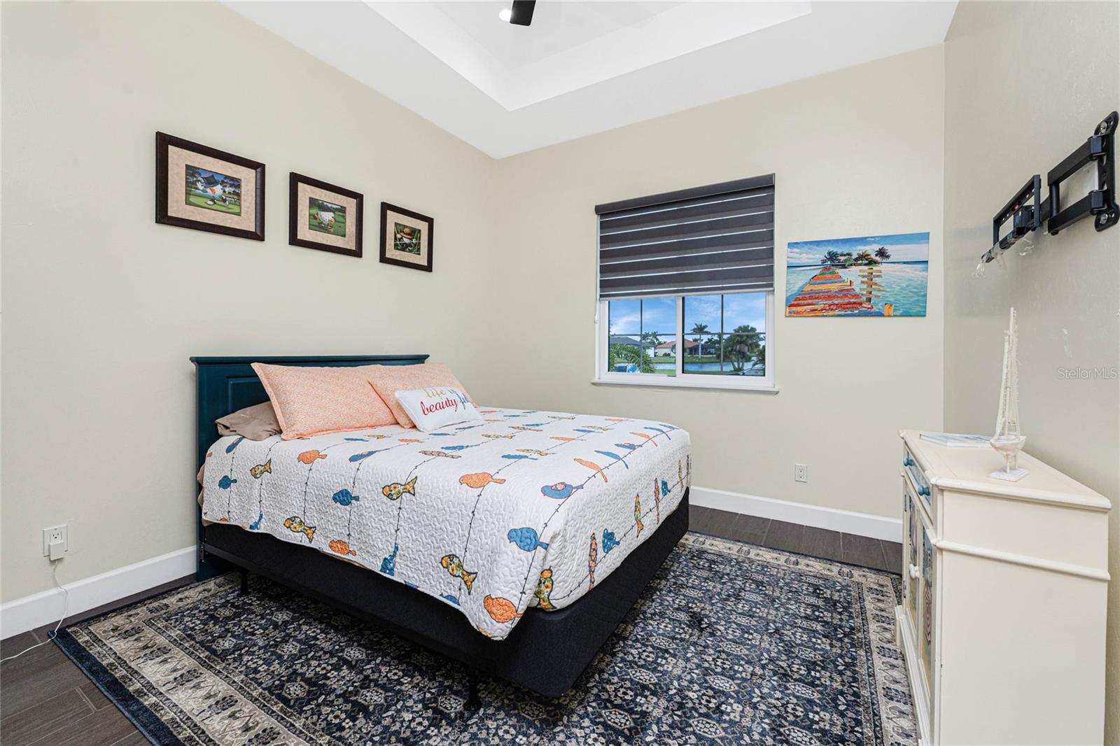 Stunning 2016 Key West-style 4BR home in Burnt Store Lakes with breathtaking Eagle Lake views. ENERGY SMART DESIGN featuring 18 solar panels, Snap Lock metal roof, and low power bills. Outdoor living shines with 105' of waterfront, heated saltwater pool, 3-tier waterfall spa, and panoramic screening. Inside boasts 10' ceilings, split floor plan, chef's kitchen with Samsung appliances, custom cabinetry, double oven, and surround sound. Primary suite offers spa-inspired bath and custom walk-in closet. Hurricane impact windows/doors and Tesla-compatible energy tracking system add peace of mind. Community amenities include park, kayak launch, and close access to Burnt Store Marina and downtown Punta Gorda.