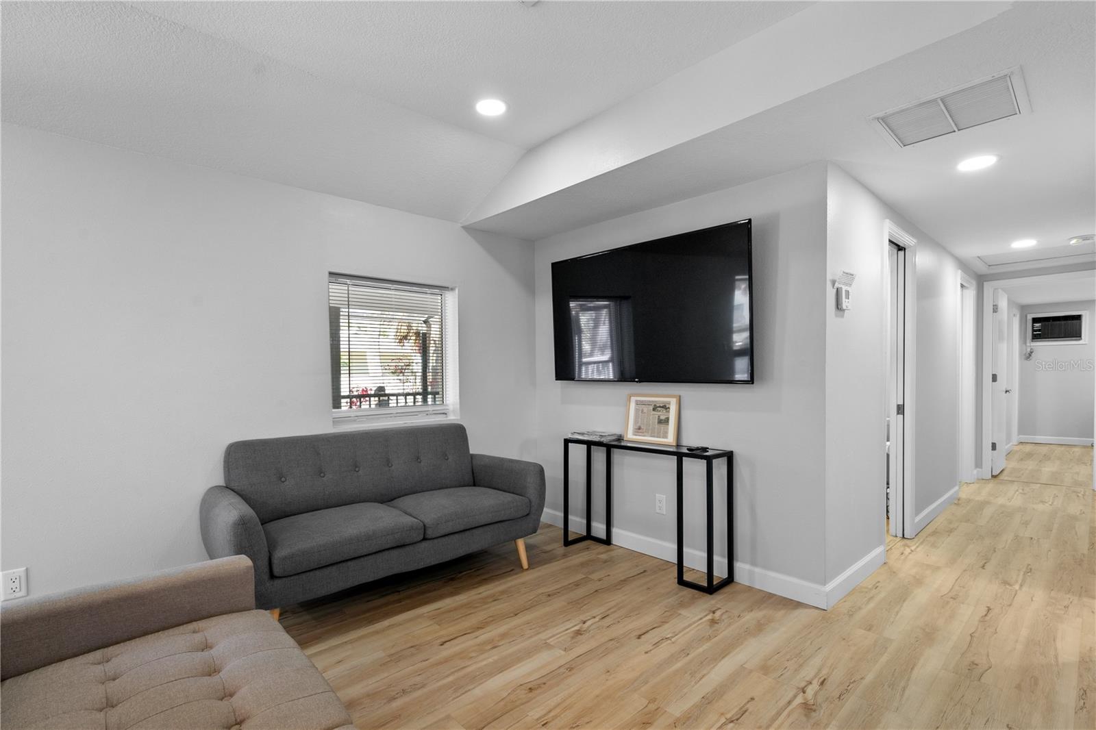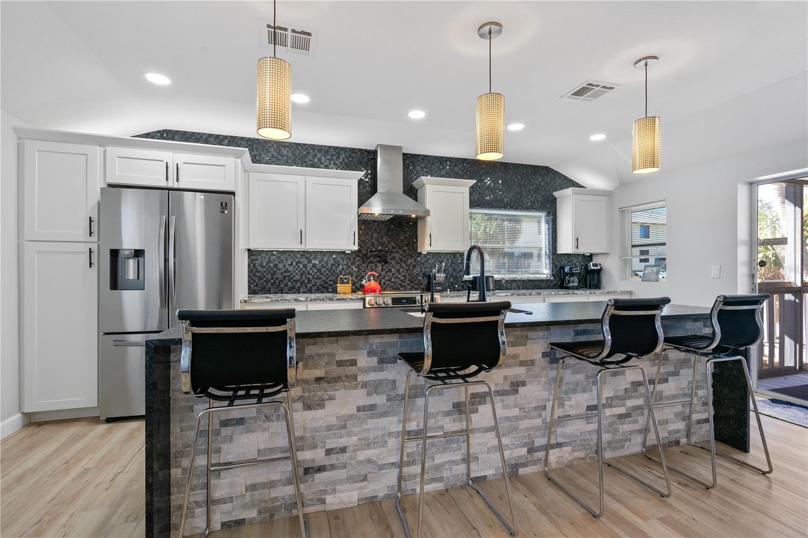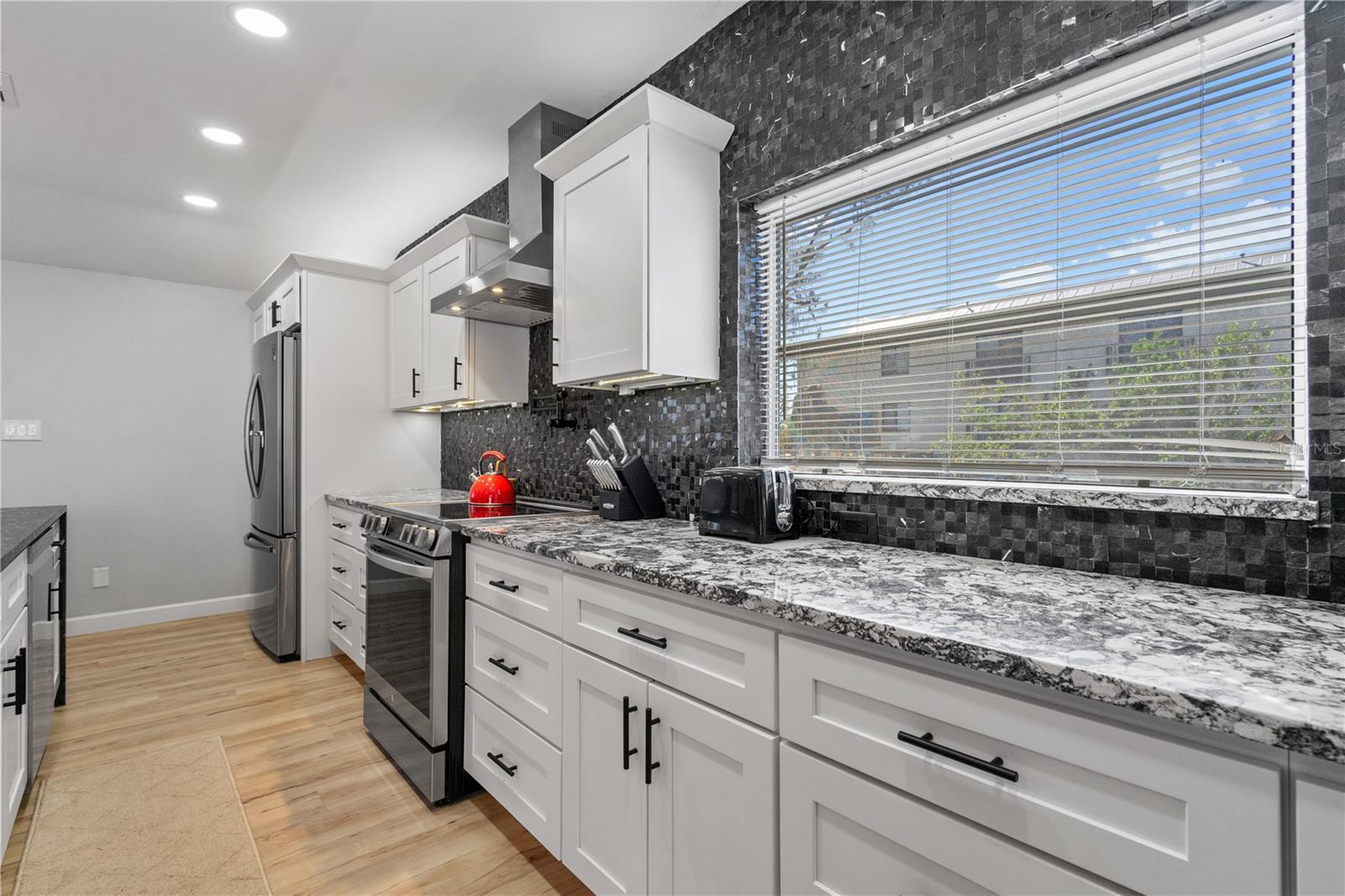 Welcome to 2476 N Beach Road. This completely reimagined home offers 3 bedrooms, 2 bathrooms, over 1,100 square feet, and a bright & open floor plan. Being sold TURNKEY FURNISHED & DECORATED, this property is the definition of move in ready. DEEDED BEACH ACCESS is also just steps away from the front door allowing unrestricted access. With numerous mechanical and building renovations which include a brand-new roof (2022), a complete replumb (2021), all new electric service and breaker panel (2021/2024), a new AC unit (2024), a new water heater (2024), and all new closed cell spray foam underneath the home, and so much more this property is extremely well maintained. Inside offers a stunning renovation completed in 2021 which includes all new luxury vinyl flooring throughout, a brand-new kitchen with solid wood soft close cabinets, leathered granite countertops with a waterfall edge, all new high end stainless steel appliances (2022), all new lighting & fixtures throughout, premium moldings throughout, and stunning bathrooms with custom tile work and glass shower enclosures. Off the living space is an expansive screened in lanai area with partial gulf views, a hammock, and tons of entertaining space. Under the home is a utility room and additional enclosed storage. Being raised with a finished floor elevation of 11.5 feet this home sustained ZERO INTERIOR FLOODING from Hurricanes Helene & Milton. An extremely RARE offering, you're situated within comfortable walking distance to numerous shops and restaurants, yet you're provided a level of privacy and exclusivity that's hard to find. With so much to offer, this one will move fast. Act now!
