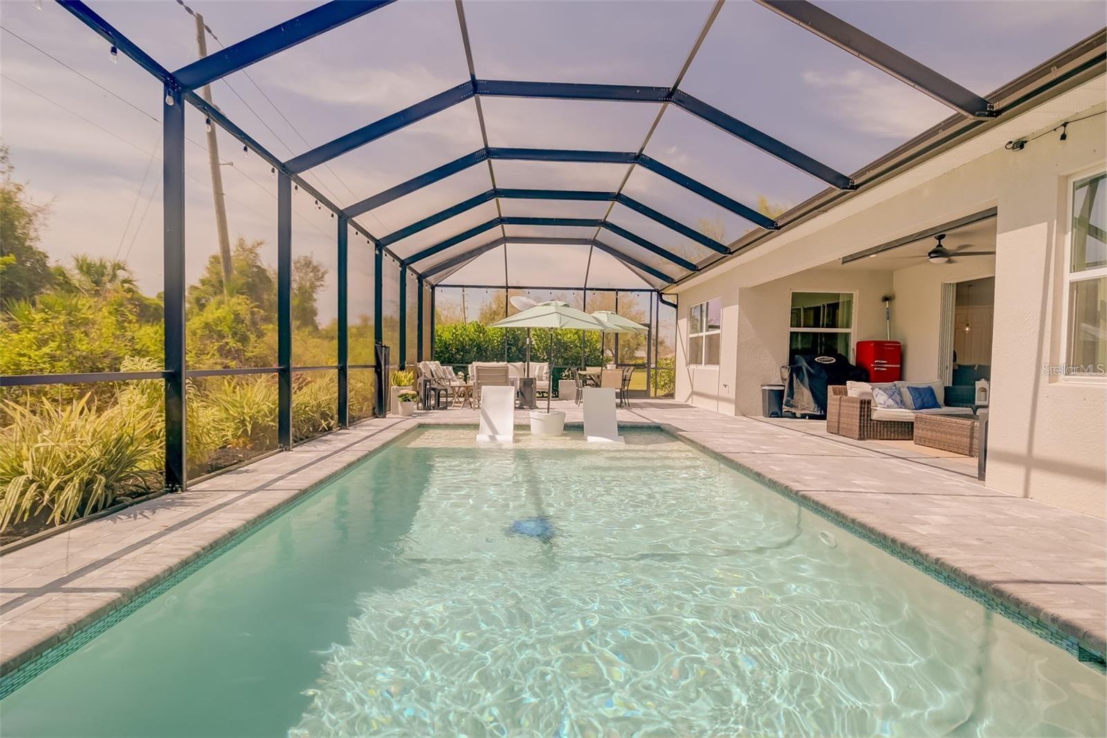 FURNISHED~~~~ 2021 built 4 bedroom, 2 bath home that shows like a dream! With its ample living space and eco-friendly features, it offers both comfort and sustainability. The 50~~SOLAR PANELS ARE AN OUSTANDING FEATURE promising to significantly reduce electric bills while promoting eco-conscious living. Step outside to the 1500 SQUARE FEET OF ADDITIONAL LANAI SPACE for entertaining and/or watching football by your CUSTOM BUILT, SALTWATER, SOLAR HEATED POOL with a Sundeck for added relaxation!!! The kitchen is a chef's delight with its walk-in pantry, extended cabinets, and custom backsplash, not to mention the under-cabinet mini fridge and a built in desk area. Did we mention an air conditioned garage to include a custom made MAN CAVE BAR!!!!!!!! The attention to detail continues outdoors with the lush lawn maintained by an irrigation system and the Halo 5 whole home water treatment ensuring pure water throughout. Overall, this home epitomizes luxury living with its thoughtful design, energy-efficient features, and outdoor tropical retreat. Located in Deep Creek with fast access to the interstate for an easy commute North or South.