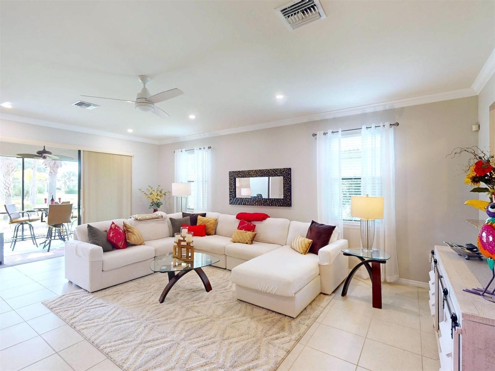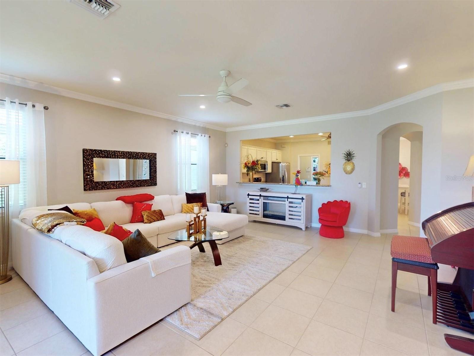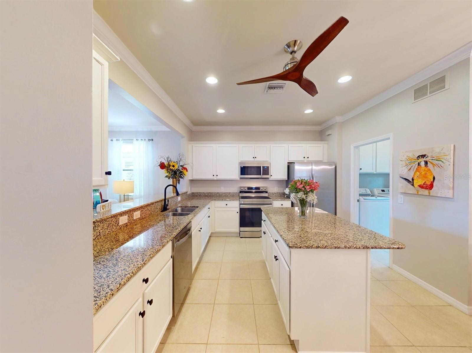 Welcome to your dream home!! Maintenance Free, Comfortable living at its best in the distinguished 55+ gated Community Del Webb of Cypress Falls. Step into this stunning, 2-bedroom, Den/Office, Dining Room, 2 bath single family home, with ALMOST 1,700 sq ft of living space! Large tile flooring, soaring ceilings and rounded archways throughout the home create an expansive and welcoming atmosphere, perfect for relaxing or hosting memorable gatherings. The heart of this home is the gourmet style kitchen that is a masterpiece of its own and is sure to please any chef! It was exquisitely designed by the Pulte design team w/ an upgraded stainless steel appliance package, captivating granite countertops & an abundance of white wood cabinets with crown molding above. The center island also provides additional seating as well as additional cabinets & drawers below. Right off the kitchen is a spacious dining room area, complimented by an elegant chandelier and a large window w/ plantation shutters. The interior laundry room, situated at the rear of the kitchen, is equipped with a Maytag washer and dryer, complemented by built-in cabinetry overhead. Adjacent to the appliances, there is an additional vanity featuring a full sink and built-in cabinets above and below for added storage. The pass-through breakfast bar, that overlooks the great room, is your cozy nook for sipping your morning espresso or indulging in late-night treats. Create your personal work oasis or leisure retreat in the spacious office/den, featuring recessed lighting, crown molding and a ceiling fan. The luxurious owner's suite is a private haven & features an oversized walk-in closet & a spa like en-suite bathroom w/ luxurious marble countertops on a dual sink vanity. Enjoy the large walk-in shower complemented by a frameless glass enclosure and a custom built in seat. A well-appointed guest bedroom & additional bathroom ensures comfort for visitors. Entertain or unwind on your pavered, screened in lanai where you can relax while taking in the tranquil mornings or breathtaking sunsets with a serene backyard water view. Other fabulous features include a newer a/c, hurricane shutters, crown molding throughout, plantation shutters, triple glass sliding doors, recessed lighting, upgraded fixtures, cabinet hardware and faucets. The oversized 2 car garage offers ample space for vehicles, storage & hobbies, complete w/ epoxy flooring for a polished finish. Say goodbye to mundane chores, as lawn care and irrigation are part of the community services here. The community is small enough to still have a small town feel, while large enough to have all the activities & amenities you'd love to enjoy in your retirement years including: a resistance pool, beach access pool, spa, pickle ball courts, bocce ball, billiard's, ping pong, horse shoes, library, internet caf; to the numerous clubs and classes, crafters, Bridge, poker, euchre, yoga, tai chi, water aerobics, dance club, mah jong & more. Community activities also include Bingo, parties & professional entertainment. Active individuals & enthusiasts will revel in the community's tennis courts, while the 55+ community aspect ensures a neighborly vibe with plenty of engaging activities for the mature homeowner. This is more than just a home--it's a retreat for those who seek a life of leisure & beauty by the water's edge. WELCOME HOME to Cypress Falls, where blissful retirement living meets unparalleled comfort & style!