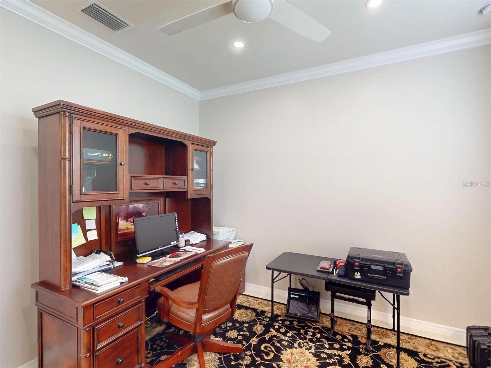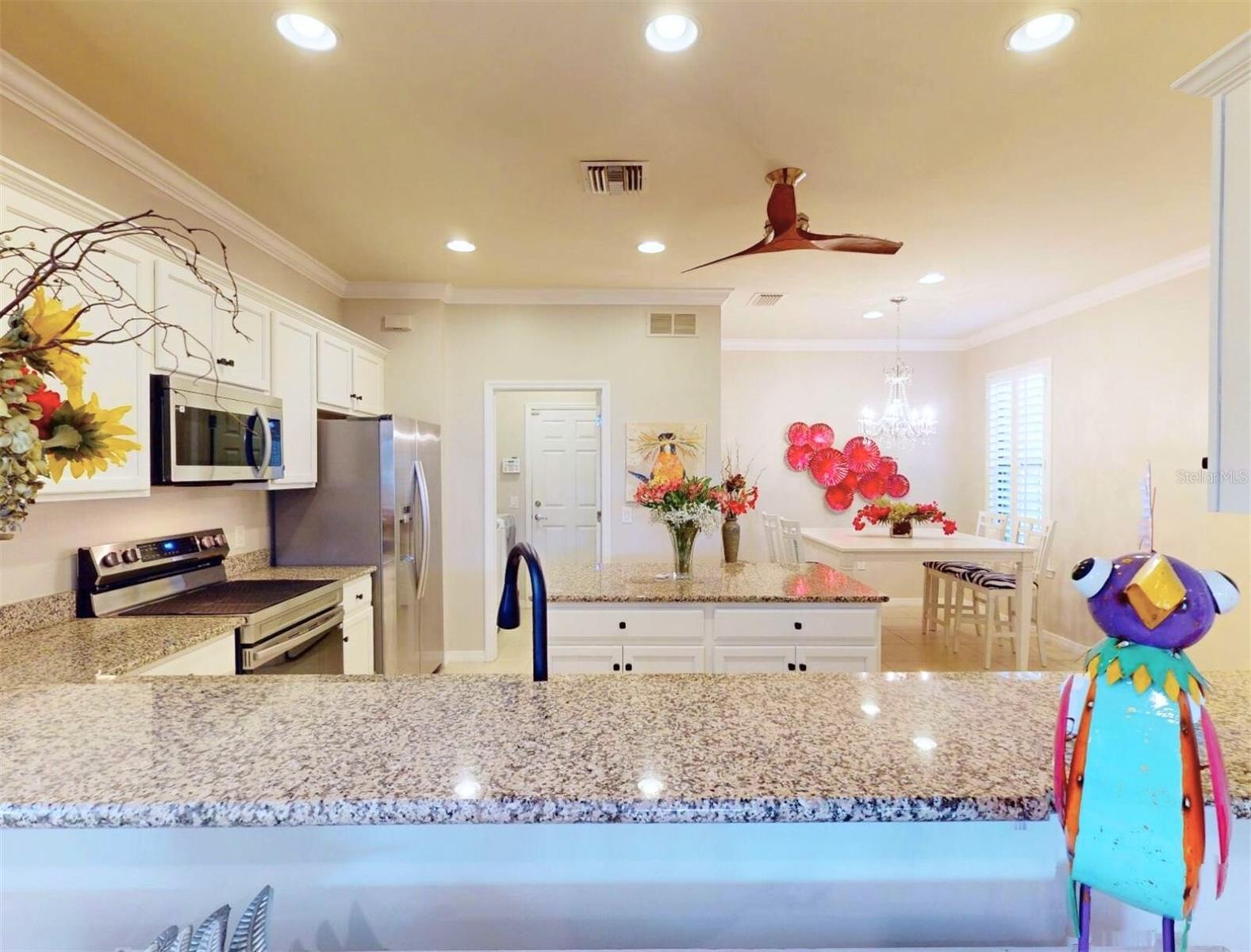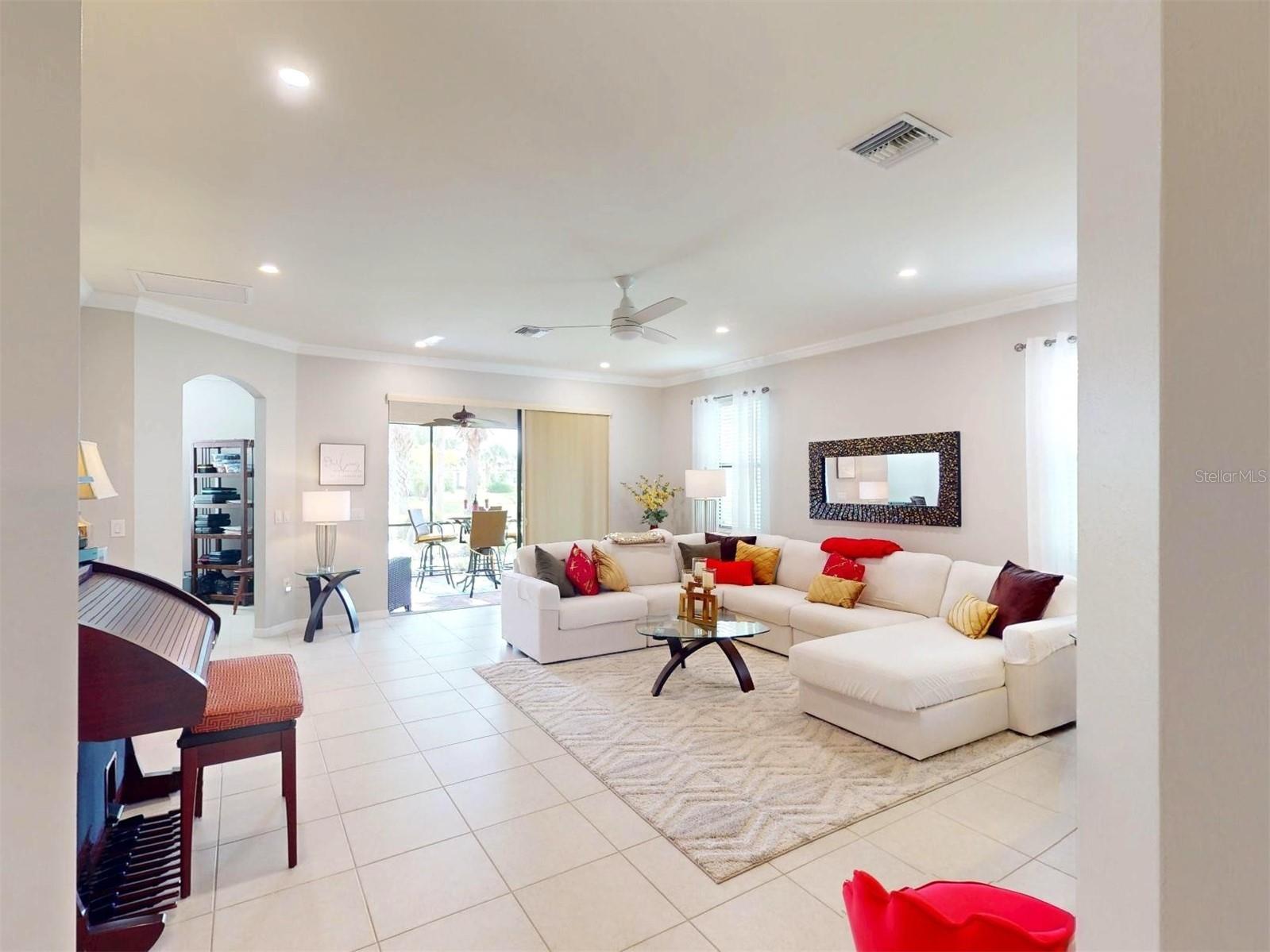 Welcome to your dream home!! Maintenance Free, Comfortable living at its best in the distinguished 55+ gated Community Del Webb of Cypress Falls. Step into this stunning, 2-bedroom, Den/Office, Dining Room, 2 bath single family home, with ALMOST 1,700 sq ft of living space! Large tile flooring, soaring ceilings and rounded archways throughout the home create an expansive and welcoming atmosphere, perfect for relaxing or hosting memorable gatherings. The heart of this home is the gourmet style kitchen that is a masterpiece of its own and is sure to please any chef! It was exquisitely designed by the Pulte design team w/ an upgraded stainless steel appliance package, captivating granite countertops & an abundance of white wood cabinets with crown molding above. The center island also provides additional seating as well as additional cabinets & drawers below. Right off the kitchen is a spacious dining room area, complimented by an elegant chandelier and a large window w/ plantation shutters. The interior laundry room, situated at the rear of the kitchen, is equipped with a Maytag washer and dryer, complemented by built-in cabinetry overhead. Adjacent to the appliances, there is an additional vanity featuring a full sink and built-in cabinets above and below for added storage. The pass-through breakfast bar, that overlooks the great room, is your cozy nook for sipping your morning espresso or indulging in late-night treats. Create your personal work oasis or leisure retreat in the spacious office/den, featuring recessed lighting, crown molding and a ceiling fan. The luxurious owner's suite is a private haven & features an oversized walk-in closet & a spa like en-suite bathroom w/ luxurious marble countertops on a dual sink vanity. Enjoy the large walk-in shower complemented by a frameless glass enclosure and a custom built in seat. A well-appointed guest bedroom & additional bathroom ensures comfort for visitors. Entertain or unwind on your pavered, screened in lanai where you can relax while taking in the tranquil mornings or breathtaking sunsets with a serene backyard water view. Other fabulous features include a newer a/c, hurricane shutters, crown molding throughout, plantation shutters, triple glass sliding doors, recessed lighting, upgraded fixtures, cabinet hardware and faucets. The oversized 2 car garage offers ample space for vehicles, storage & hobbies, complete w/ epoxy flooring for a polished finish. Say goodbye to mundane chores, as lawn care and irrigation are part of the community services here. The community is small enough to still have a small town feel, while large enough to have all the activities & amenities you'd love to enjoy in your retirement years including: a resistance pool, beach access pool, spa, pickle ball courts, bocce ball, billiard's, ping pong, horse shoes, library, internet caf; to the numerous clubs and classes, crafters, Bridge, poker, euchre, yoga, tai chi, water aerobics, dance club, mah jong & more. Community activities also include Bingo, parties & professional entertainment. Active individuals & enthusiasts will revel in the community's tennis courts, while the 55+ community aspect ensures a neighborly vibe with plenty of engaging activities for the mature homeowner. This is more than just a home--it's a retreat for those who seek a life of leisure & beauty by the water's edge. WELCOME HOME to Cypress Falls, where blissful retirement living meets unparalleled comfort & style!