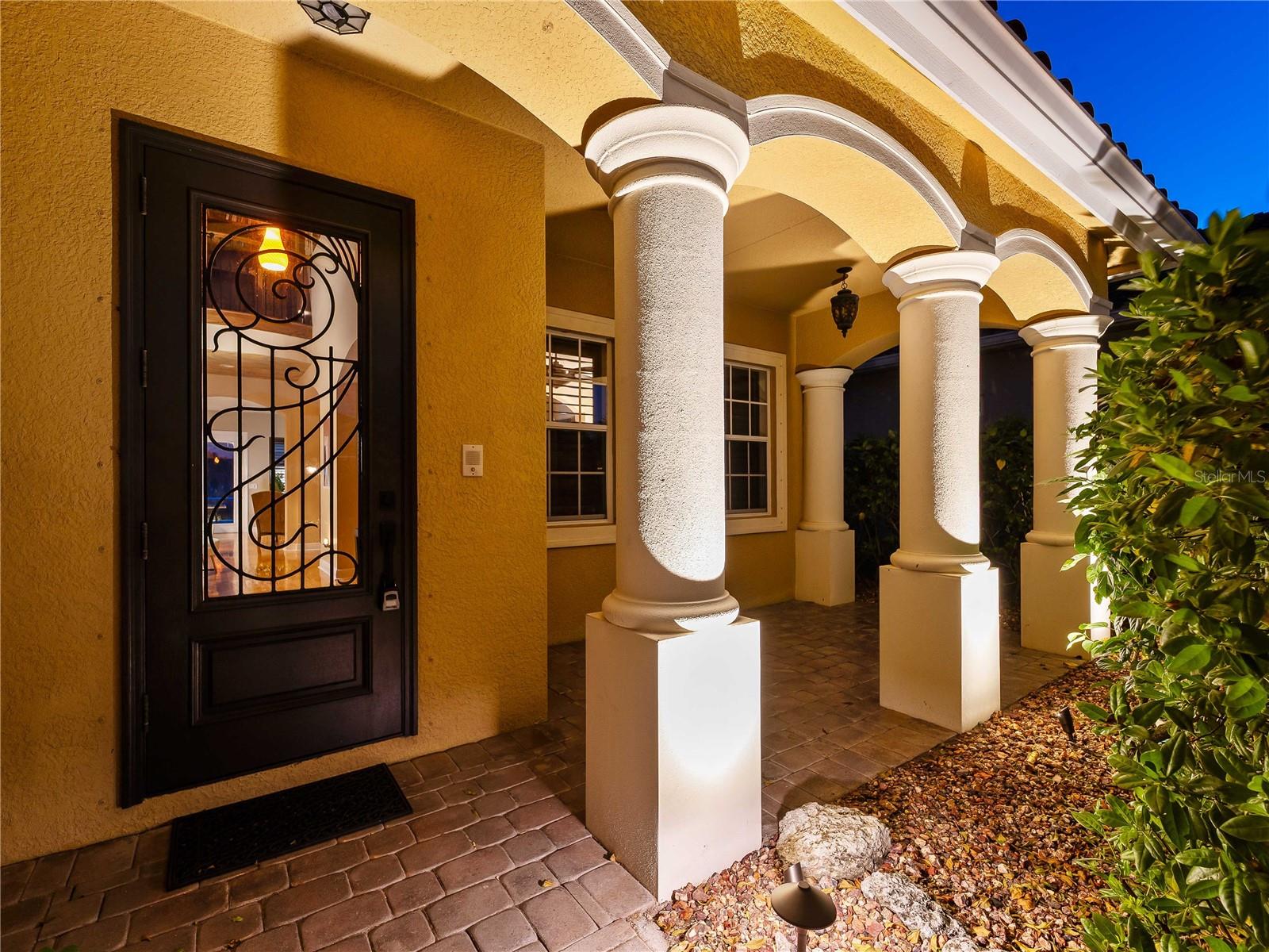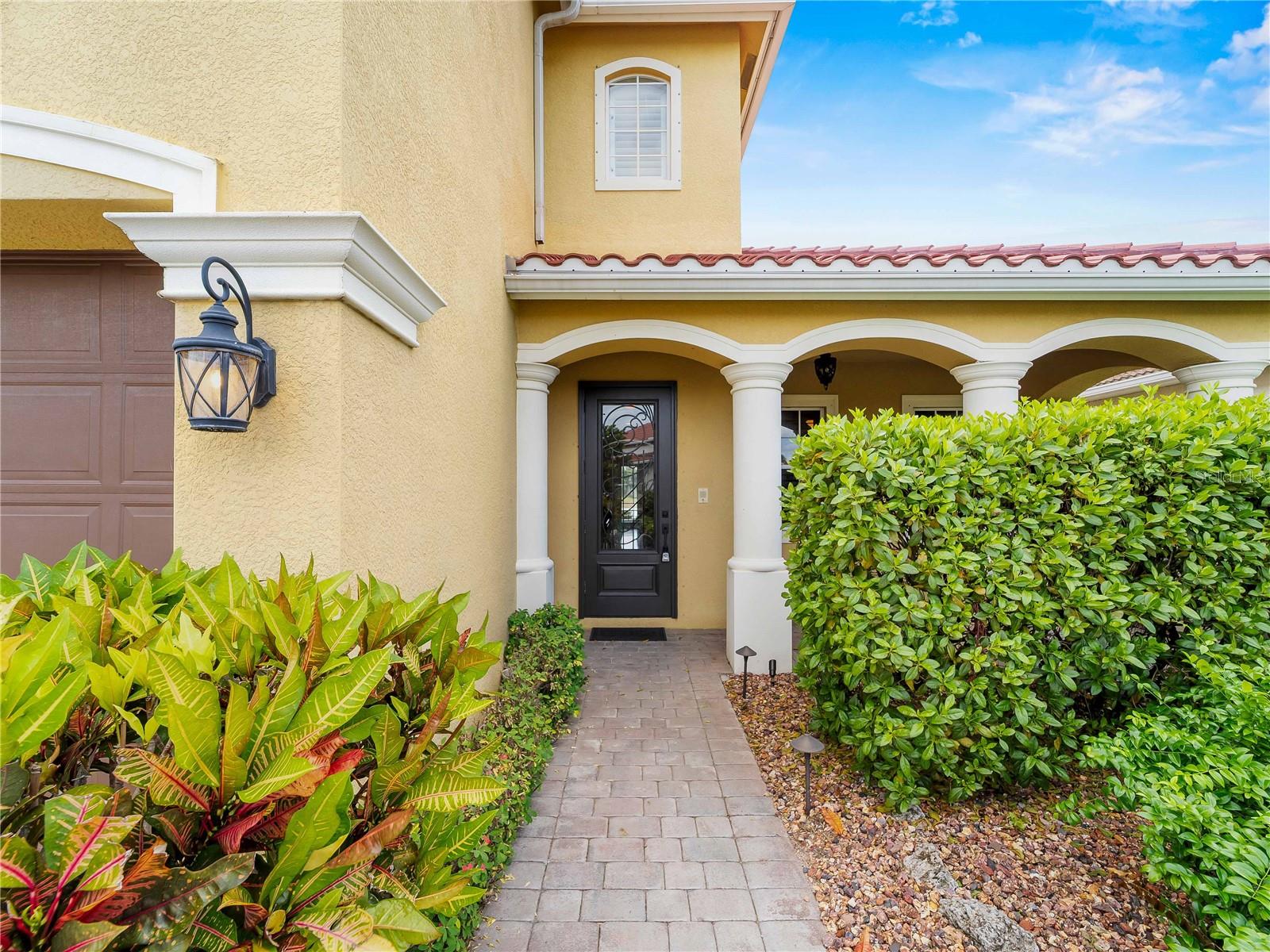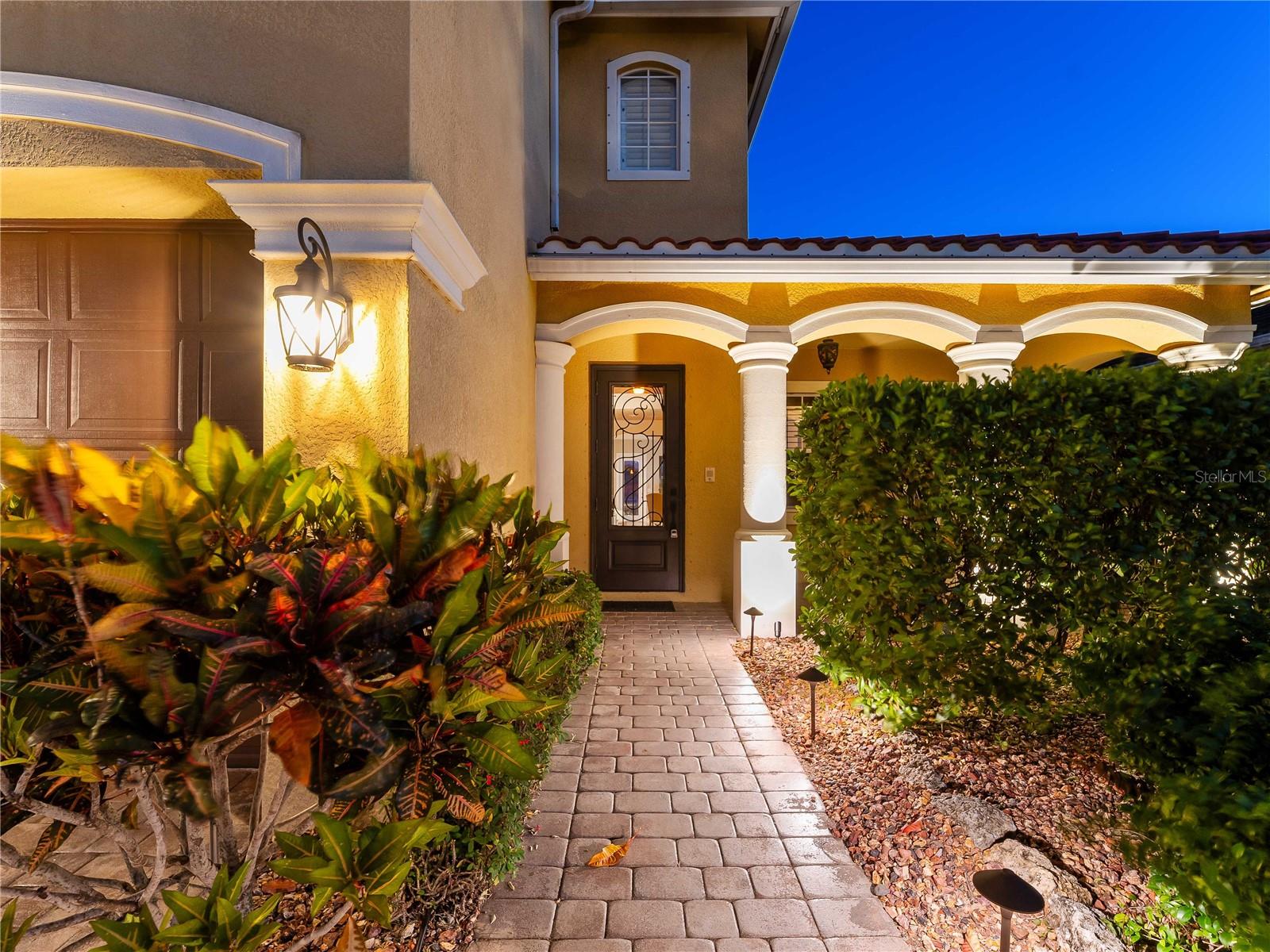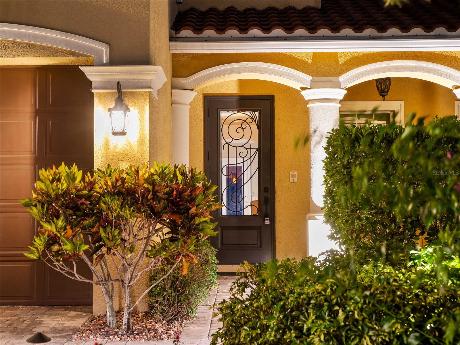 Exterior: Hurricane Shutters, Lighting, Sidewalk, Sliding Doors