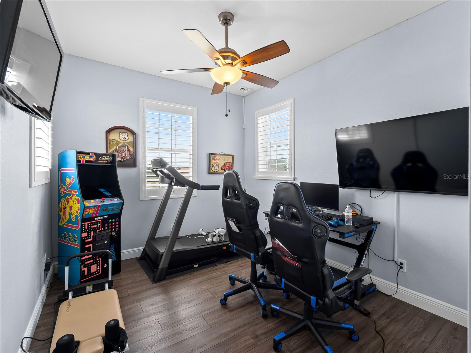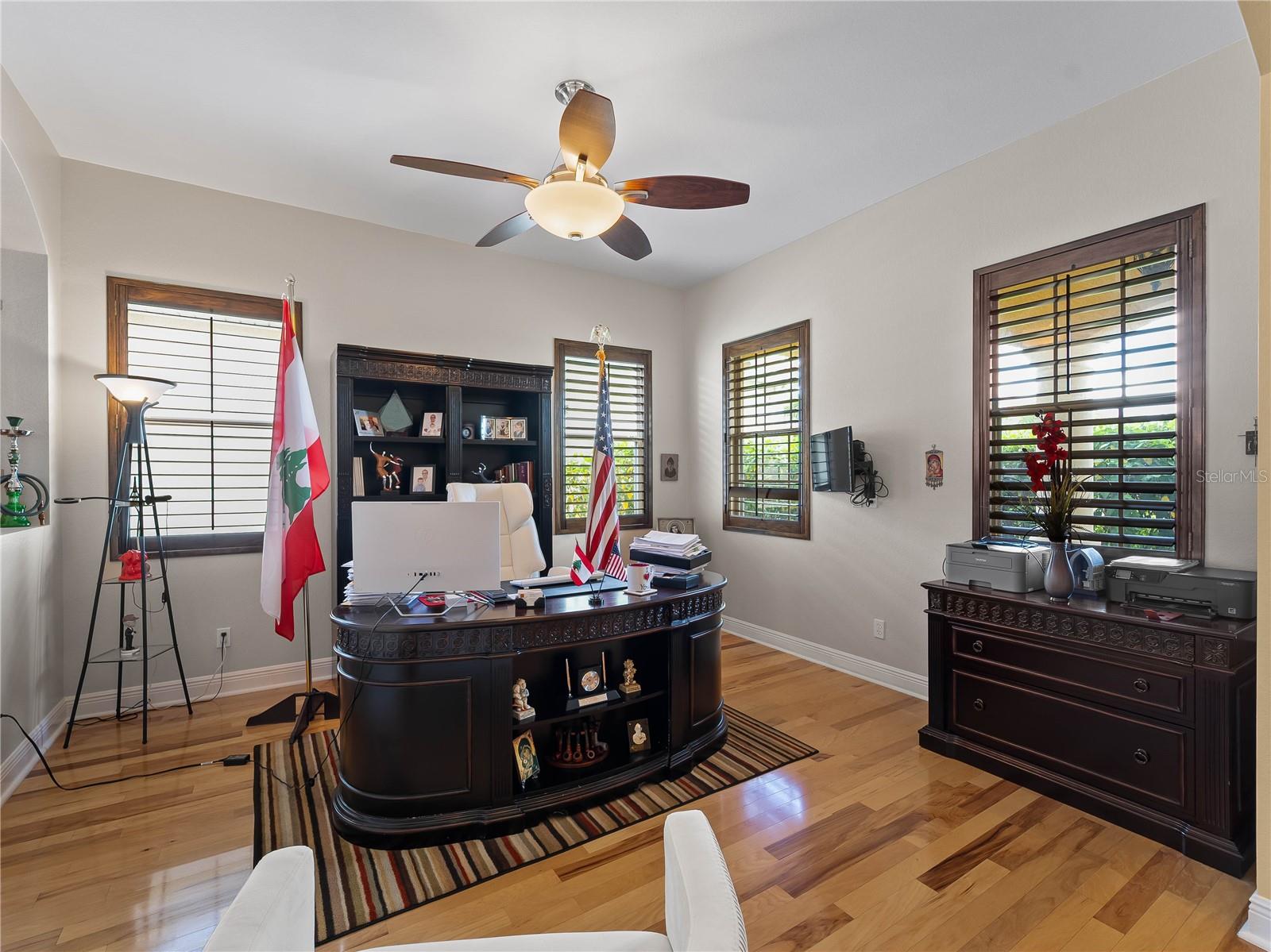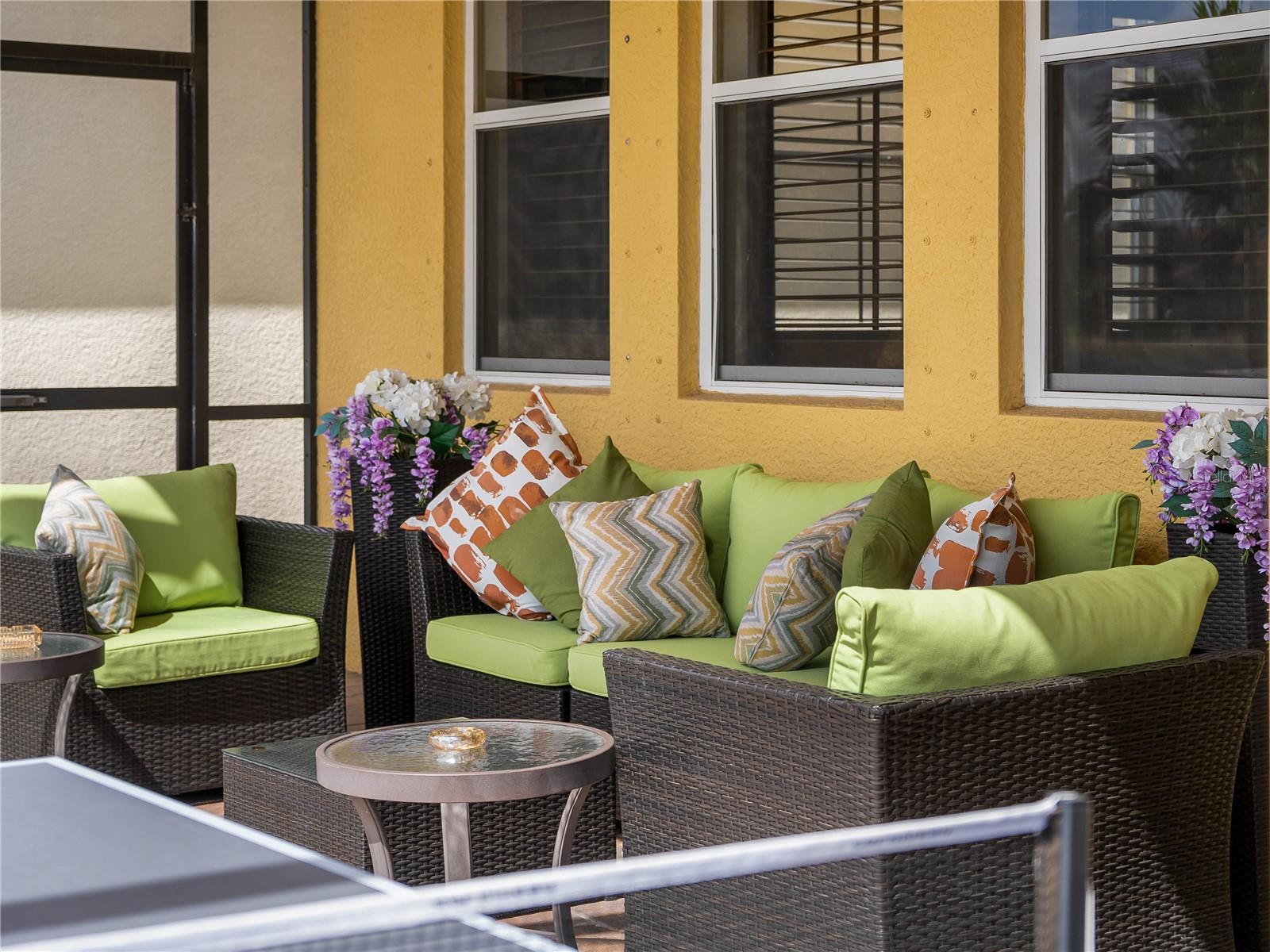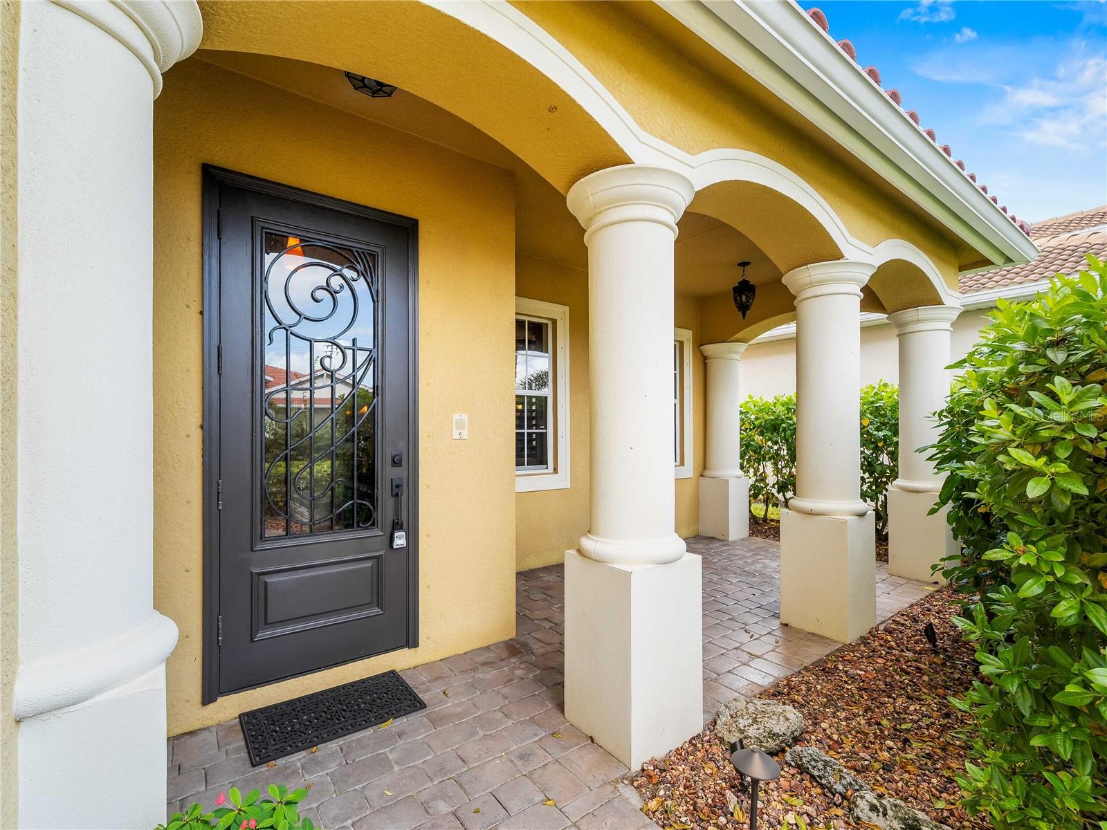Exterior: Hurricane Shutters, Lighting, Sidewalk, Sliding Doors