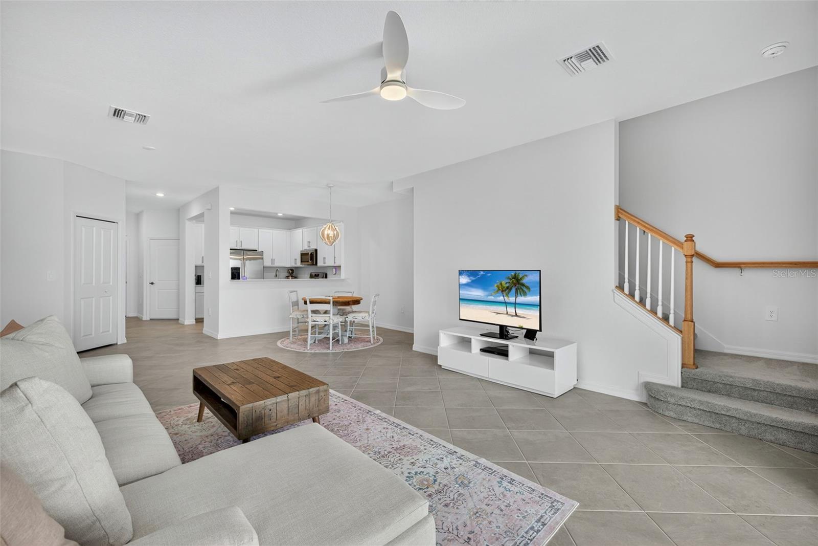 One or more photo(s) has been virtually staged. Why wait for new construction when you can have move-in ready? This townhome is located directly across from the amenities, making the location hard to beat! In addition, FEMA flood insurance isn't required in this neighborhood! This layout is known as the "Berkley". This model gives you 3 bedrooms, 2 full bathrooms, 1 half bath, just over 1,900 square feet of living space and a 1-car garage. Walking up to the front door, you will notice the home is already equipped w/ a keyless entry pad & security camera. Step inside and into the foyer, featuring a half bathroom & convenient storage closet. Your open-concept and spacious first floor is where you have the adjoining living & dining areas. These areas are lined with tile flooring & filled with natural light. Your kitchen has solid surface countertops, stainless steel appliances, a single-bowl sink, and white shaker cabinets. The versatile breakfast bar offers the perfect spot for casual dining or enjoying a morning beverage. Walking through the living room and outside is where you'll find your fenced in lanai, providing ample privacy and even has extra outdoor storage. There's also a closet area under the stairs which makes an ideal space for even more storage. Upstairs, the carpeted second floor features a large primary suite with dual closets, spacious sitting area and an ensuite bathroom that has granite countertops, dual sinks and a glass-enclosed walk-in shower. Across the hall, you have the additional 2 bedrooms, guest bathroom and your laundry closet. The laundry area has a washer, dryer, and shelving. The seller has also added ceiling fans, a whole house surge protector and epoxied the garage floor. Within the community, you have an array of amenities at your fingertips. Those include an aquatic theme park with a lazy river and water slides, a luau beach, multiple pools, parks, restaurants, multiple sports courts, a fitness center, a putt putt course, a kayak launch, an arcade and more! Babcock Ranch even has it's own A-rated public school system which includes Babcock Neighborhood School (BNS) (K-8) and Babcock High School (BHS) (9-12). In addition, there's Founder's Square within Babcock Ranch, which hosts food trucks with entertainment, markets, music, etc. Living at Babcock means more than just residing--it's a vibrant lifestyle. Your neighbors are waiting! Come check out what the Tuckers Cove lifestyle is all about!