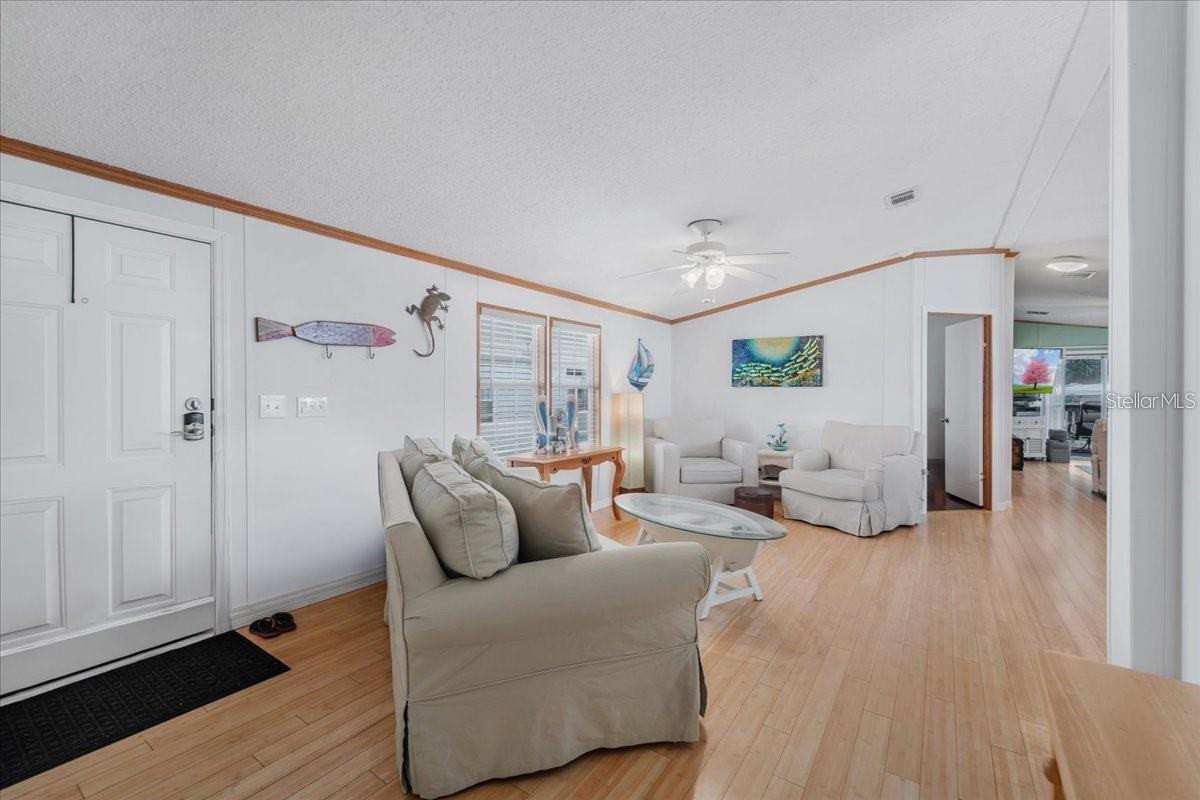 WATERFRONT-LAND OWNERSHIP-NO LOT RENT Don't miss this rare opportunity to own a beautifully maintained 3 bedroom, 2-bath home in Pelican Harbor Mobile Home Estates, one of the area's most desirable 55+ waterfront communities. Perfect for boating, kayaking, and fishing enthusiasts, this property delivers the ultimate blend of comfort, convenience, and coastal lifestyle. Inside, you'll find a spacious split floor plan filled with natural light. The primary suite features a walk-in closet and ensuite bath with dual sinks, soaking tub, and separate shower. The bright, open kitchen offers ceramic tile flooring, an eat-in bar, and abundant cabinet space. A dedicated laundry room adds everyday convenience. The bonus room expands your living area with sliders that open to a massive deck overlooking the water--a perfect spot for entertaining or simply enjoying the view. Upgrades include a metal roof, new spray foam insulation underneath, and newer A/C for improved energy efficiency. Enjoy the expansive open porch--ideal for relaxing or entertaining--along with your private dock, boat lift, and seawall for effortless waterfront access. Additional features include a new 48x16 covered carport with electrical. Community Amenities: Heated pool and clubhouse, shuffleboard, horseshoes, bocce ball, designated RV/trailer/boat storage, and inclusive water, sewer, and trash services. Ideally located near shopping, golf courses, entertainment, and top-rated dining--and just an hour to the world-famous Siesta Key Beach--this home offers both a serene retreat and an active waterfront lifestyle. Schedule your private showing today and experience the best of Florida living!