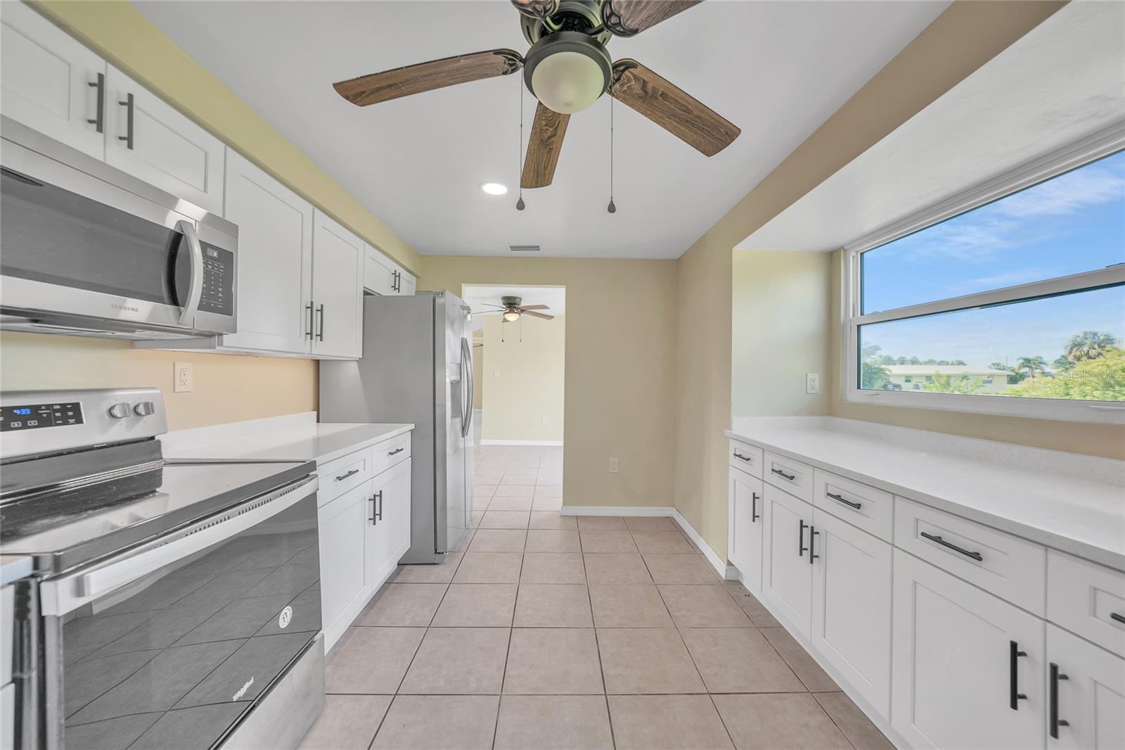 BACK ON THE MARKET - FINANCING FELL THROUGH. Discover Your New Home in Sunny Port Charlotte! Completely renovated and move-in ready -- this home needs absolutely nothing. This beautifully remodeled 2-bedroom, 2-bathroom home with an attached garage offers 1,200 sq. ft. of air-conditioned living space, blending modern comfort with timeless style. Originally built in 1979, the home has undergone a comprehensive residential remodel, including new insulation, drywall, fresh interior and exterior paint, replaced soffits, new trim, and energy-efficient windows. Electrical upgrades include a full service change with a replaced mast, meter, and panel, ensuring safe, reliable power for years to come. Featuring a highly desirable split floor plan, this home also boasts a new roof (2023), impact-rated hurricane windows (2024), and a brand-new AC system for year-round comfort. Situated on an oversized corner lot, the property provides ample space, additional driveway parking, and an RV electrical hookup. As you step inside, you're greeted by an open living and dining area with tiled floors, fresh interior paint, recessed lighting, and sliders that open to the inviting patio -- creating a bright, airy space perfect for relaxing or entertaining. The bright, stylish kitchen is a standout, featuring sleek quartz countertops, solid wood shaker-style cabinets, and modern black hardware that deliver both elegance and functionality. Large windows flood the space with natural light, highlighting the spacious wraparound layout and abundant counter space -- perfect for meal prep or entertaining. Stainless steel appliances and neutral tile flooring complete this move-in-ready kitchen designed for both style and practicality. The primary suite features a spacious double-door closet and an updated ensuite bath with a single vessel sink atop a striking granite countertop vanity offering ample storage. A dramatic walk-in shower, adorned with large subway tiles, is highlighted by frameless sliding glass doors for a modern, elegant touch. The guest bedroom is generously sized, with a built-in closet and is conveniently located near the updated full bathroom. Additional features include epoxy-finished garage floors and a laundry area conveniently located in the garage for added functionality. The expansive backyard includes a concrete slab -- perfect for adding a lanai, pool, or outdoor living area in the future. Every detail of this home reflects thoughtful craftsmanship and modern upgrades, making it a truly move-in-ready gem. Move-in ready and thoughtfully updated, this home is ideal for modern living and effortless entertaining. Located in a quiet, established neighborhood, this home is just minutes from Port Charlotte Beach Park, where you'll find a public beach, boat ramp, picnic areas, tennis courts, and more. Enjoy easy access to US-41, I-75, shopping, dining, hospitals, and top-rated local parks and beaches. **PLEASE ENJOY THE 3D INTERACTIVE VIRTUAL TOUR ASSOCIATED WITH THIS LISTING**