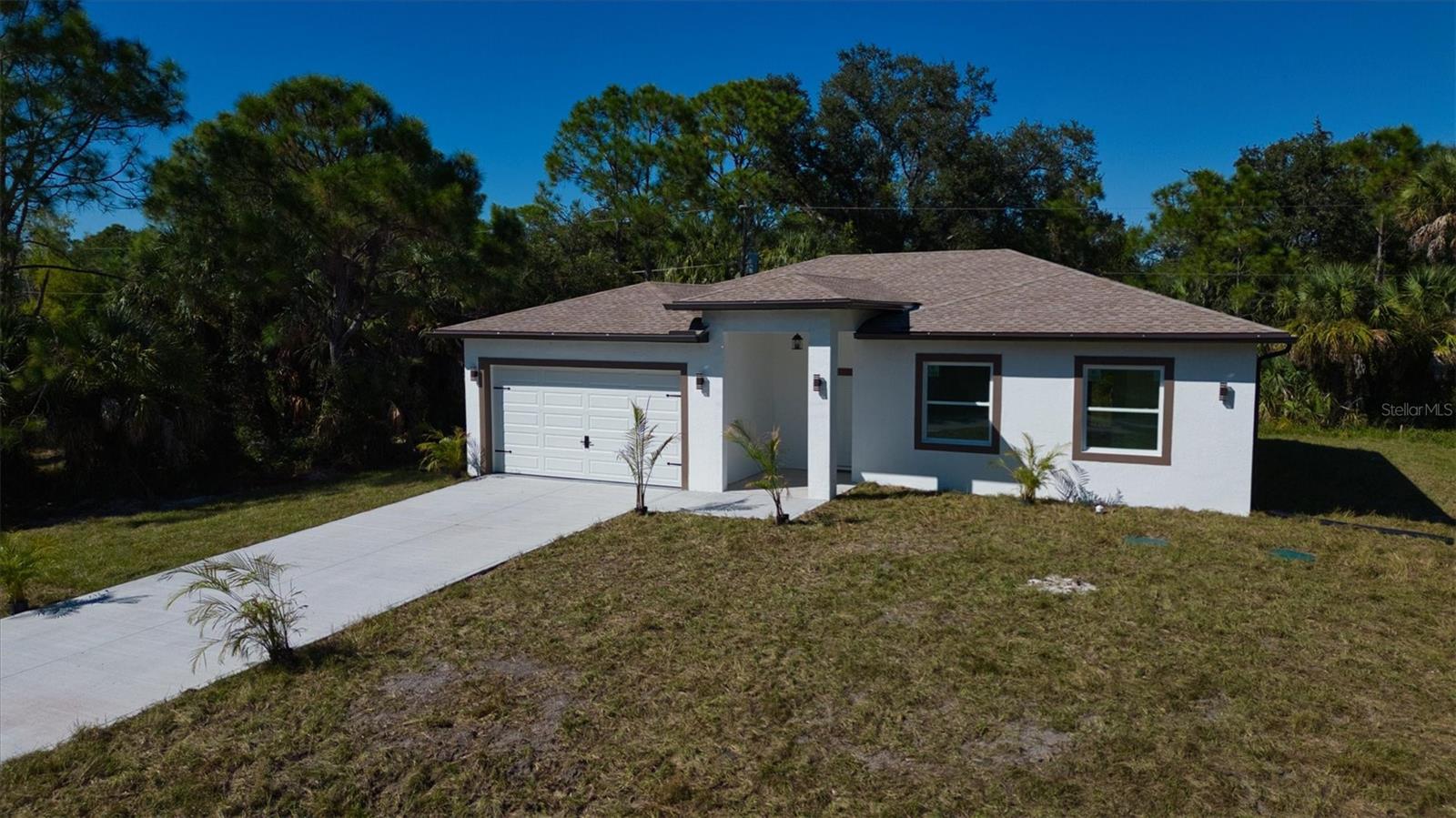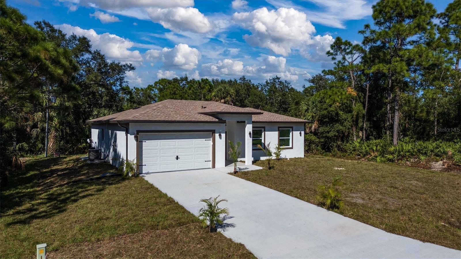 One or more photo(s) has been virtually staged. New Construction Oasis in Quiet South Punta Gorda Motivated seller says bring us your offer!Welcome Home to this absolutely immaculate, newly constructed residence, fully finished and eagerly awaiting its first owner. Located on a serene, wooded lot in a quiet section of South Punta Gorda, this stunning 3-bedroom, 2-bathroom home offers modern luxury and peaceful Florida living. Awesome!Key Features Include:Spacious Great Room: The heart of the home, perfect for families and entertaining, featuring high ceilings with recessed lighting and an open-concept design.Gourmet Kitchen: Equipped with sleek stainless steel appliances and elegant stone countertops.Modern Touches: Enjoy stylish tile flooring throughout the entire home and a sophisticated feature wall in the living area, complete with built-in recessed space for a television and an area for an electric fireplace.Luxurious Master Suite: A generous master bedroom boasting a large walk-in closet and an ensuite bathroom with stone counters and beautiful tiling. Elegant Bathrooms: Both full bathrooms feature modern tile work and durable stone countertops.Exceptional Garage: Oversized garage featuring a pristine epoxy floor.Ultimate Privacy: The property is surrounded by a peaceful and serene wooded landscape on all sides, offering a private retreat.This home is packed with modern features and thoughtful finishes, offering a seamless blend of style and comfort. Move right in and start living the relaxing Florida lifestyle you deserve. Just a short drive to all of your shopping needs, Publix, Home Depot, Walmart, Great local restaurants, downtown Punta Gorda, the famous Fisherman's Village, multiple Golf courses, Laishley Marina, The Isles Yacht Club, Pickle ball courts, Ponce de Leon Park, and so much more.Call today for a private showing! This new build gem won't last long.