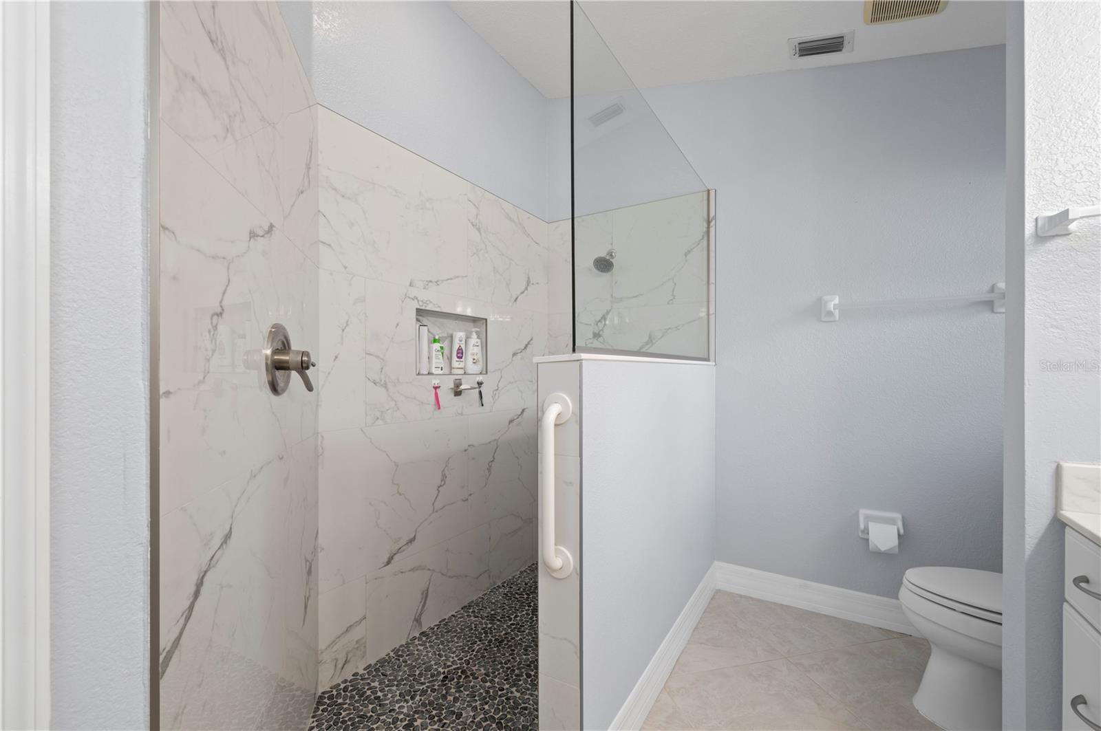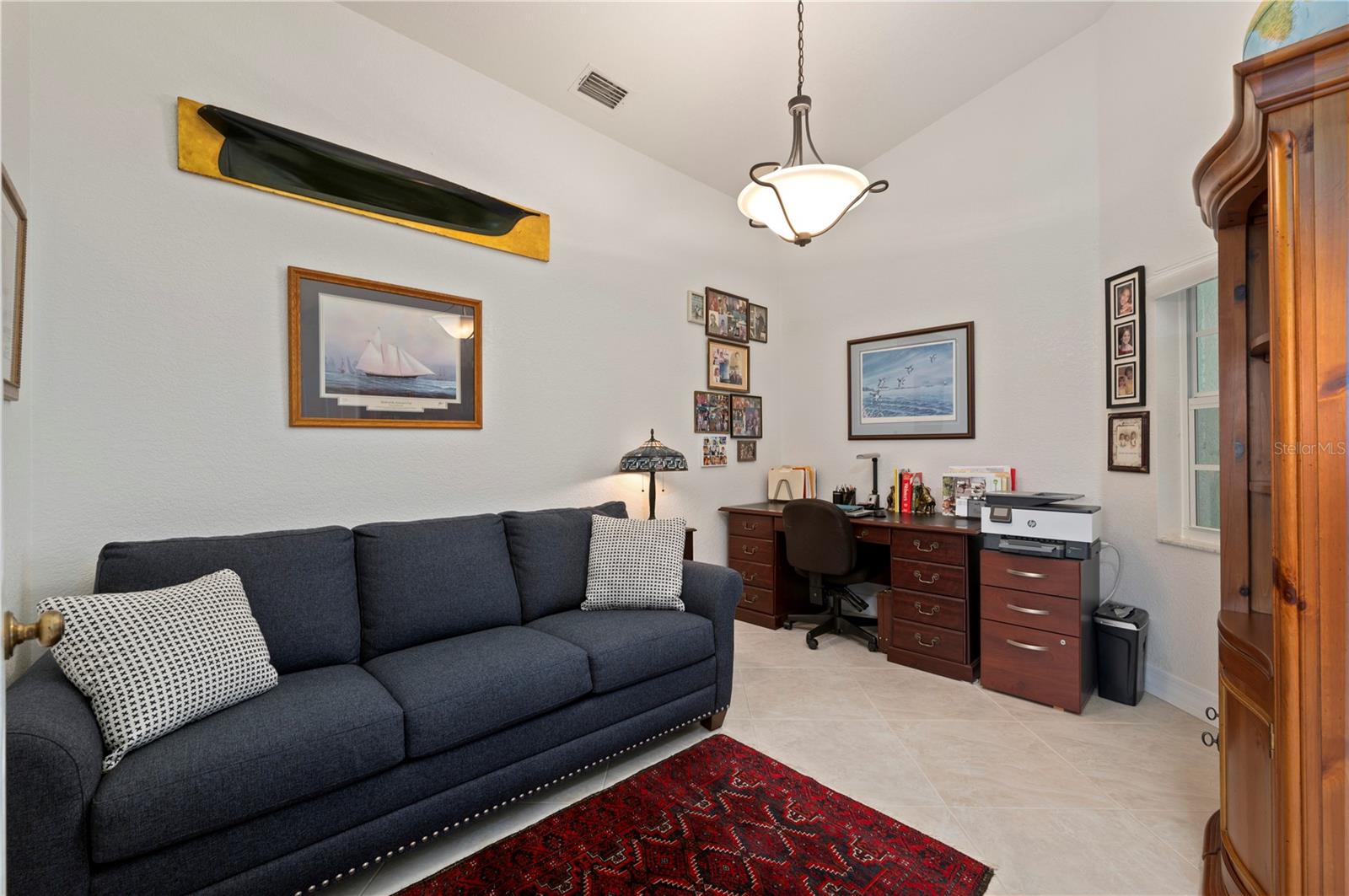 Riverwood is one of Charlotte County's most sought after golf communities, and recipient of the Audubon Green Community award for its natural habitat beauty and abundant wildlife. Situated on a quiet cul-de-sac within this gated community is this meticulously maintained lakefront home that features 2 bedrooms, 2 baths and a den/study that can be converted into a 3rd bedroom, along with a host of amenities and upgrades second to none. From the moment you arrive you are captivated by the property's lush landscaping and serene natural surroundings. Upon entry you are awed by ceilings that reach almost 12 ft in height, and sliding glass doors and transom windows capturing an abundance of natural light that flows throughout the home. A perfect home for entertaining with its open floor plan, and enhanced by a covered lanai that overlooks the peaceful waters of the lake beyond. Subtle architectural enhancements have been thoughtfully incorporated into this floor plan, allowing you to display your favorite pieces of art. The kitchen is exceptionally spacious and offers an abundance of counter space. Stainless steel appliances, decorative lighting, and a glass block backsplash capture additional natural light while adding a unique design element to this area. The elevated bar is perfect for displaying an assortment of dishes for your guests or is a perfect place to serve drinks and appetizers to your friends as they watch you create your culinary surprises. The split bedroom suites offer a peaceful ambiance of their own, each with bay window seating areas that capture the floral fauna or lake front vistas. The primary bedroom suite features a walk-in closet and en suite bath that has been beautifully remodeled to feature a roman shower with exquisite large marble like tile walls. Adding to the exceptional value of the home are a host of upgrades that include a new tile roof (2020), new Lenox HVAC system with UV purifier (2021), impact windows (2021), roll down lanai storm screens (2022), tile flooring (2021), light fixtures and fans (2021), Cellular shades (2021), kitchen appliances (2021), washer and dryer (2022), exterior painting (2022), primary bath remodel (2024), leaf gutter protection (2024) and updated landscaping (2024), and more! Riverwood is aresort style community in one of the most naturally pristine areas you can only envision. Aside from its renown par 72 championship golf course (membership separate), you can enjoy a renovated community center hosting an abundance of social events, a community pool and spa, tennis, pickleball, croquet, fitness and recreation amenities, a playground, dog park and more. Many consider living in Florida to be that reward where life is to be enjoyed to its fullest, and this very special lake front home is that reward you've been seeking.