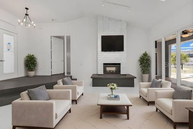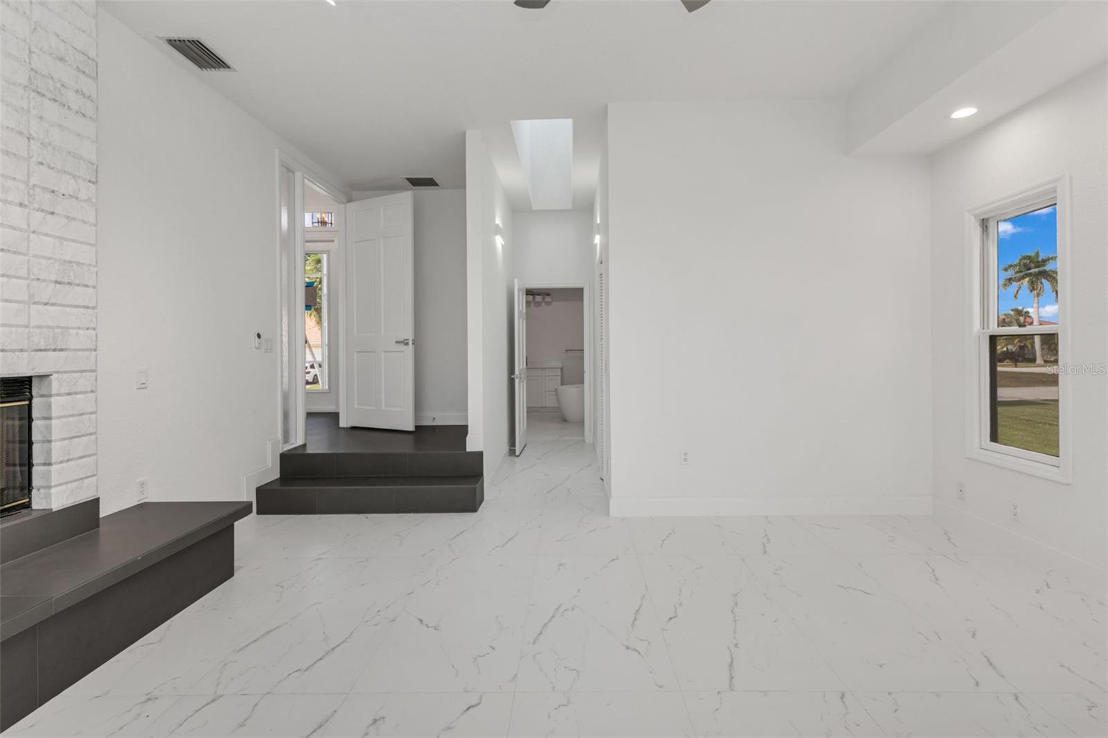 One or more photo(s) has been virtually staged. STUNNING FULLY RENOVATED WATERFRONT RETREAT with 70 feet of WATERFRONTAGE and a PRIVATE 30'x6' DOCK with boat lift. Experience refined waterfront living with this updated 3-bedroom, 3-bathroom pool home with a 2-car garage and a host of luxurious features, situated on an OVERSIZED LOT in Punta Gorda Isles. NO HOA FEES. CLICK ON THE VIRTUAL TOUR LINK 1 FOR THE VIDEO AND VIRTUAL LINK 2 FOR THE 3D TOUR. From the moment you step inside, porcelain tile flooring, soaring ceilings, and skylights create a bright, sophisticated atmosphere filled with natural light. The spacious living room with a Carrara marble fireplace and glass slider to the lanai flows seamlessly into the formal dining room--perfect for effortless entertaining. The gourmet eat-in kitchen features stainless steel appliances, stone countertops, a Carrara marble backsplash, a breakfast bar, and abundant cabinetry for storage. Off the kitchen, the inviting family room offers a dual-sided fireplace, ideal for cozy fireside dining or relaxed evenings with friends and family. Retreat to the luxurious master suite with a private fireplace, direct lanai access, dual walk-in closets, a dual sink vanity with makeup area, a soaking tub, and a Roman walk-in shower. Guest bedrooms are privately situated on a split floor plan, each with built-in closets, additional overhead storage, and a nearby shared bathroom. Step outside to your personal paradise where a covered patio offers the perfect setting for morning coffee or evening cocktails overlooking the water. Enjoy the sparkling pool and spa, complete with a full bathroom on the lanai for added convenience. The fenced backyard leads to your private dock and boat lift, offering easy access to the water for boating adventures. This home perfectly blends elegance, comfort, and the ultimate Florida waterfront lifestyle. 2025 HVAC - 2025 WATER HEATER. Enjoy all the amenities that Punta Gorda has to offer, such as biking, fishing, boating, dining, live entertainment, and much more! Close to Fisherman's Village, Ponce De Leon Park, Gilchrist Park, and Historical Downtown Punta Gorda. Just a short car ride to award-winning beaches! Schedule your showing TODAY!