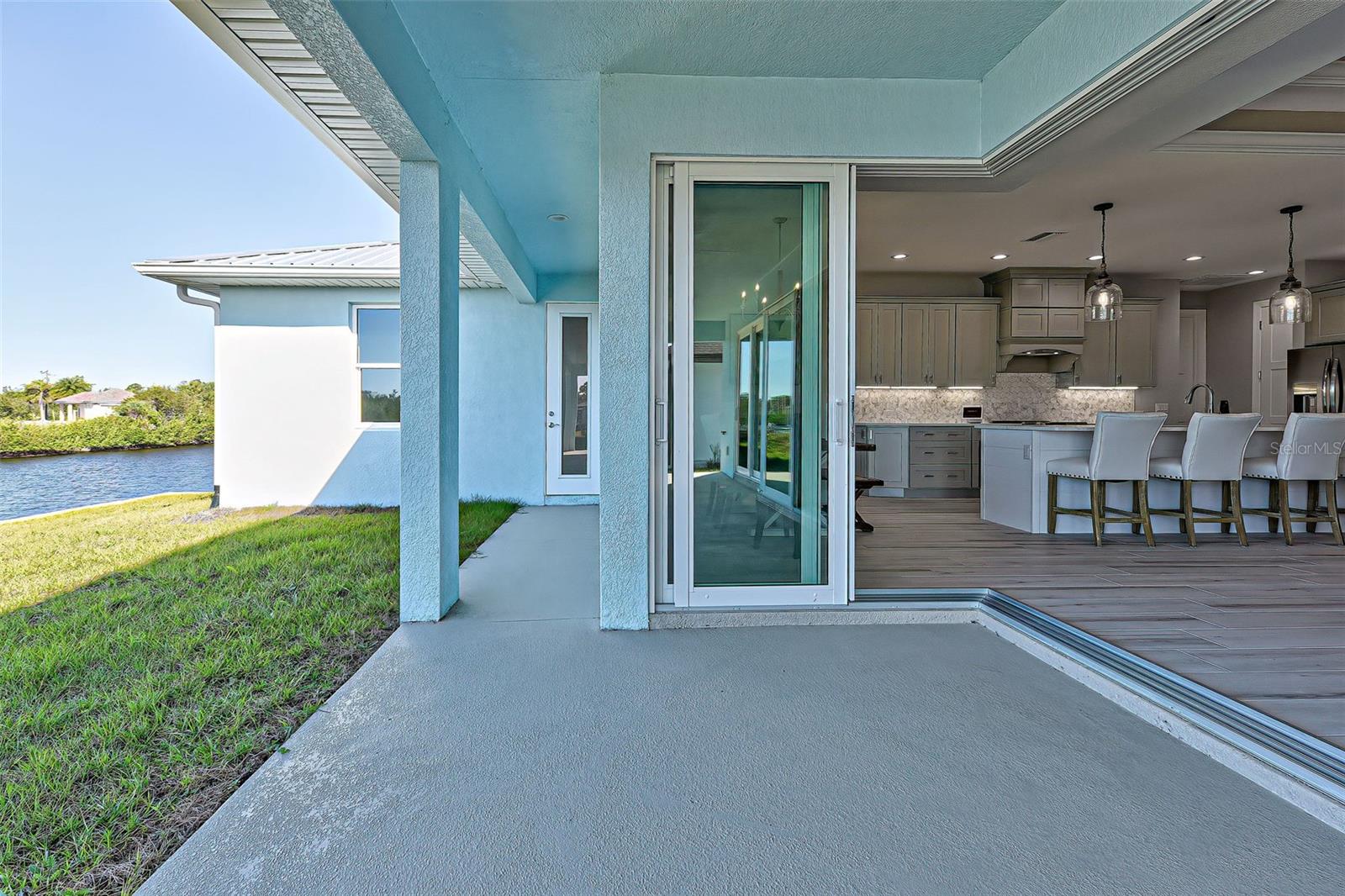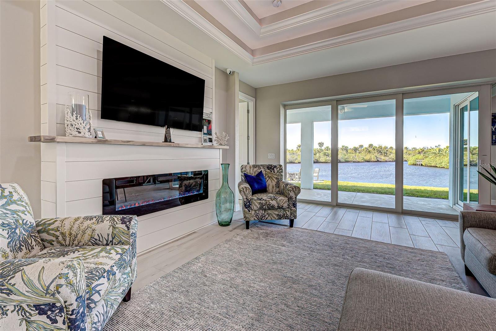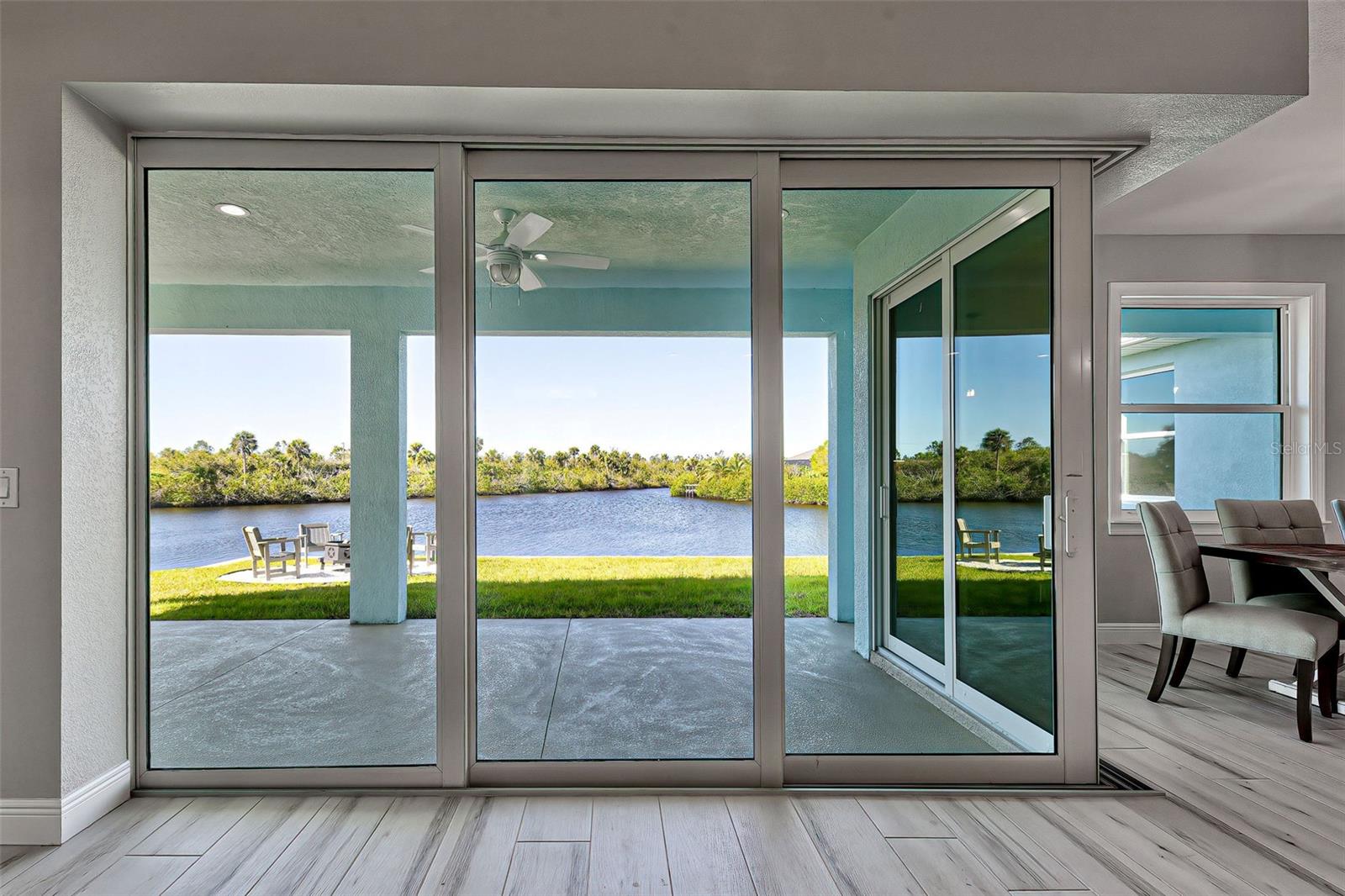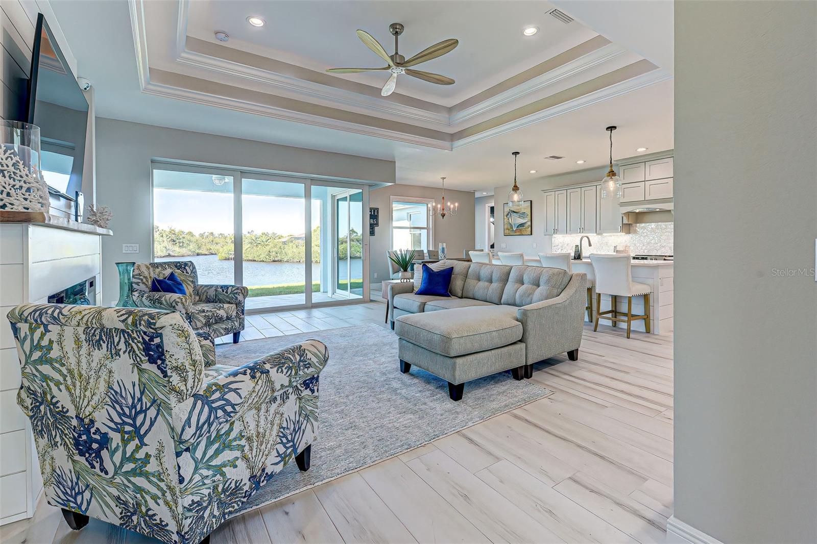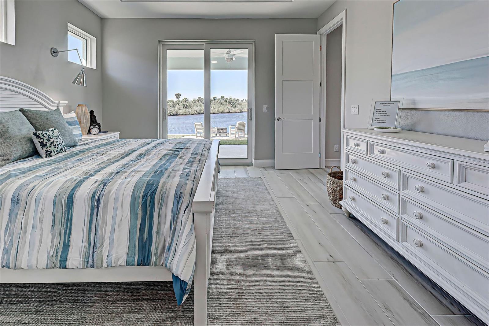 This award-winning model home is truly a gem! Hurricane tested and high and dry! As you step through the front door, the breathtaking waterfront view immediately captivates your attention, setting the tone for a home filled with elegance and charm. The seamless flow of the open floor plan, accentuated by the corner impact slider, creates a welcoming space that is perfect for hosting gatherings both indoors and outdoors. The inclusion of a separate office or flex space adds versatility to the layout, while the abundance of closets and the oversized walk-in pantry ensure that storage is never an issue in this thoughtfully designed home. The primary bedroom, with ample room for a king-size bed and dressers, offers a peaceful retreat complete with not one, but two walk-in closets. The en suite primary bathroom promises a spa-like experience, adding a touch of luxury to your everyday routine. Guests will feel right at home in the second bedroom, which boasts a queen-size bed accommodation, generous closet space, and its very own en suite bathroom for added convenience and privacy. The third bedroom continues the theme of comfort and functionality, providing another queen-size bed option along with plenty of closet space to keep belongings organized. To top it off, the oversized garage ensures that parking is never a hassle, accommodating even a full-size truck with ease. This home truly offers a blend of beauty, functionality, and comfort, making it a rare find that is not to be missed. If you're interested in experiencing the magic of this model home firsthand, don't hesitate to schedule a tour today. Seeing the property in person will allow you to fully appreciate all its features and envision the possibility of calling this stunning waterfront retreat your own.