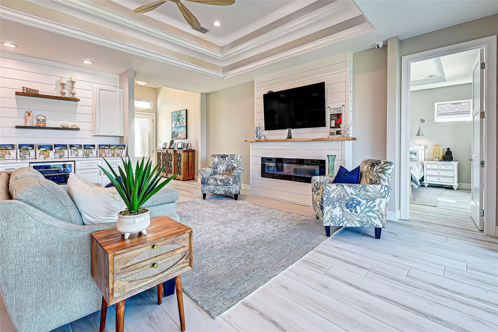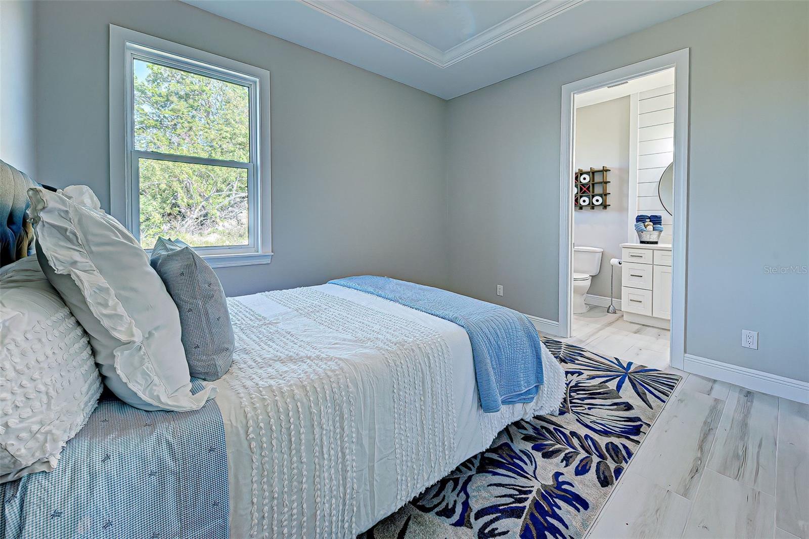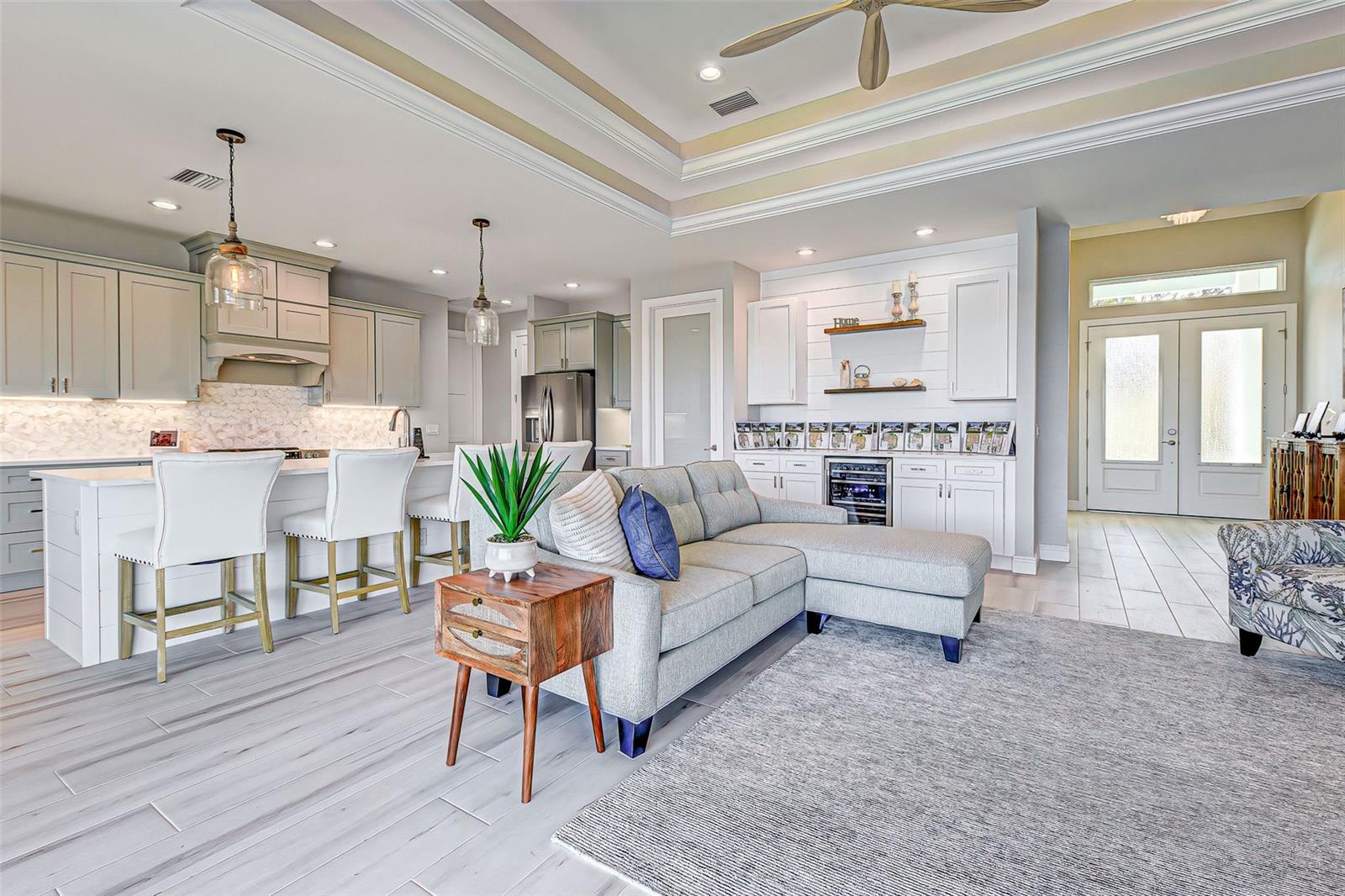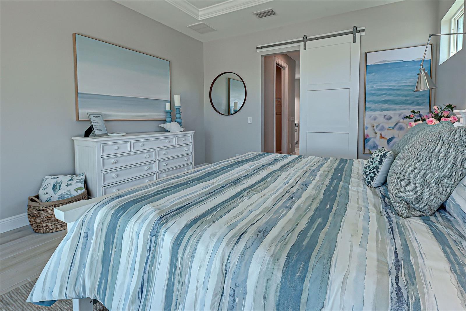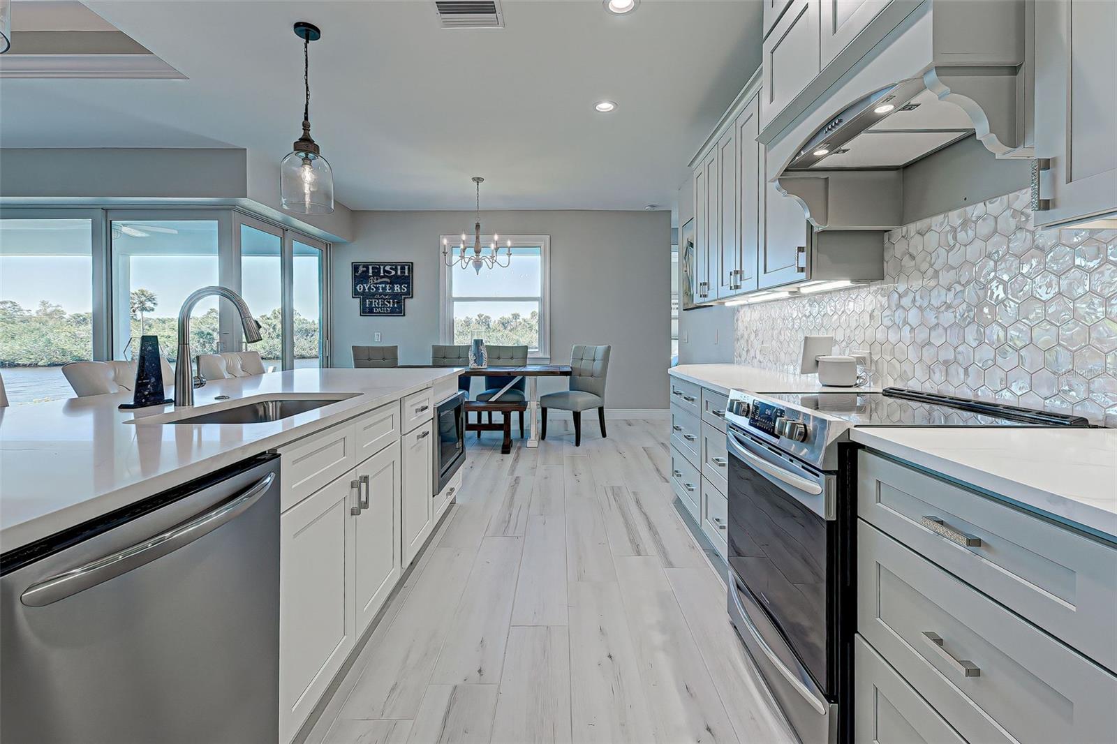 This award-winning model home is truly a gem! Hurricane tested and high and dry! As you step through the front door, the breathtaking waterfront view immediately captivates your attention, setting the tone for a home filled with elegance and charm. The seamless flow of the open floor plan, accentuated by the corner impact slider, creates a welcoming space that is perfect for hosting gatherings both indoors and outdoors. The inclusion of a separate office or flex space adds versatility to the layout, while the abundance of closets and the oversized walk-in pantry ensure that storage is never an issue in this thoughtfully designed home. The primary bedroom, with ample room for a king-size bed and dressers, offers a peaceful retreat complete with not one, but two walk-in closets. The en suite primary bathroom promises a spa-like experience, adding a touch of luxury to your everyday routine. Guests will feel right at home in the second bedroom, which boasts a queen-size bed accommodation, generous closet space, and its very own en suite bathroom for added convenience and privacy. The third bedroom continues the theme of comfort and functionality, providing another queen-size bed option along with plenty of closet space to keep belongings organized. To top it off, the oversized garage ensures that parking is never a hassle, accommodating even a full-size truck with ease. This home truly offers a blend of beauty, functionality, and comfort, making it a rare find that is not to be missed. If you're interested in experiencing the magic of this model home firsthand, don't hesitate to schedule a tour today. Seeing the property in person will allow you to fully appreciate all its features and envision the possibility of calling this stunning waterfront retreat your own.