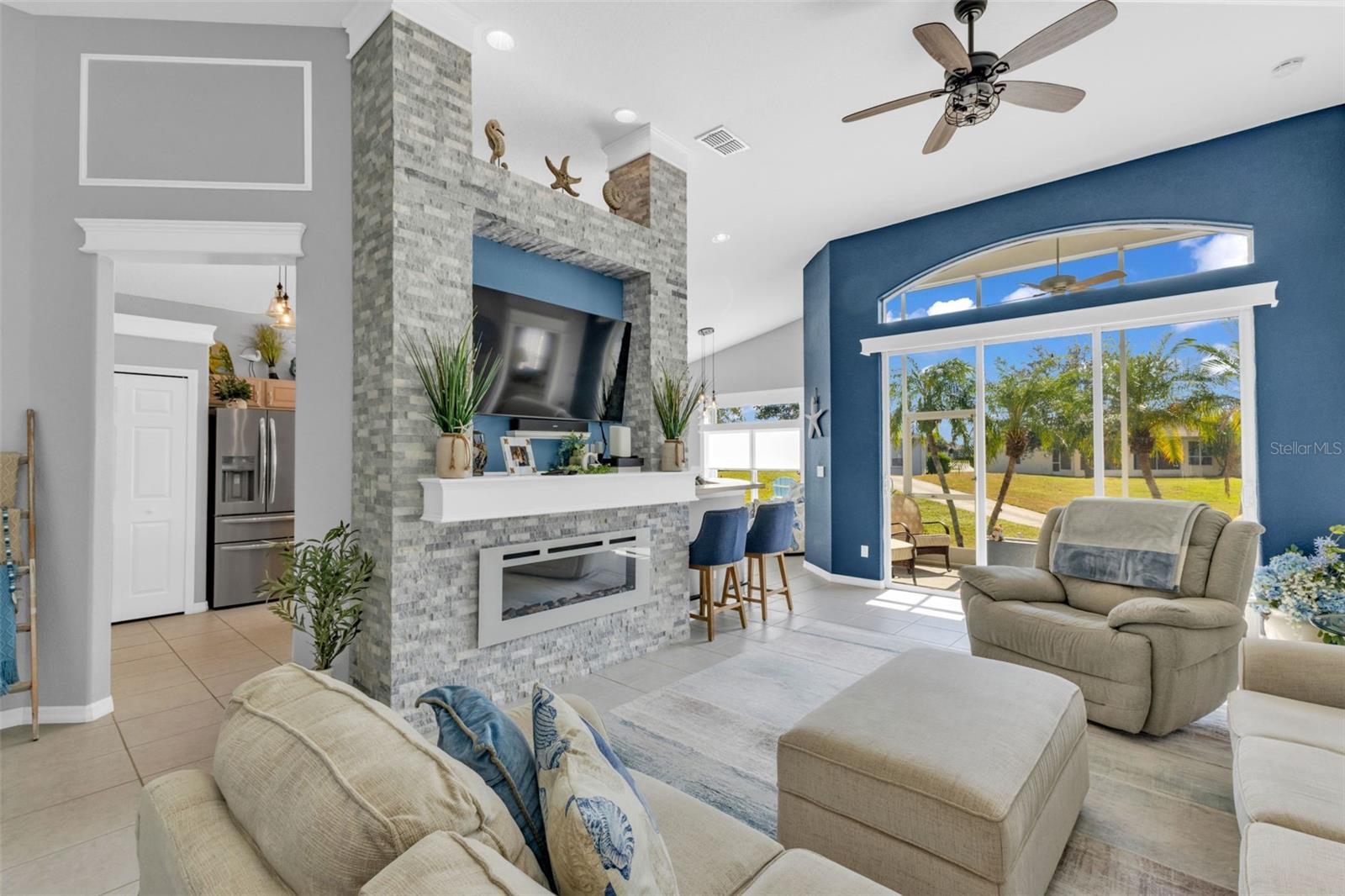 Tremendous Craftsmanship in this Ashton Floorplan in the gated golf course/active resort of highly desirable Kings Gate, a 55+ community that is NOT in a flood zone and DOES NOT require flood insurance. Gorgeous curb appeal from the outside - step inside and you'll be amazed at the stone work in the foyer and around the fireplace/TV wall to go along with most doors and windows being framed for that extra attention to detail. This house receives tons of natural daylight and features a 2022 Roof and 2021 AC to go along with accordion shutters. Large living room interacts nicely with lanai - dining room and kitchen. Kitchen features an island with an additional sink/disposal and plenty of counter and cabinet space. Large master is to back right of this home with guest to the front right providing plenty of privacy for both you and your guests. Den features pocket doors allowing room to be used as a 3rd bedroom, private office, 2nd TV room or craft room - whatever fits your lifestyle. Lanai and paver patio provide additional locations for relaxation or entertaining and offers great view of 2nd hole/pond. And if you haven't been to Kings Gate before - you're going to love the options for activity (Olympic size heated swimming pool and spa, tennis courts, pickle ball, lawn bowling, shuffle board, bocce, horseshoes, gym, billiards, library, euchre, bingo, bridge, Texas hold em, poker, mahjong and more). The onsite AND NEWLY REMODELED Lions Den restaurant and bar is super convenient and also offers Tuesday night Karaoke and monthly trivia contests. Many residents love the fact that they are just a golf cart ride away from the shopping plaza that provides you access to grocery store (ALDI), drug store, bank, restaurants and shopping. Want to explore outside of Kings Gate - you are minutes away from the restaurants and shops of downtown Punta Gorda and Fisherman's village. And if you want to explore more of Florida's fun spots you're near I75 to quickly head north or south. An AWESOME home with custom touches to provide that WOW from your friends/family with a ton of natural light and golf course/pond view in a PREMIER gated community needs to be on your list. Call today for a private showing and a golf cart tour of the community/amenities.