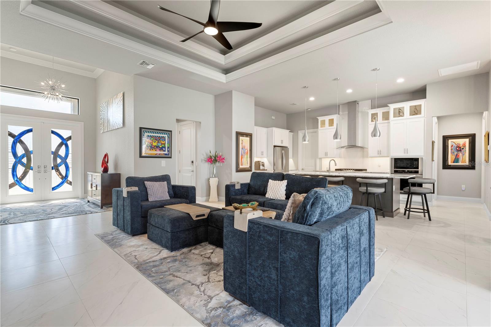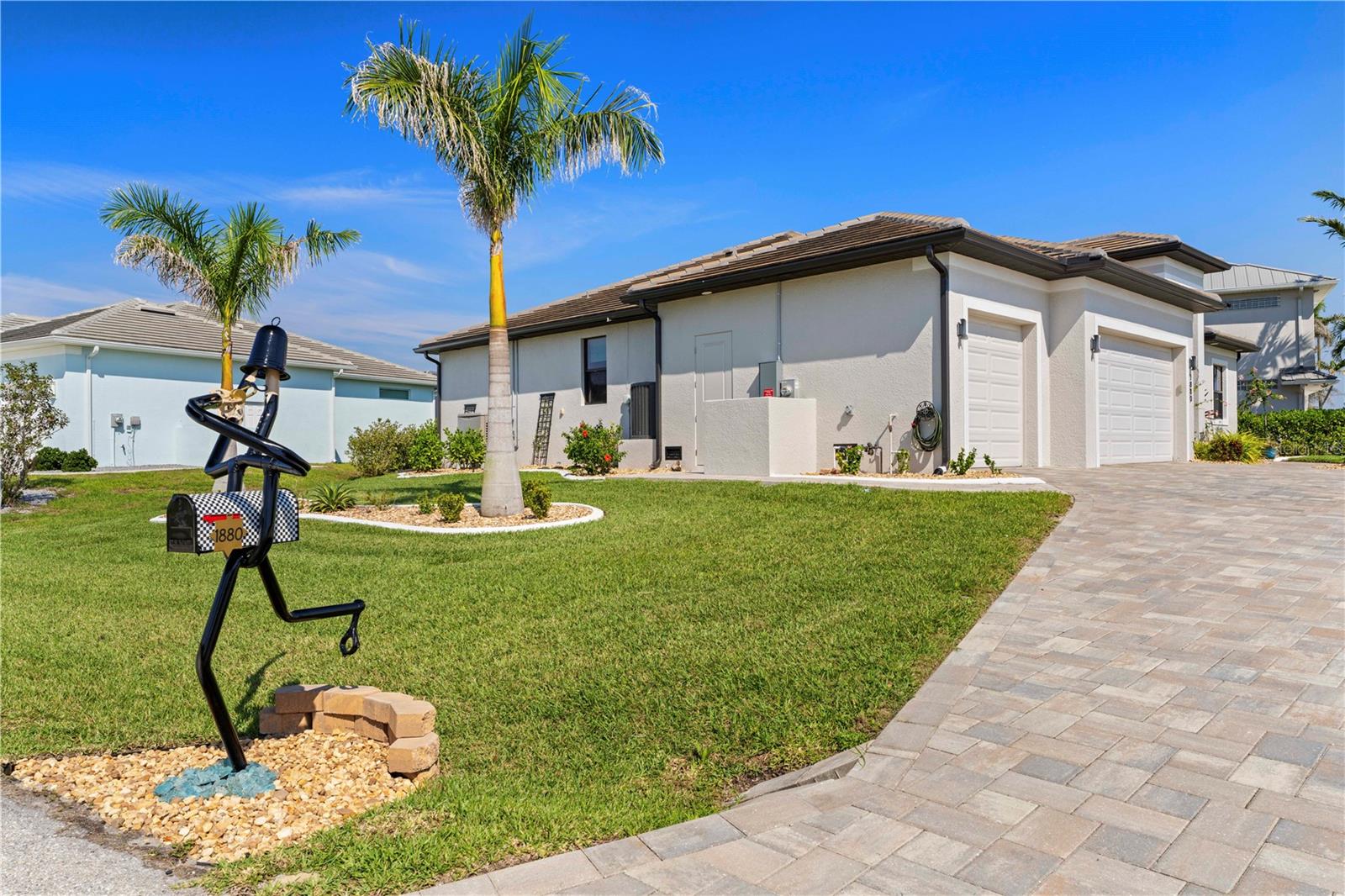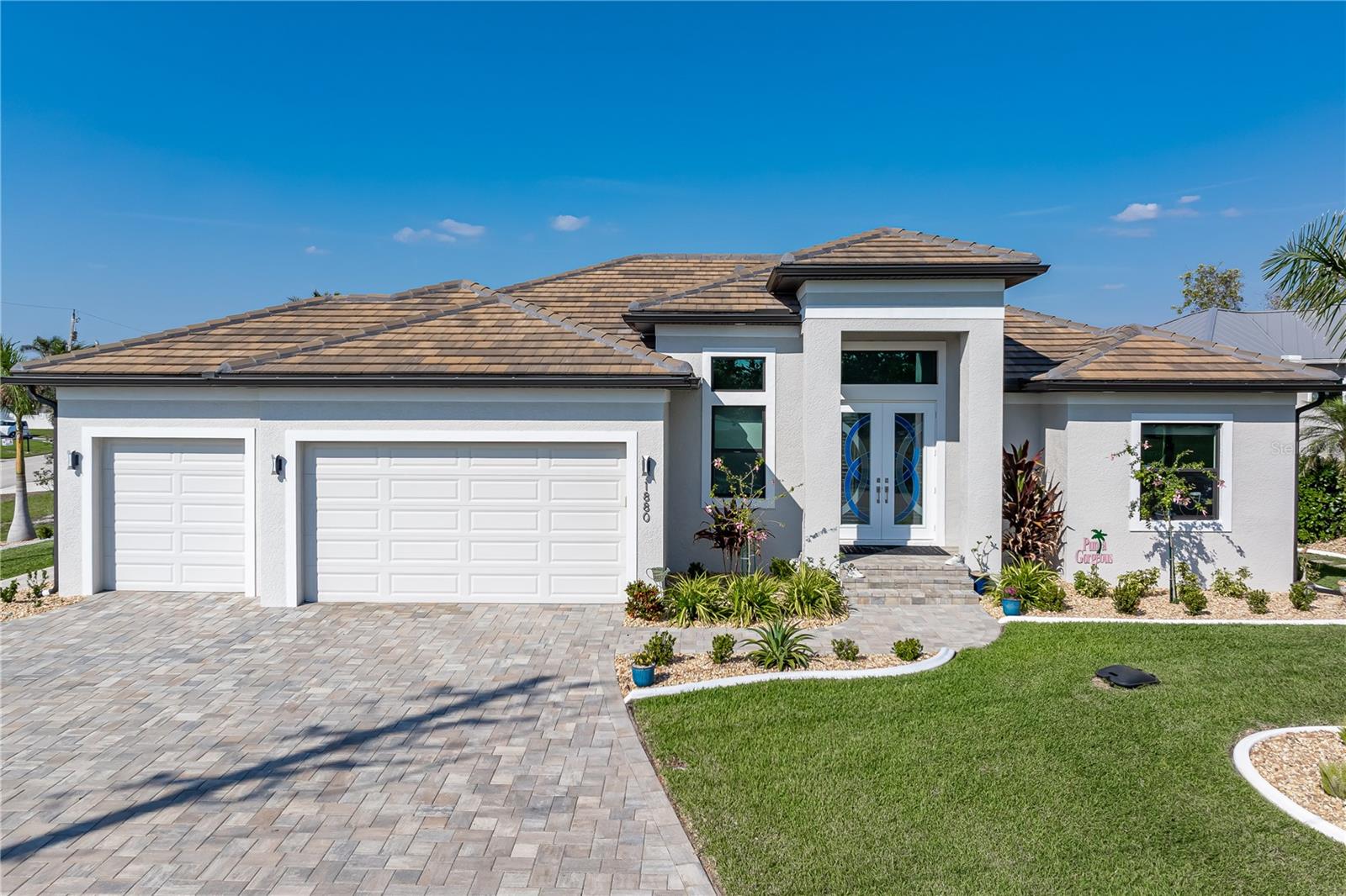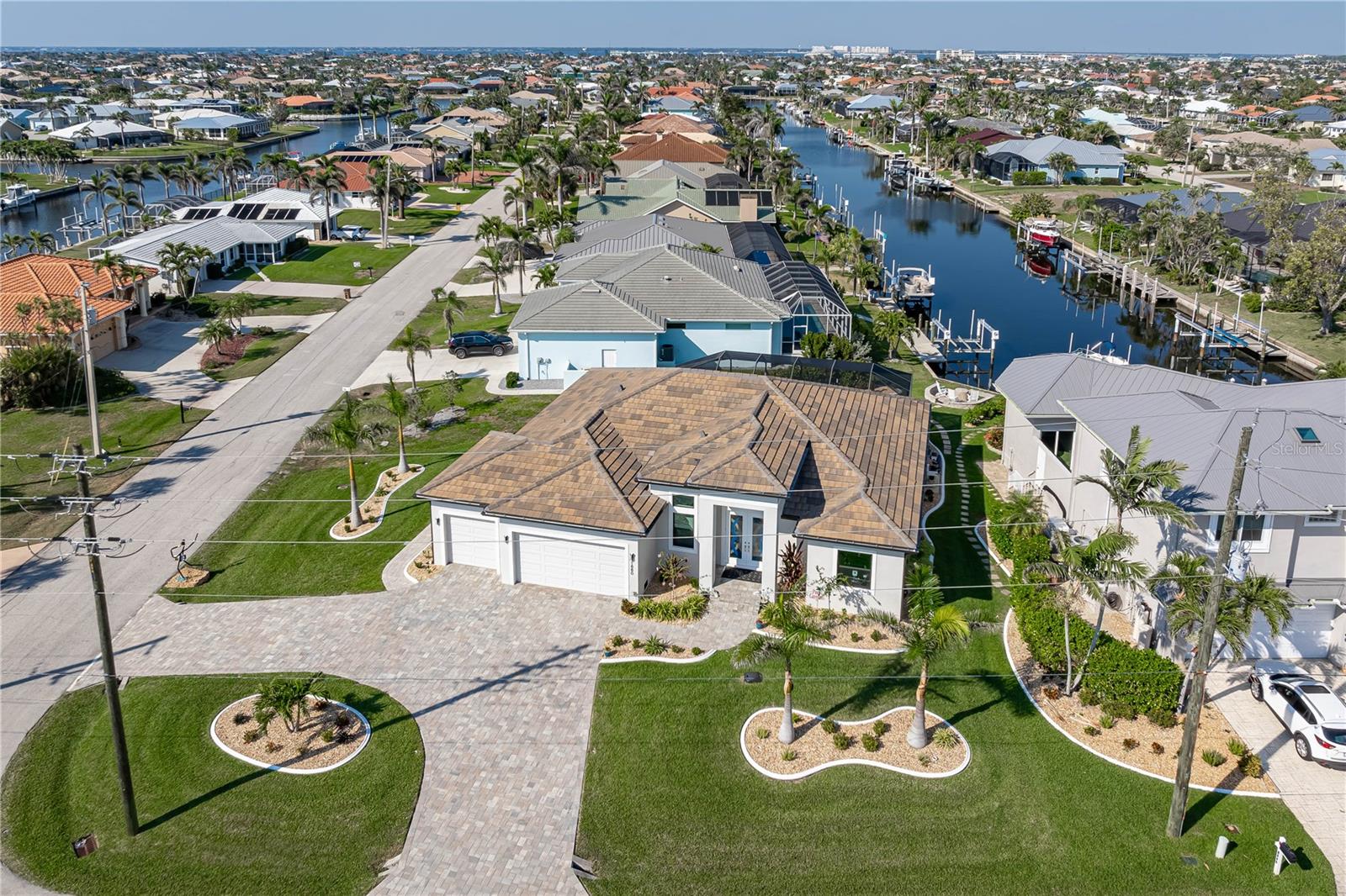 SHOWCASE HOME W/A WATER VIEW IN PGI! Check out this exceptional 3 bed/3.5 bath + den, custom waterfront home in Punta Gorda Isles built by Harbor Home Builders in 2022. Why wait for new construction when this home is MOVE-IN READY?!? ~ LUXURY & HIGH END FINISHES THROUGHOUT - NO EXPENSE SPARED DURING CONSTRUCTION ~ The property offers over 2,200 sq ft of living space w/an open-concept design, seamlessly blending indoor and outdoor living. The layout is based on a modified Siesta floor plan - with the addition of a half bath in the den. Feature wall in great room offers a built-in fireplace. It serves as the focal point of the room w/textured stone, glass shelves & lighting. A spacious den/home office is nestled just off the foyer. The half bath is tucked away here. Gourmet kitchen is a chef's dream, featuring contemporary cabinetry w/under cabinet lighting, quartz countertops, stainless steel appliances, RO under sink filtration, a 5-BURNER GAS COOKTOP w/stainless hood plus a large center island with breakfast bar seating & pendant lighting. There's also a large, walk-in pantry so no shortage of storage here! Mitered bay window in the dining area overlooks the pool & canal view. Architectural details include tray & double tray ceilings, gorgeous marble floors, stained glass entry doors, & a large interior laundry room w/adjacent mudroom & coat area. The master suite has walk-out access to the lanai, an spa-like master bath w/dual sinks, a seated vanity area, large tiled shower & oversized walk-in closet. The split bedroom layout features generous guest rooms - each w/large walk-in closets & en-suite bathrooms. One of the guest baths doubles as a pool bath w/access to the lanai. Outside, the brick paver lanai surrounds the in-ground, propane-heated pool w/attached spa. A tanning ledge allows you to stay cool while soaking up some Florida sunshine! A patio w/stone wall surrounding it is steps from the back door. It's the perfect spot for a fire pit. Sit back & enjoy the lovely canal view out here. Additional highlights include a brick paver circular drive leading to the three-car garage, water softener, professionally landscaped yard, 500-gallon buried propane tank (for gas range & pool/spa heat), central vacuum system & whole-house hurricane protection w/impact-resistant doors & windows plus electric roll-down shutters on the lanai. No expense was spared during construction: enjoy the best of everything here - nothing to update - just move in & enjoy! Punta Gorda is a vibrant waterfront town known for its boating lifestyle, active art & music scene, and top-rated golf courses. Miles of sidewalks connect you to the rest of Punta Gorda Isles, several area parks & even historic downtown Punta Gorda. Take advantage of the active lifestyle awaiting you here: you can walk, bike or kayak to almost anywhere you'd want to go! Claim your spot in paradise & start living your Florida dream here.