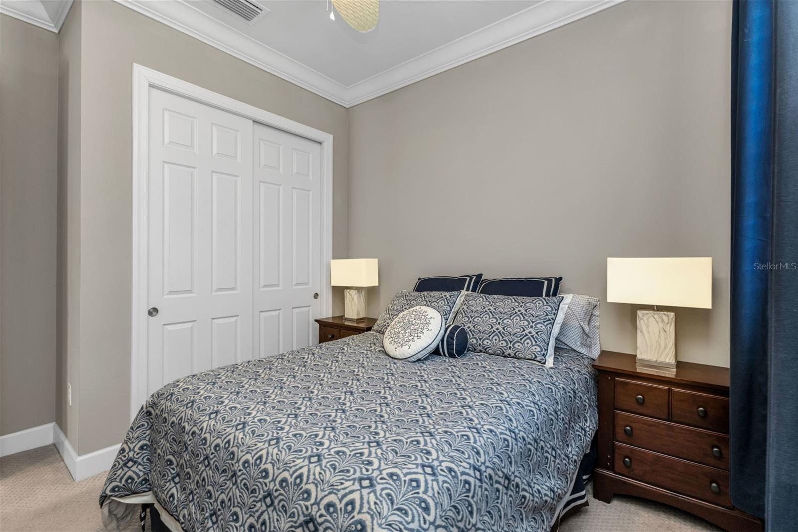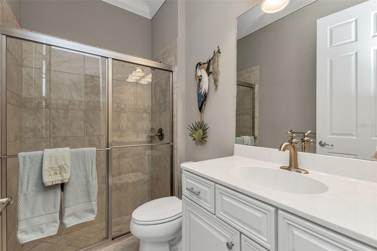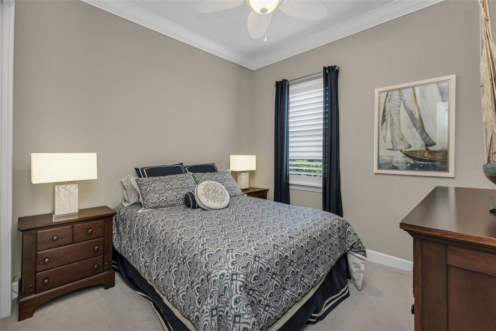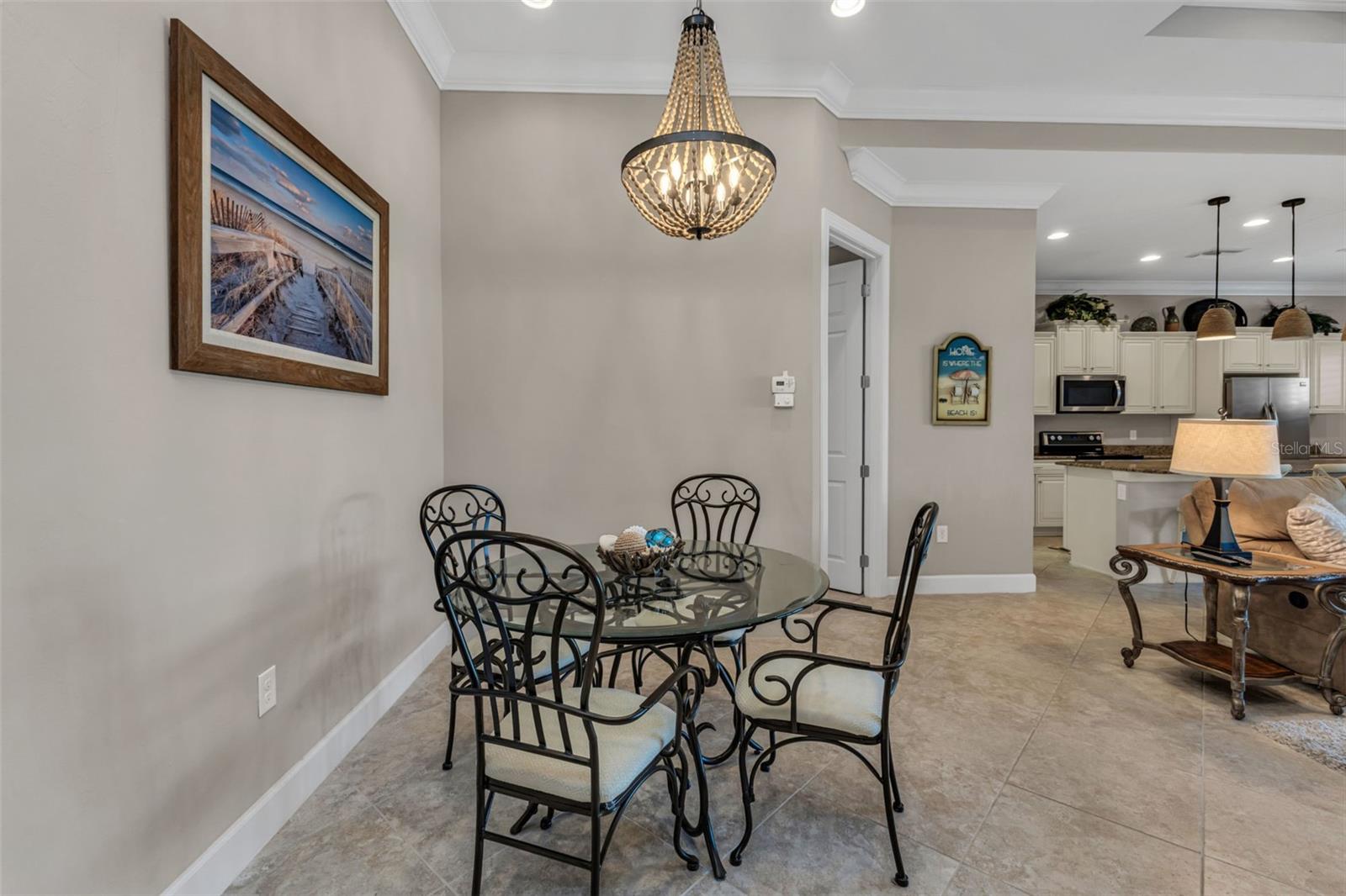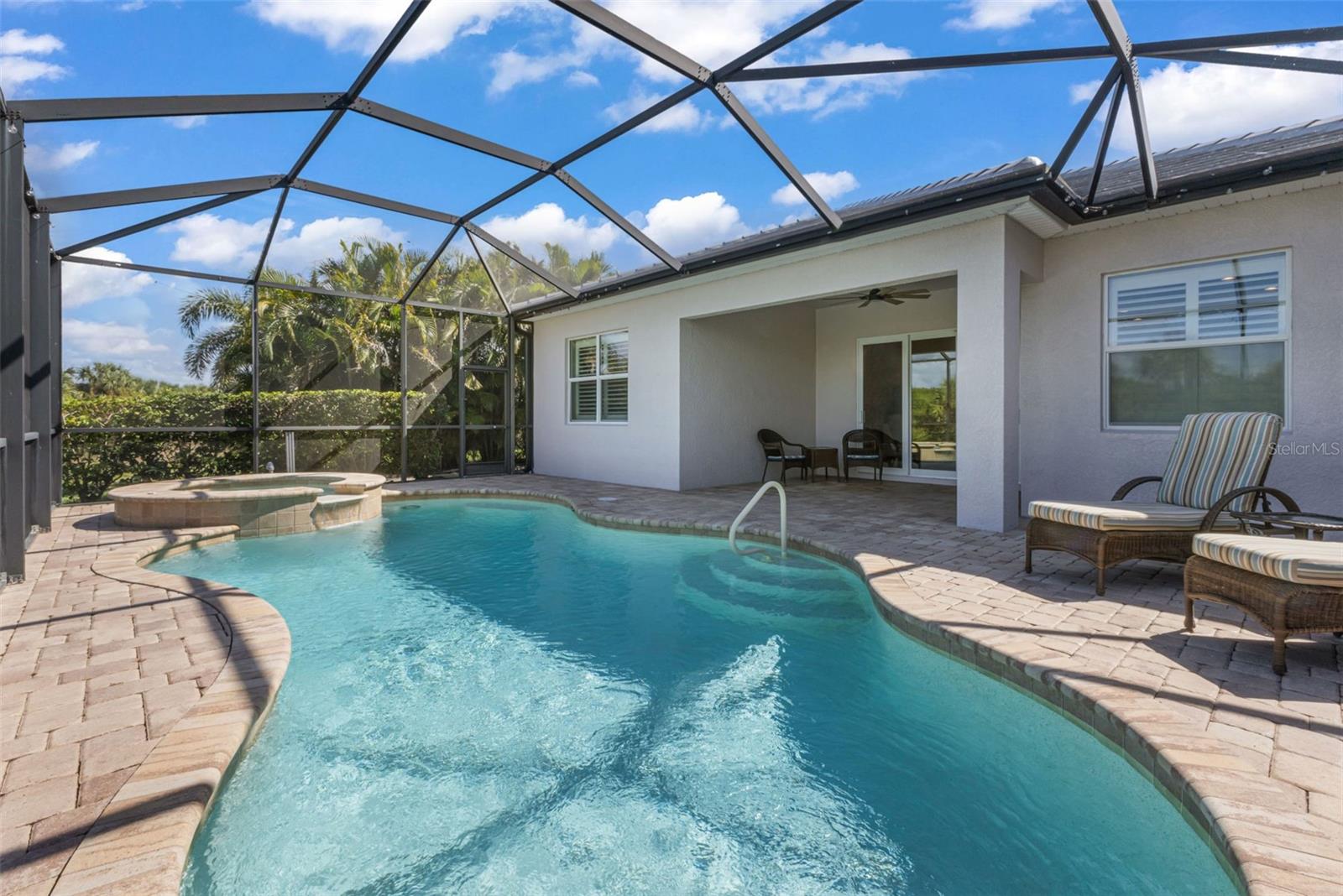 Set within the private, gated golf course community of Riverwood, this beautifully maintained 3-bedroom plus den, 2-bath home offers the perfect blend of comfort and style. The split, open floor plan features large ceramic tile throughout the main living areas, crown molding, and both tray and coffered ceilings, adding an elegant touch. The kitchen is designed for both everyday living and entertaining, with solid wood cabinets, soft-close drawers, granite countertops, stainless steel appliances, a breakfast bar, and a breakfast nook. Sliders from the living room open to the screened lanai, where a sparkling heated saltwater pool invites you to relax while enjoying peaceful views of the private preserve beyond. A versatile den or office offers flexible space that can easily adapt to your needs. The spacious primary suite features a lovely tray ceiling and provides a serene retreat, complete with a walk-in closet, dual sinks, and an expansive walk-in shower with a built-in bench. The split-bedroom layout ensures privacy, with two comfortable guest rooms on opposite sides of the home. One guest room features a charming bay window that fills the space with natural light, and both share a well-appointed bathroom. Additional highlights include a laundry room with storage, an oversized garage with a utility sink, a new roof (2023), impact windows, and fresh paint outside. The brick driveway and lanai add a classic finishing touch to this lovely home. As part of the vibrant Riverwood community, residents enjoy a par-of-the-72 championship golf course, a state-of-the-art fitness center, a resort-style pool, pickleball courts, Har Tru tennis courts, a dog park, bocce, and more! Beyond the gates, you will find easy access to world-class fishing, boating, waterfront dining, shopping, and the beautiful sandy beaches of the Gulf. Conveniently located between Sarasota and Fort Myers on Florida's West Coast. This property combines elegance, comfort, and privacy in one of Riverwood's most desirable settings. Schedule your private showing today and experience it for yourself!