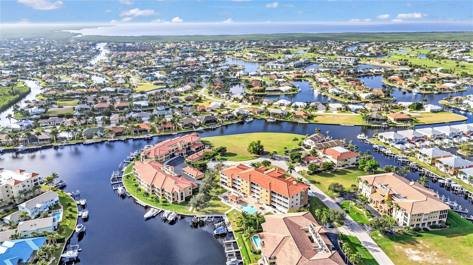 Welcome Home to Coastal Living in Punta Gorda Isles!Step into this beautiful 2-bedroom, 2-bath condo with a den and experience the relaxed coastal vibe that makes Punta Gorda Isles so special. This spacious unit includes one under-building parking space, one outdoor parking space, and a private storage closet in the garage. Take the elevator or stairs up to your new home, where comfort and style await.A retractable screen door welcomes a gentle breeze, while a lighted tray ceiling in the foyer leads your eye straight to the sparkling water view. The spacious kitchen features wood cabinetry, granite countertops, and stainless steel appliances, perfect for everyday living or entertaining guests. You'll also appreciate the in-unit laundry room with a full-size washer and dryer for convenience.The open floor plan seamlessly connects the kitchen, breakfast bar, dining area, and living room, creating the ideal space for entertaining. The den just off the living room offers flexible use--perfect as an office, reading nook, or additional sitting area.The primary suite is generously sized and offers serene water views, a HUGE walk-in closet, and an ensuite bathroom featuring both a soaking tub and separate shower plus dual sinks. The guest bedroom is positioned on the opposite side of the condo with the guest bath conveniently nearby, providing privacy for all. Enjoy your morning coffee or evening cocktail on the screened lanai, where you can take in peaceful views of the pool and waterfront.Located in desirable Punta Gorda Isles, this condo offers easy access to Fishermen's Village, waterfront restaurants, shopping, parks, and the Punta Gorda Airport. Call for your private showing today!
