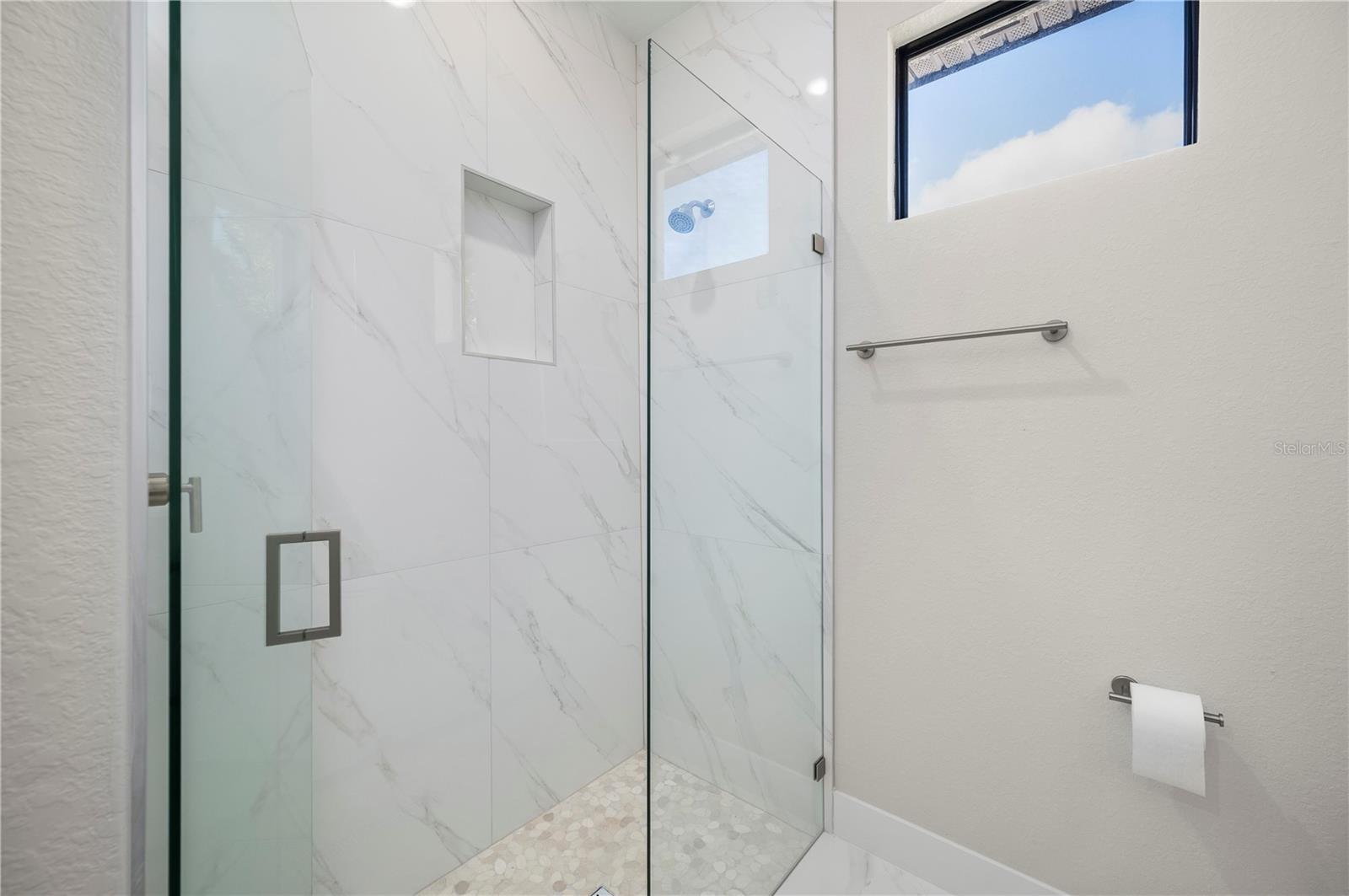 Exterior: Outdoor Shower, Private Mailbox, Rain Gutters, Sliding Doors